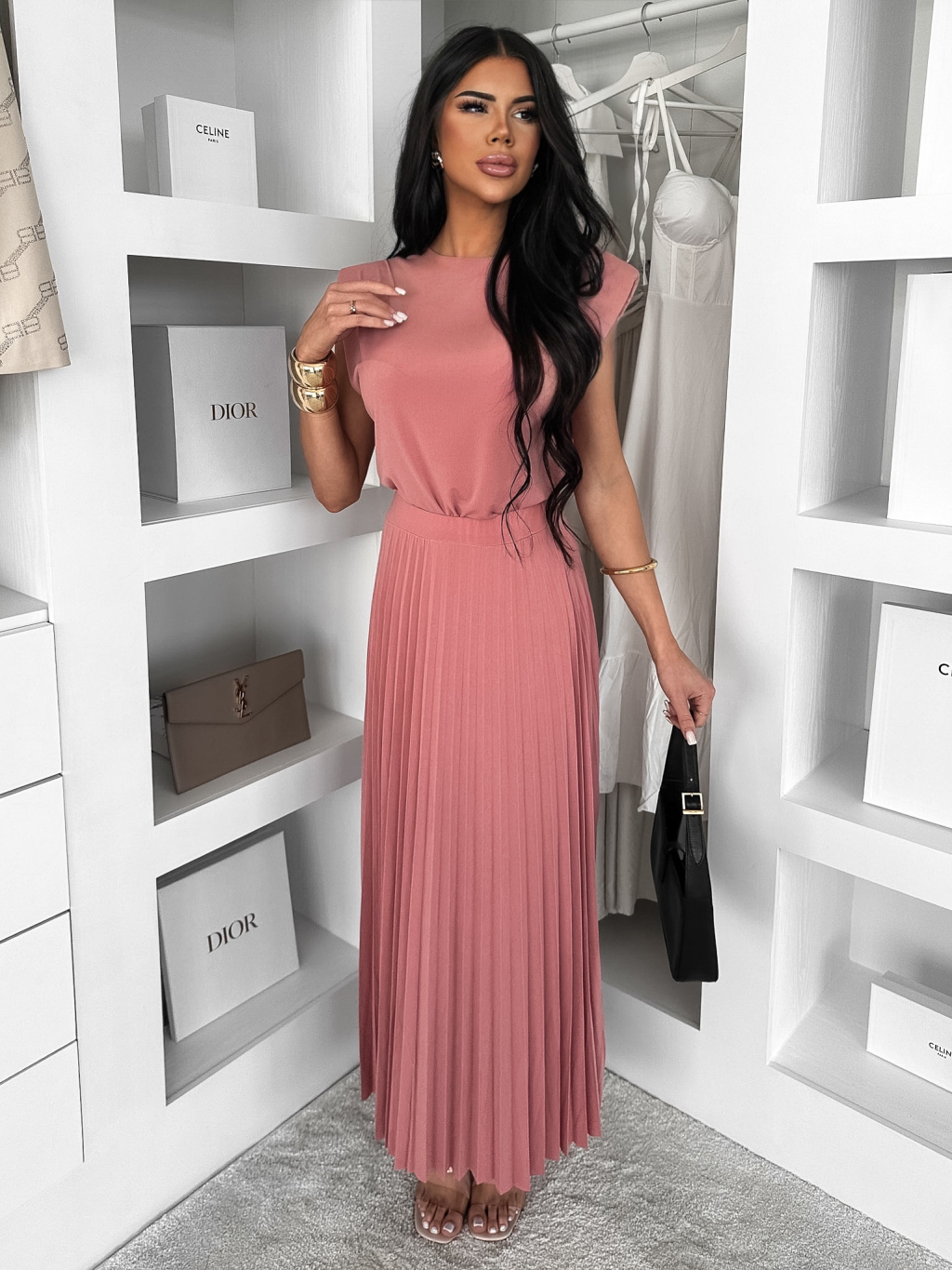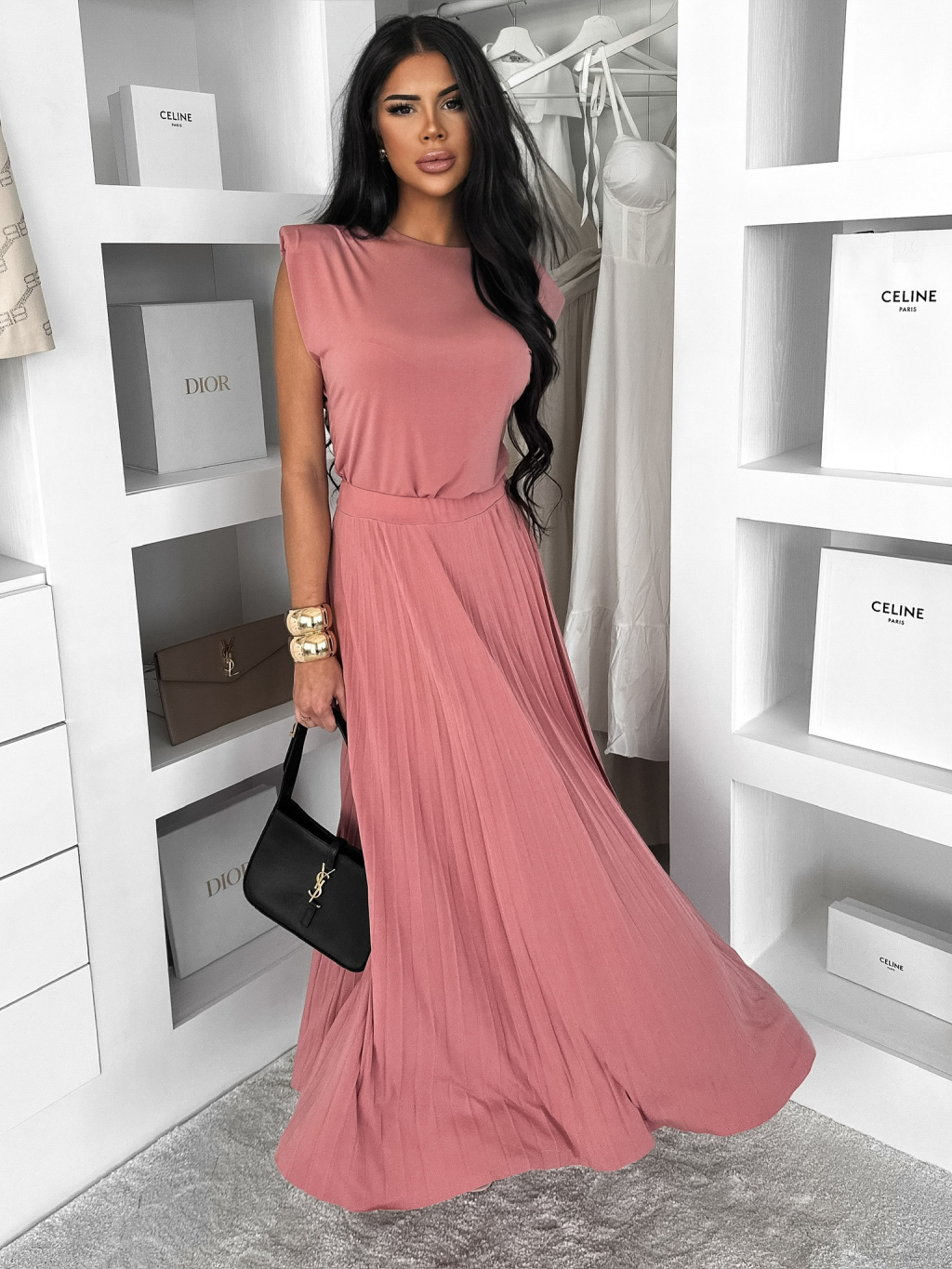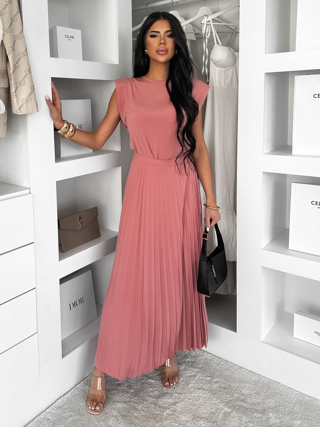 Starorůžový plisovaný elegantní komplet LEEROYA