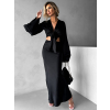 Černý saténový komplet REGEN se sukní a košilí
