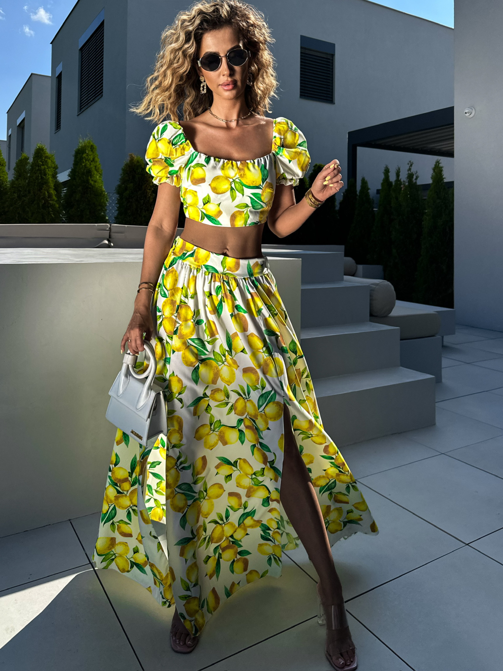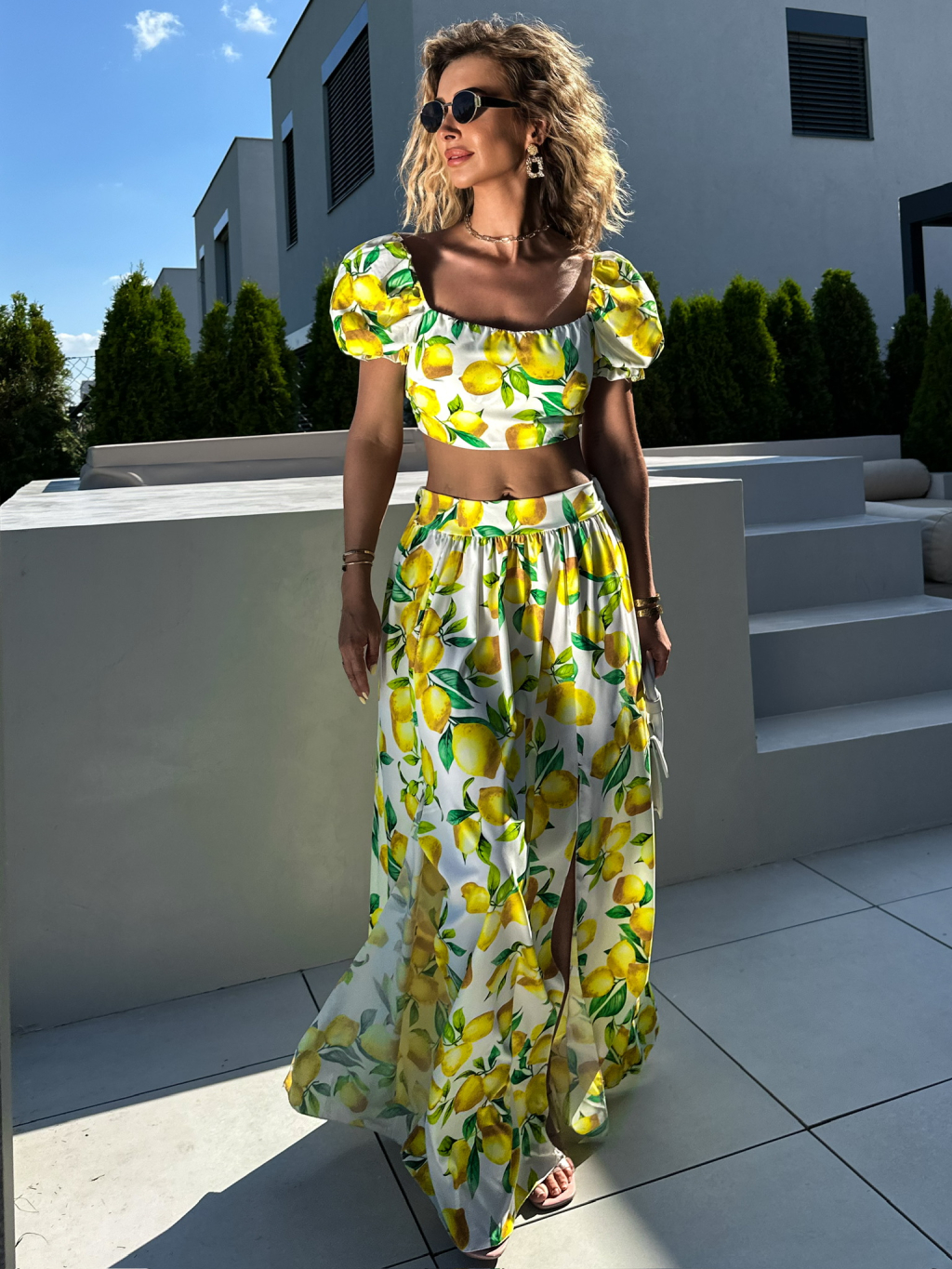 Žlutý komplet se sukní a topem TOMILA s citróny