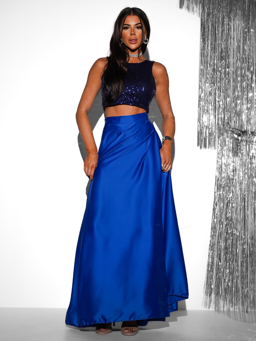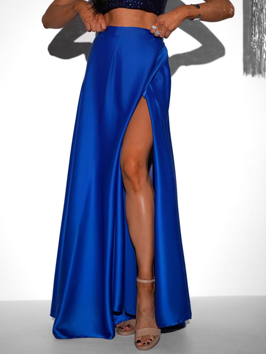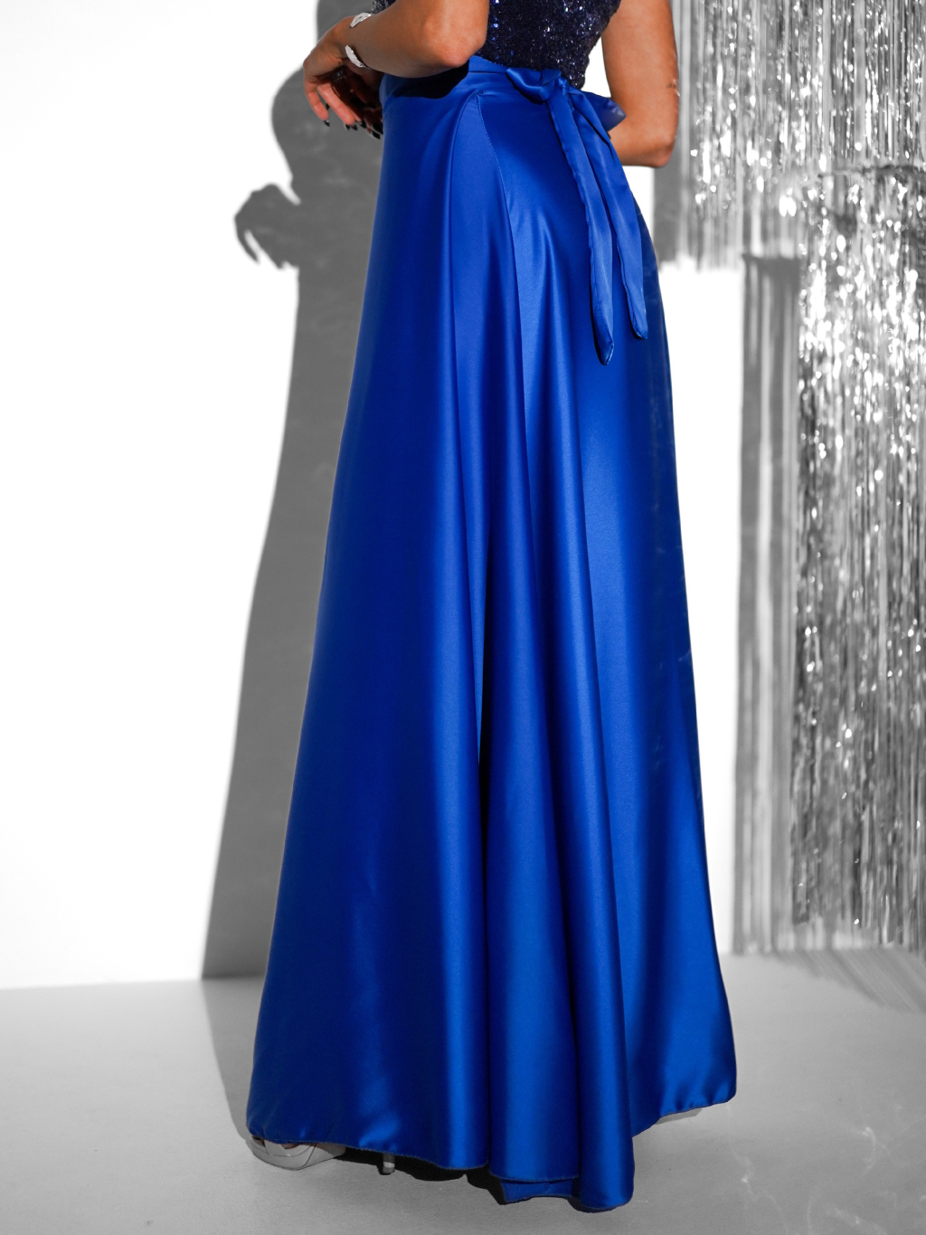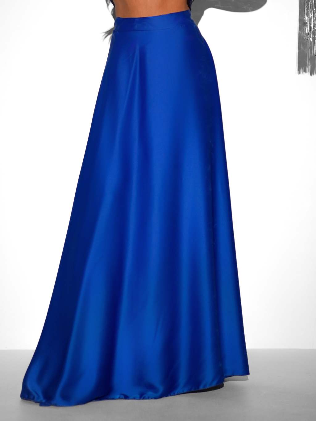 Modrá saténová dlouhá zavinovací sukně DENISSE