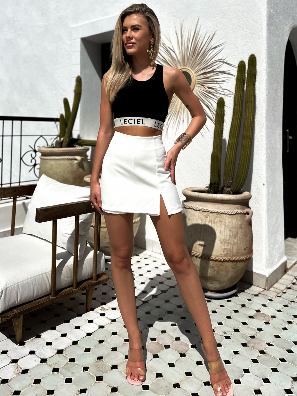 Bílá elegantní sukně a kraťasy v jednom PAISELY