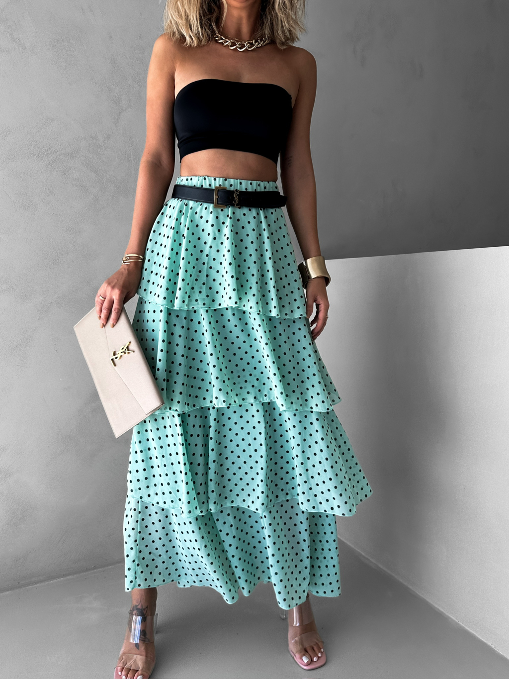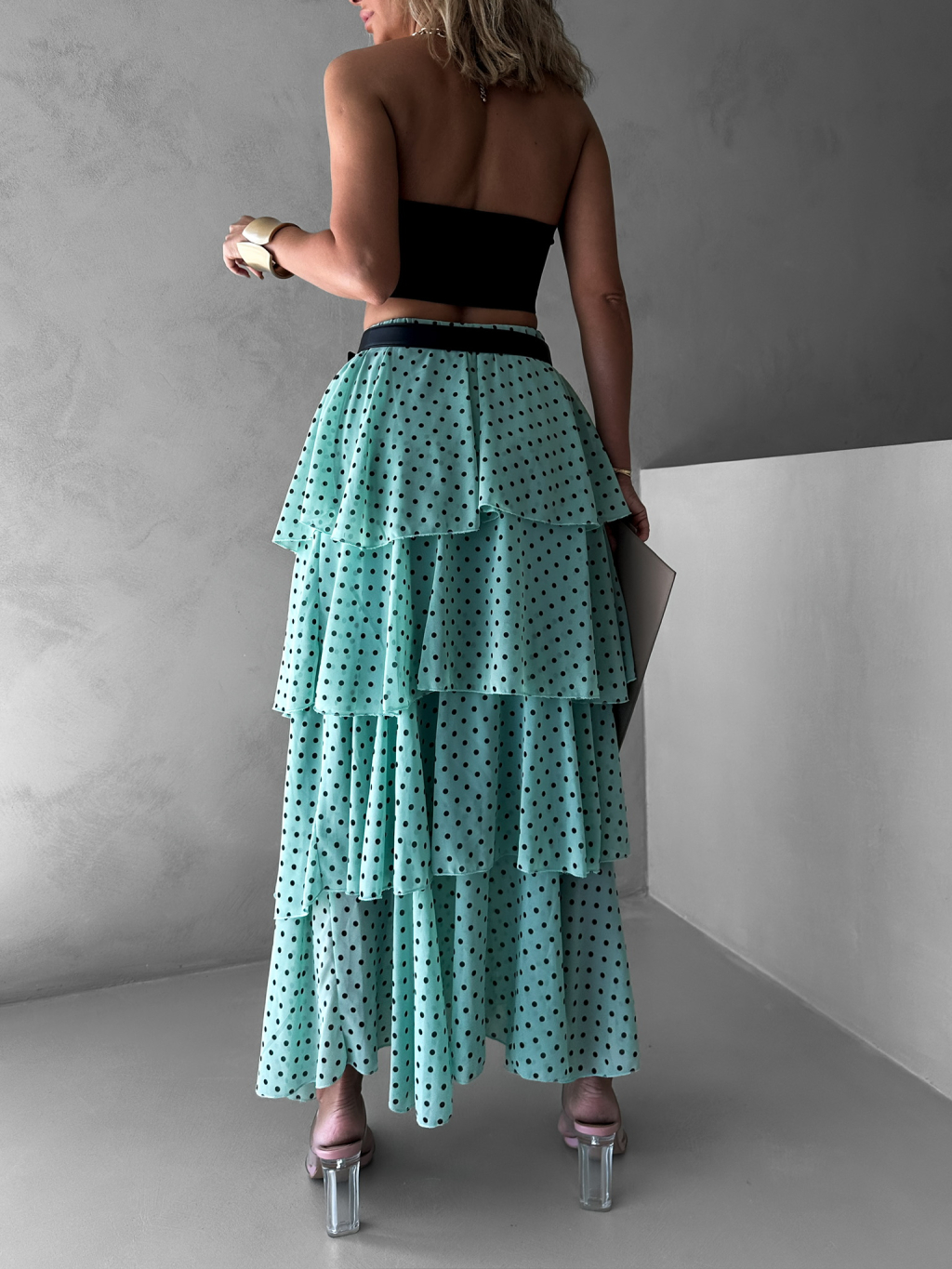 Mentolová maxi volánková sukně JESSIE s puntíky
