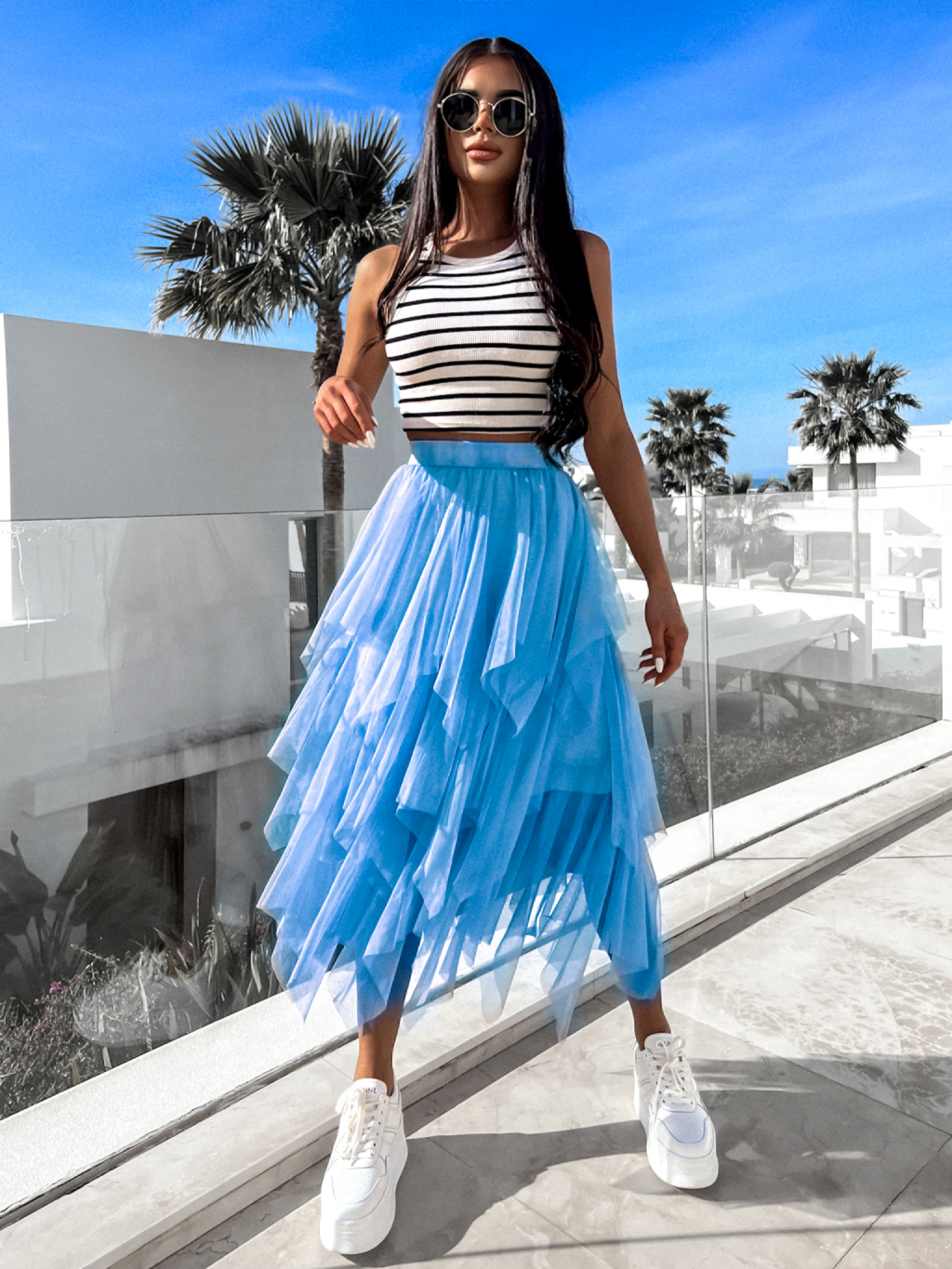 Světle modrá tylová sukně NOTICELL