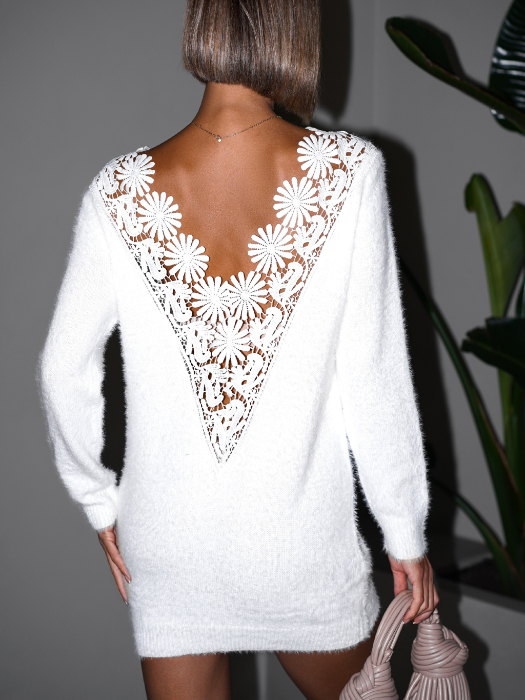 Bílý svetr FERRO s výstřihem