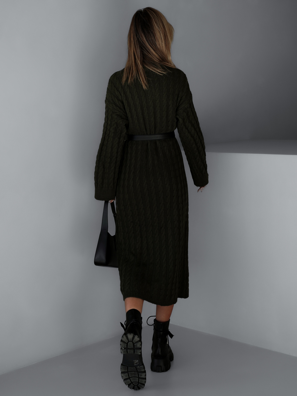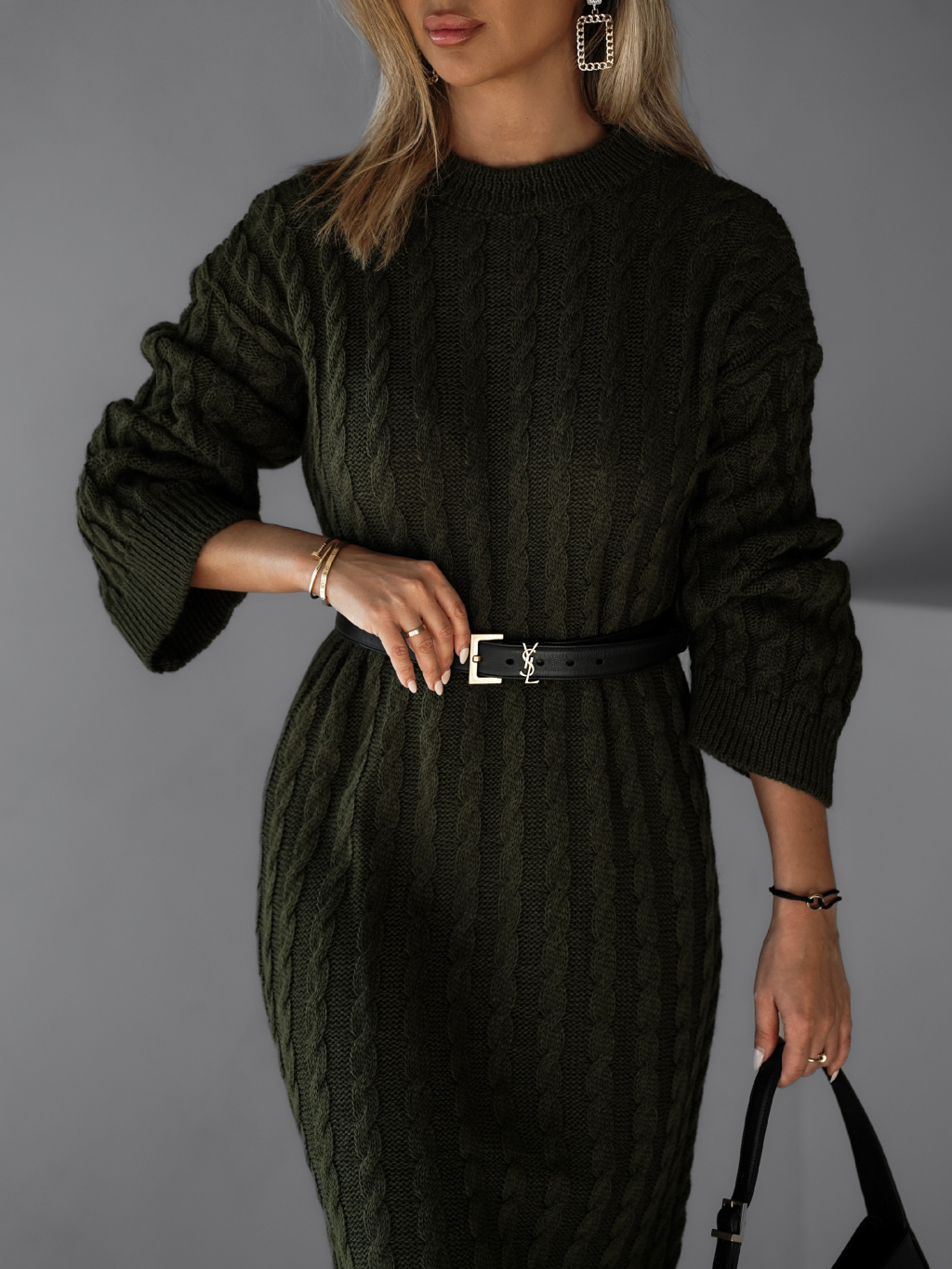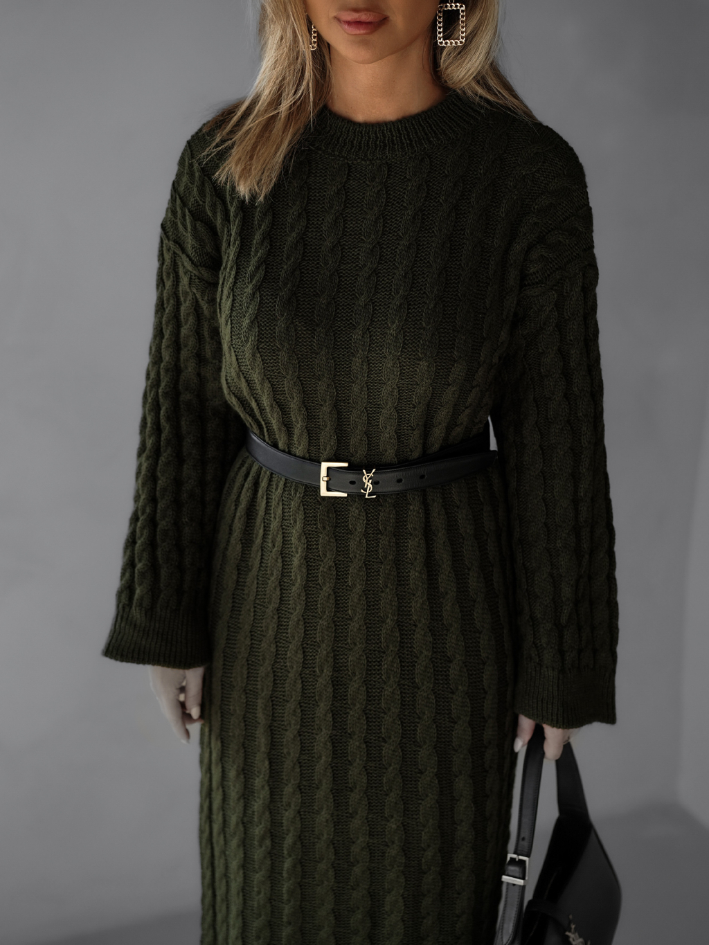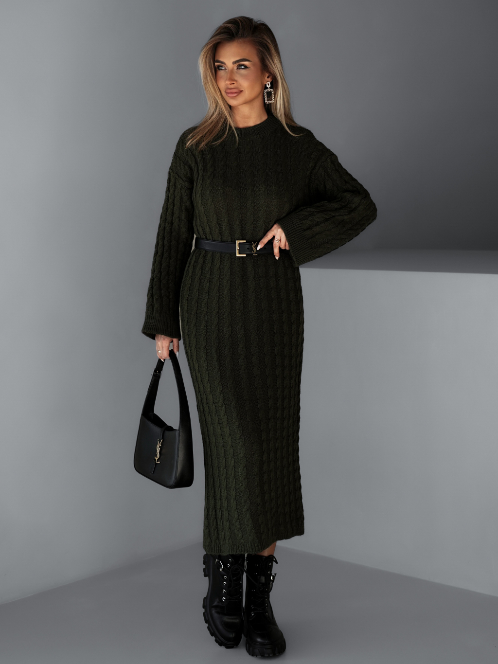 Khaki svetrové dlouhé šaty FRIDOLINA