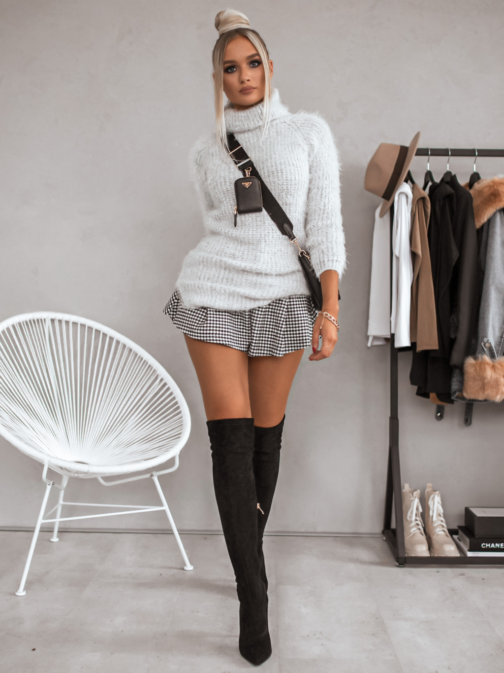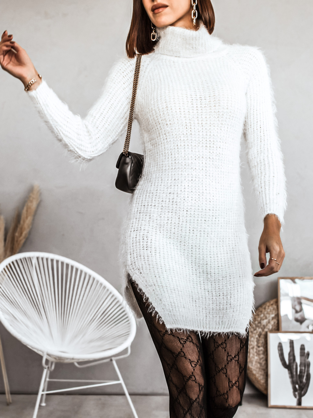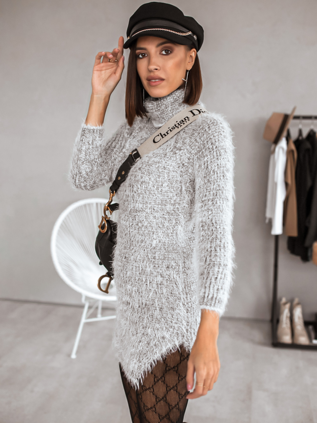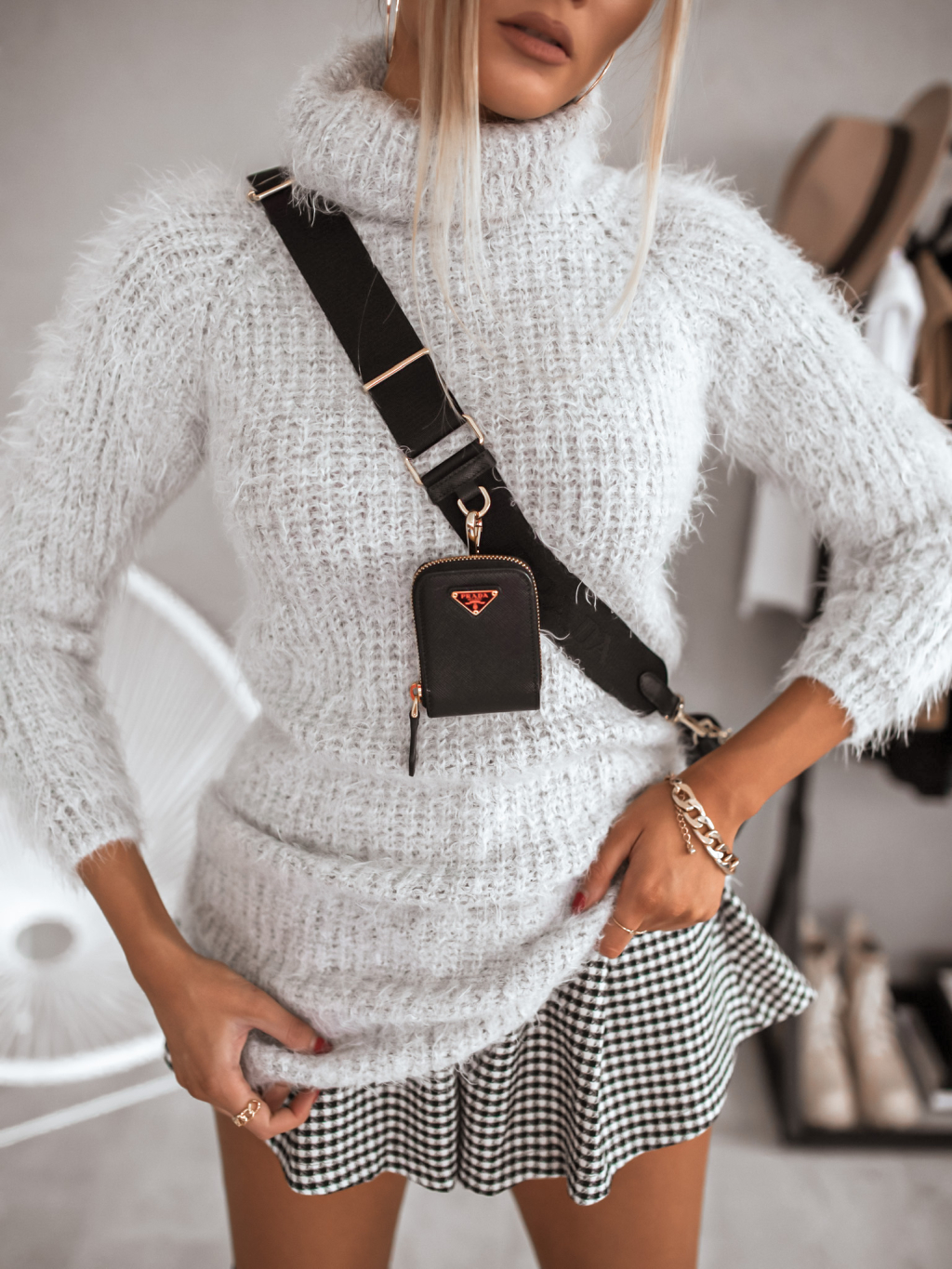 V šatech Furry se budete cítit velmi pohodlně, ale i Vás příjemně zahřejí. Šaty mají dlouhý rukáv a délka šatů sahá pod zadek. Šaty lze nosit i jako delší svetr. Šaty Furry jsou u krku řešeny rolákem. Jedná se o lehce kombinovatelný kousek, který by Vám neměl v šatníku chybět. Věřím, že si je zamilujete stejně jako my.