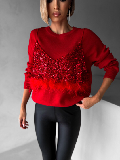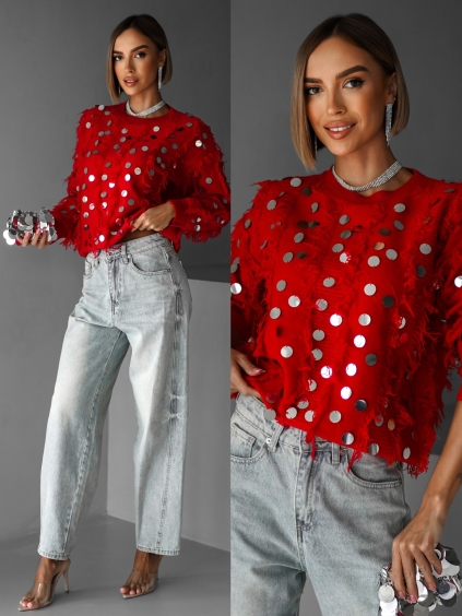 Červený oversize třpytivý svetr ANETTY s flitry