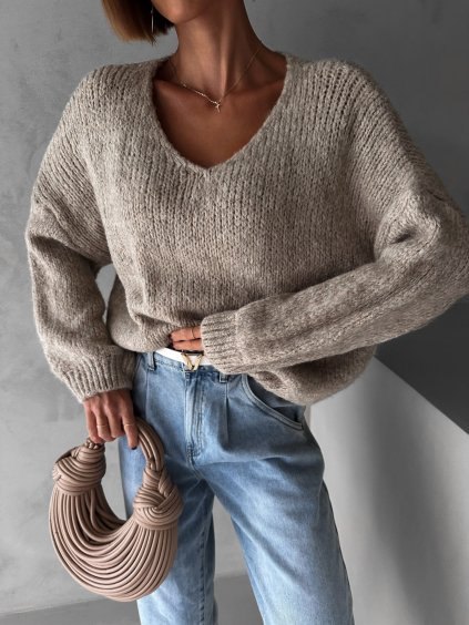 Hnědý oversize pohodlný svetr ZARVONI s vlnou