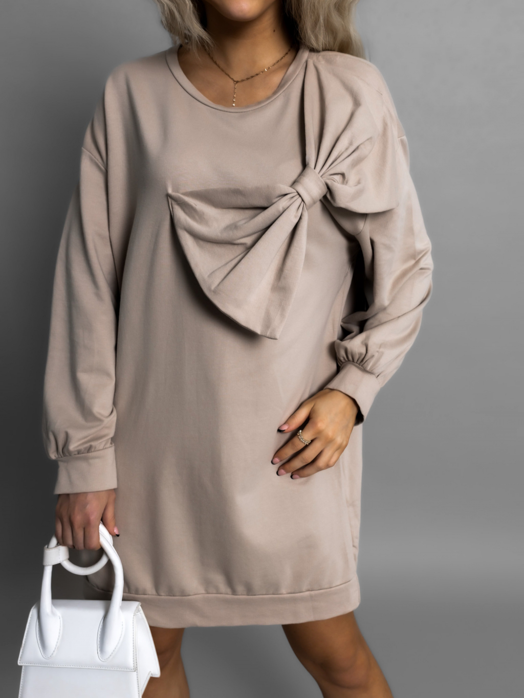 Béžová oversized mikina BONTRIX s mašlí