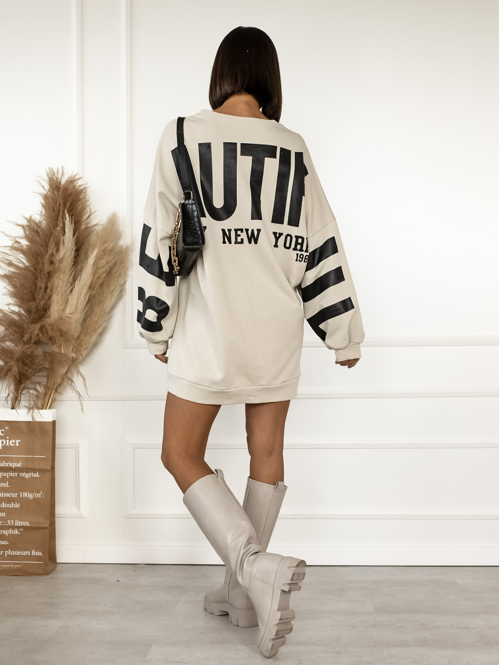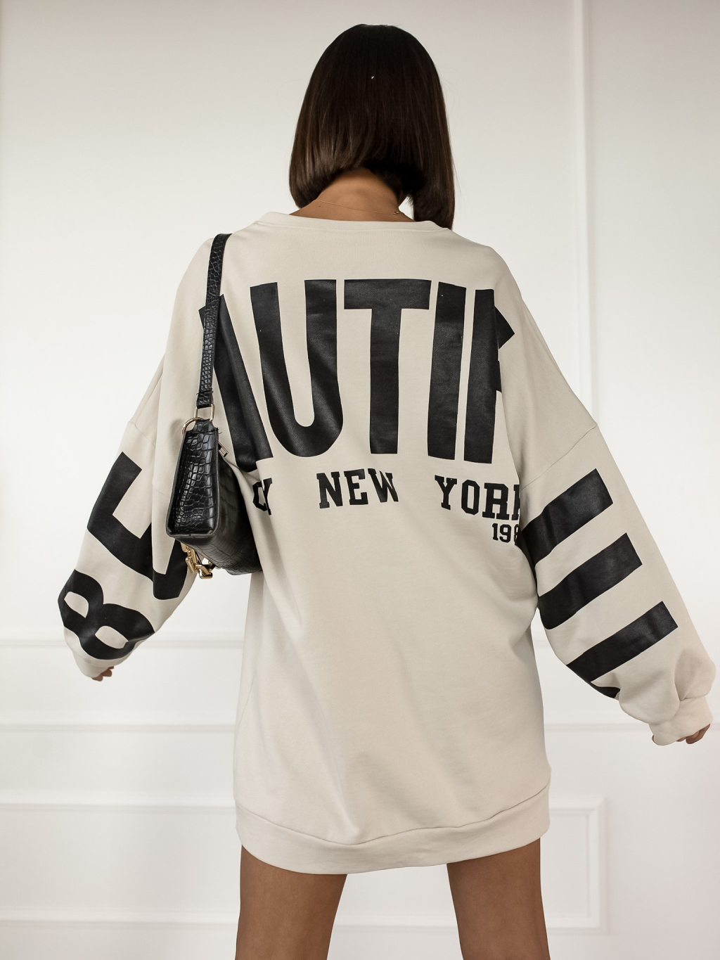 Béžová oversized mikina YORK a potiskem na zádech