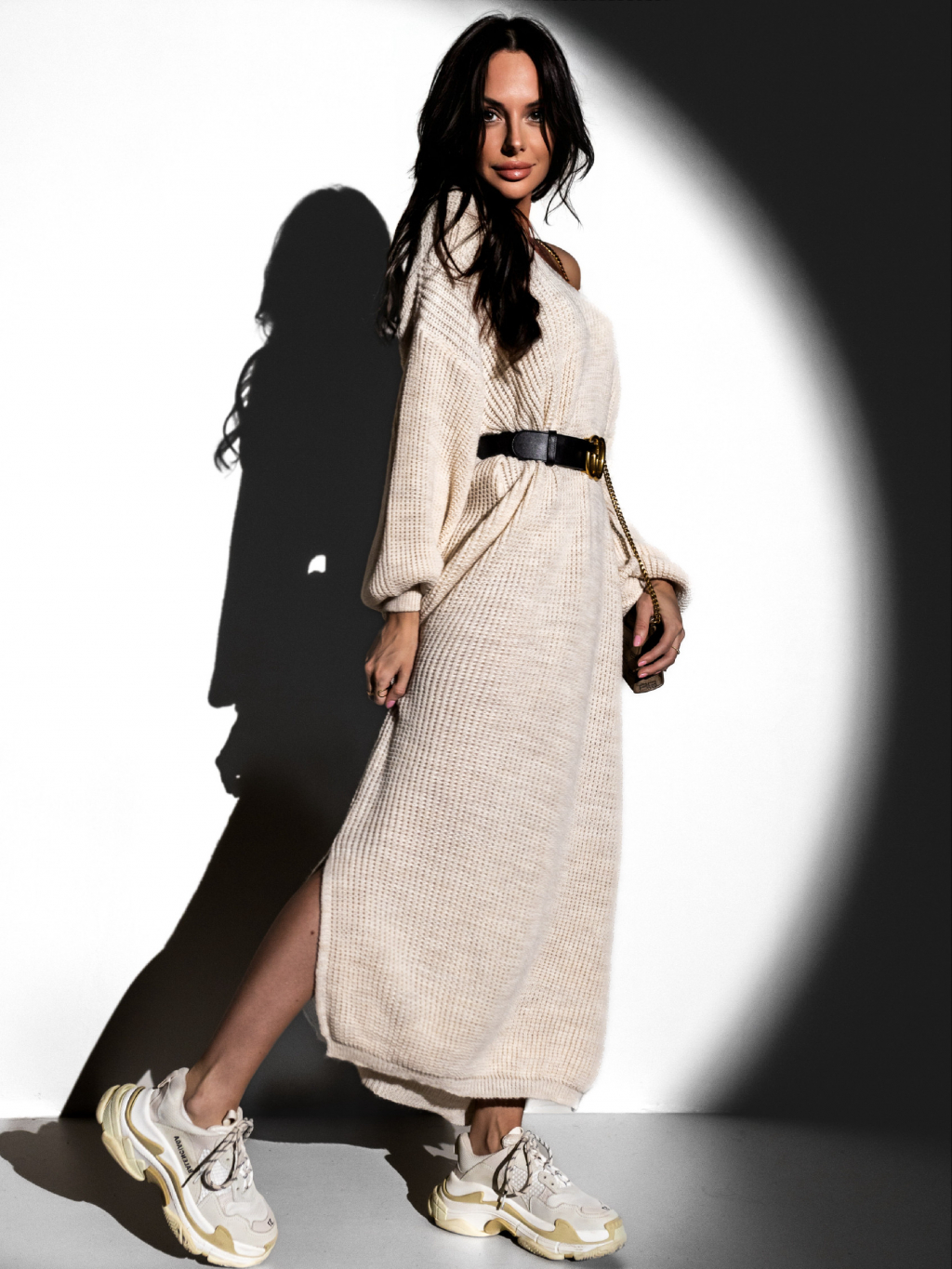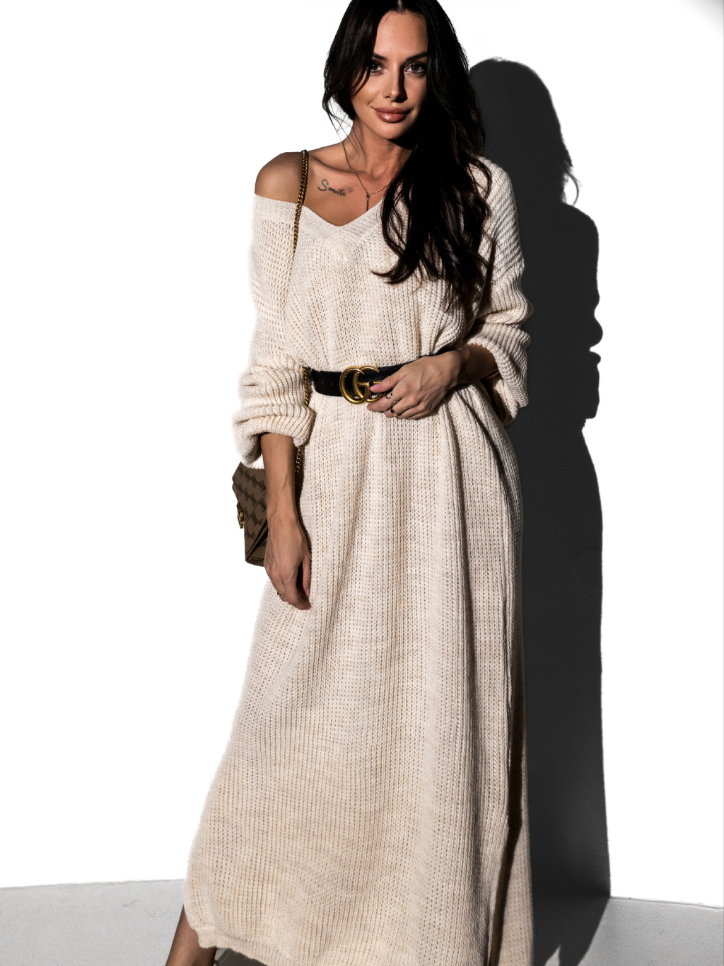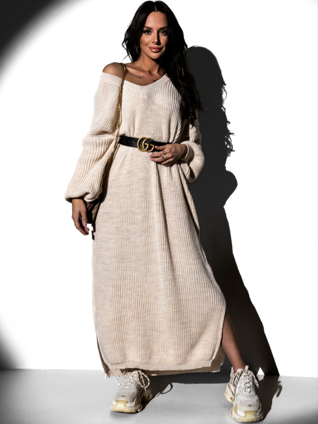 Béžové svetrové oversized šaty RUPI