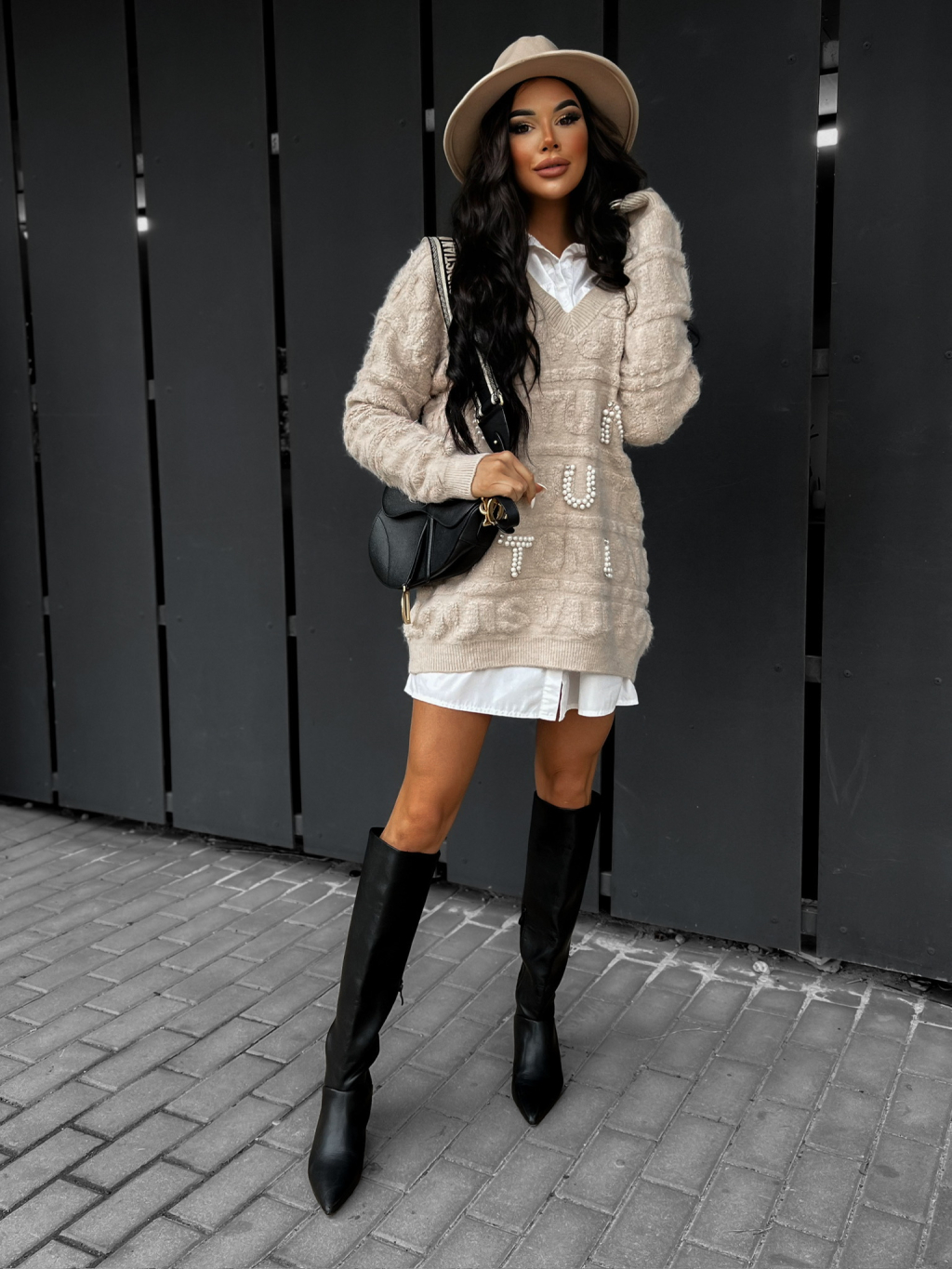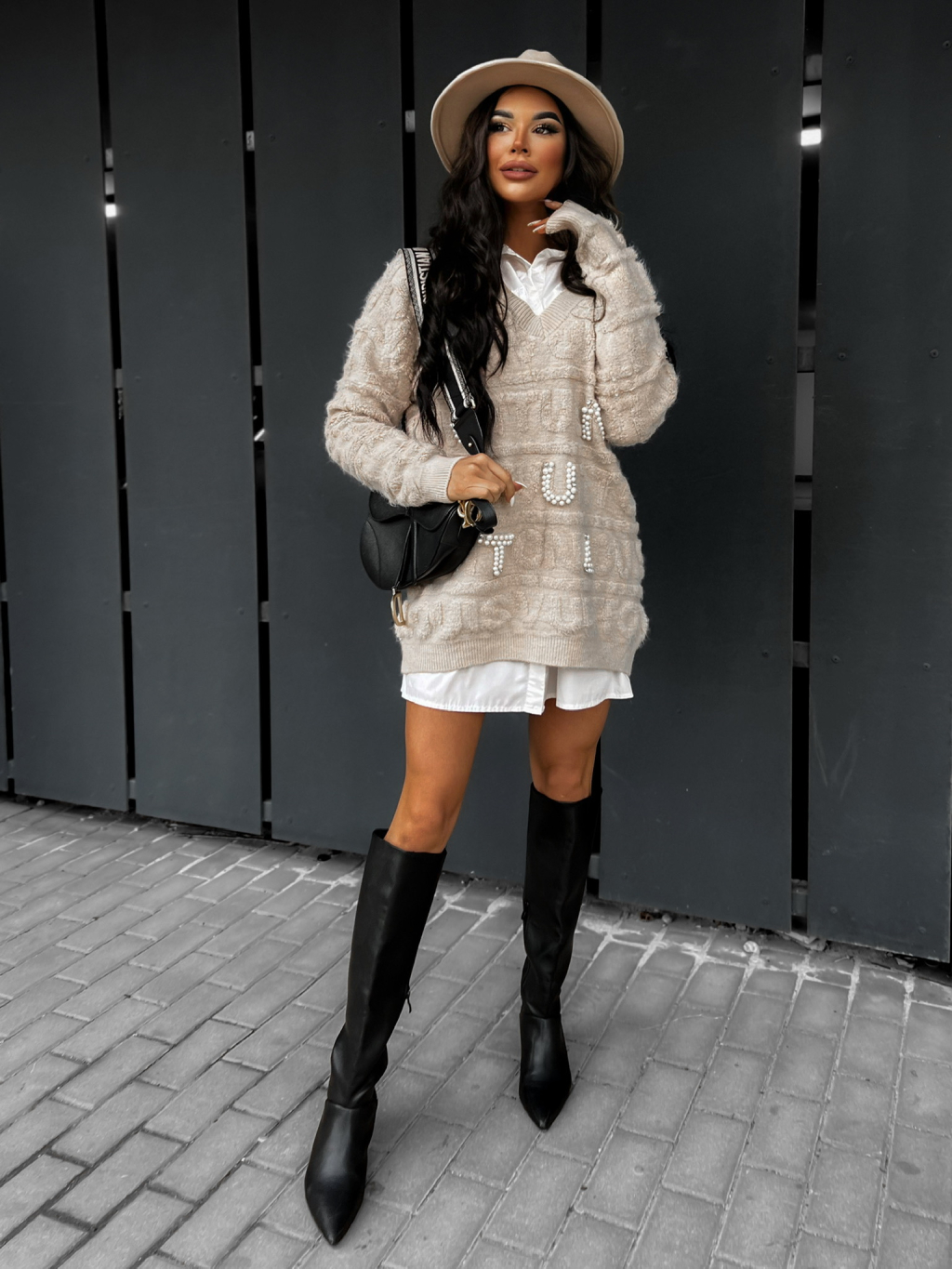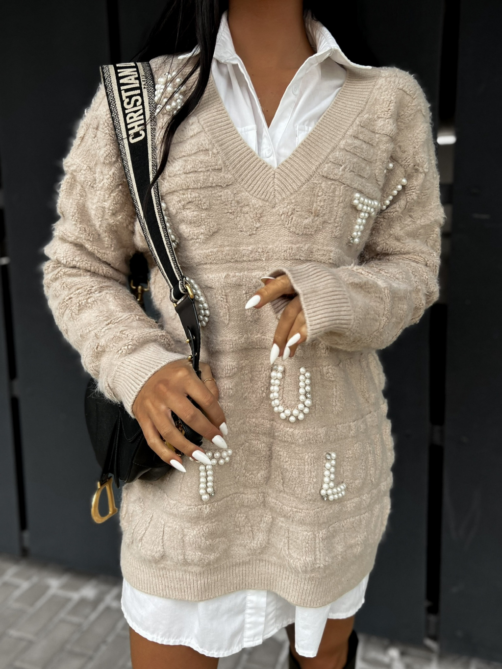 Béžový elegantní svetr SAMARAS s perličkami