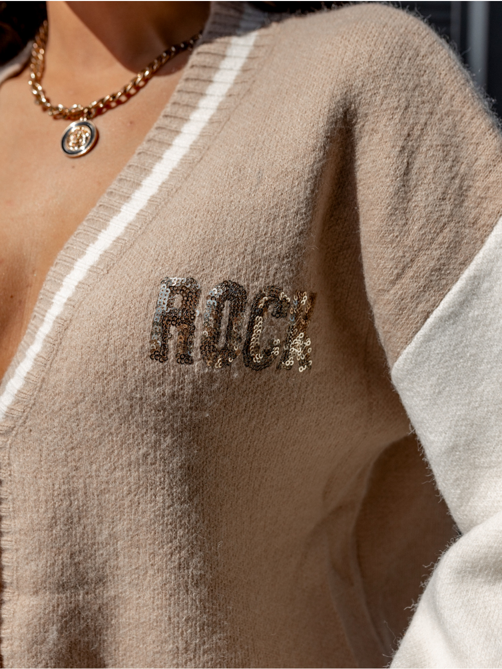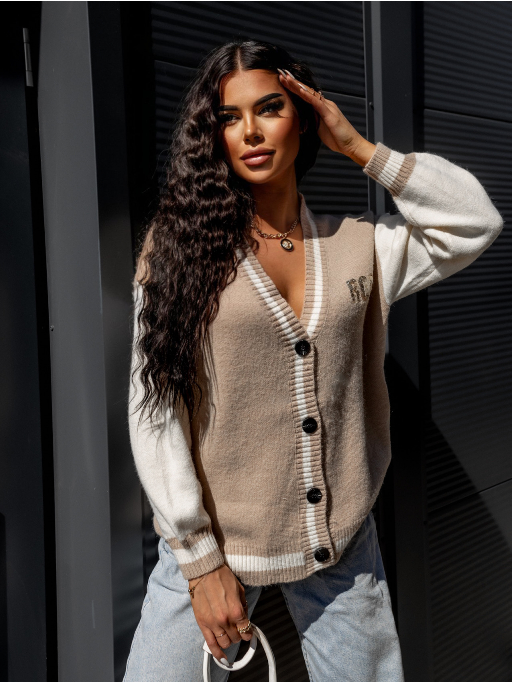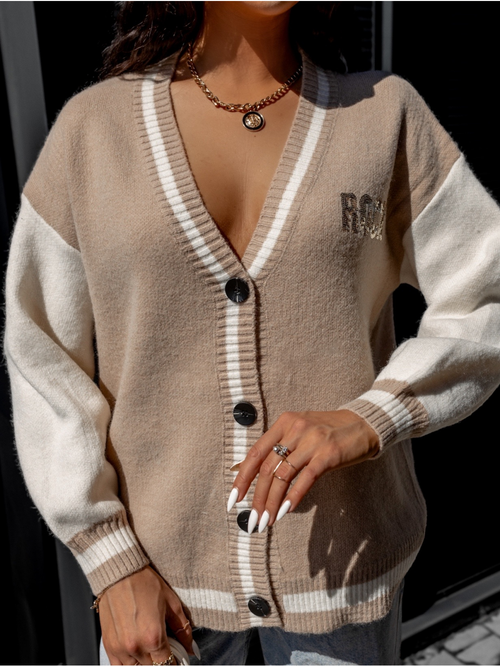 Béžový svetr LINEAR s knoflíky