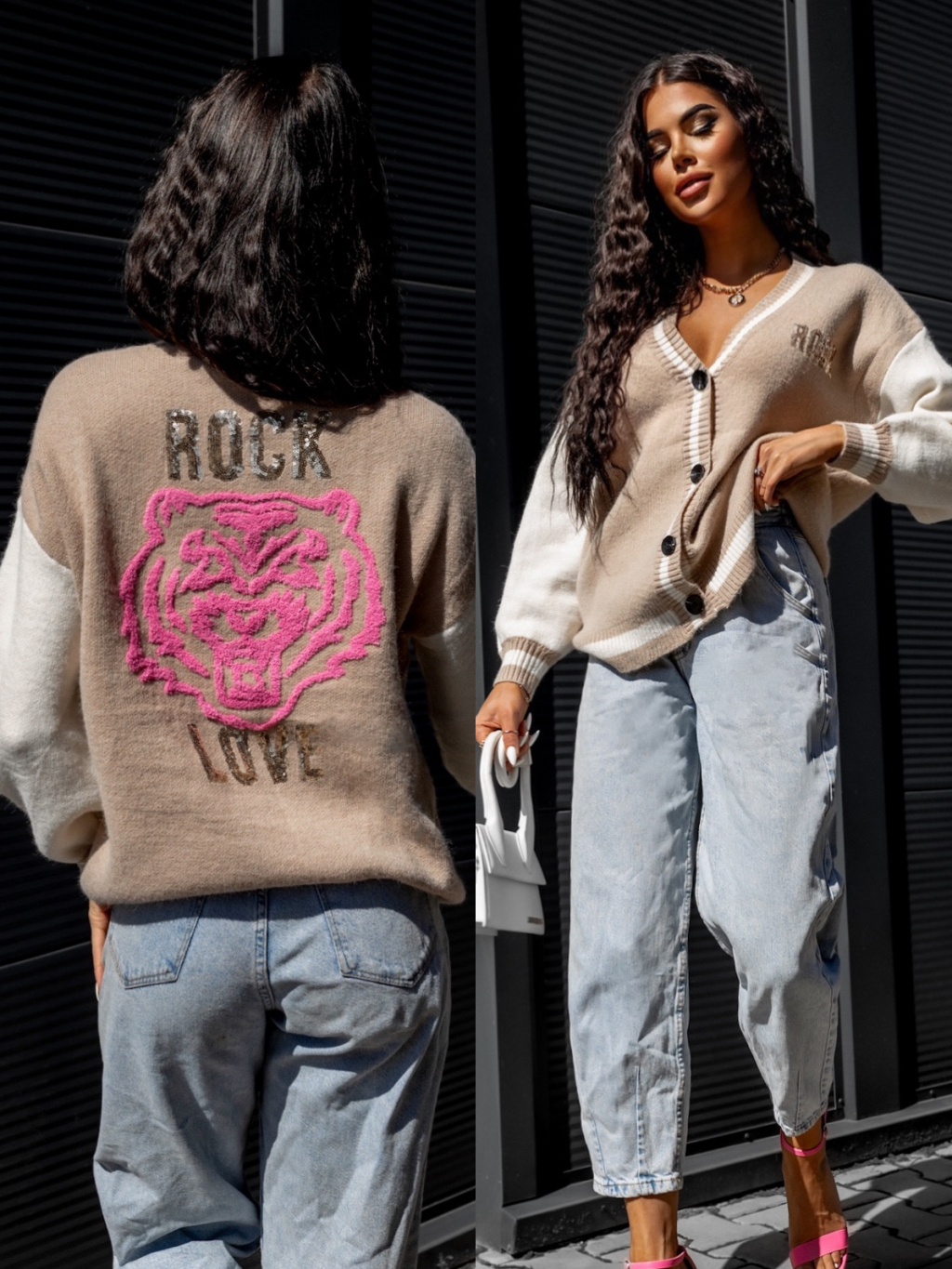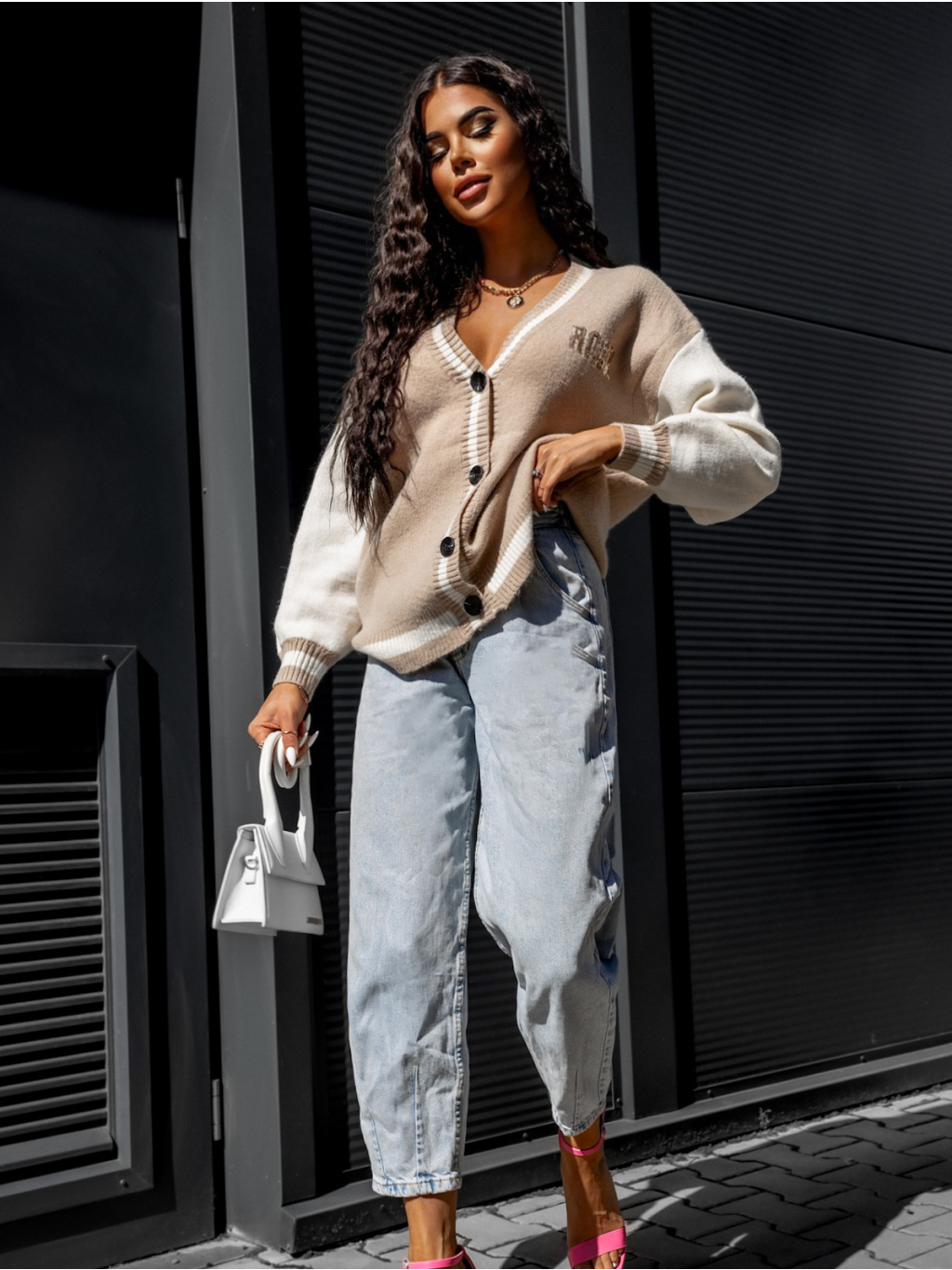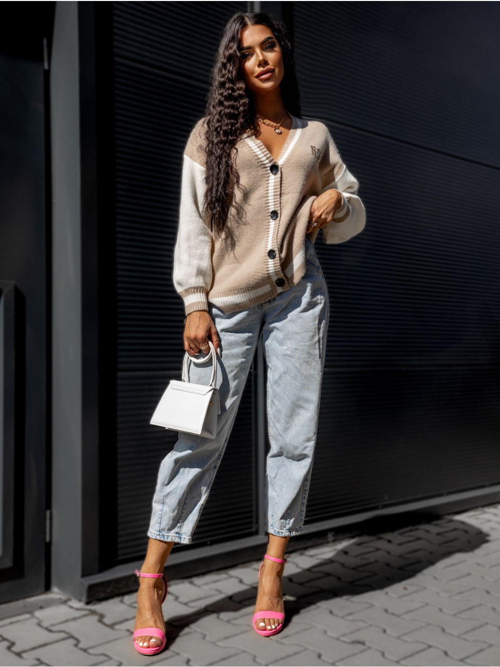 Béžový svetr LINEAR s knoflíky