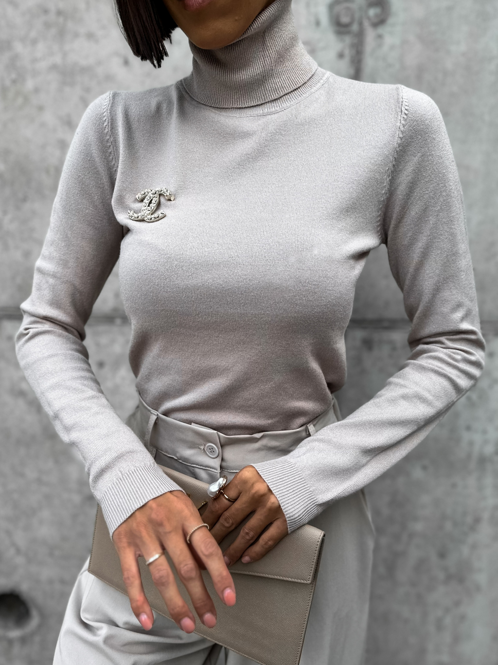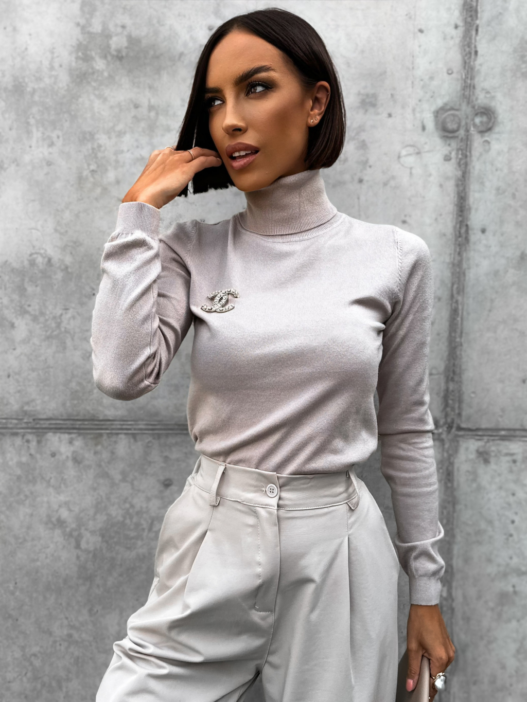 Béžový svetřík CATENY s roláčkem