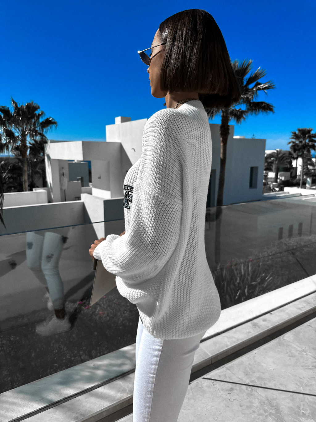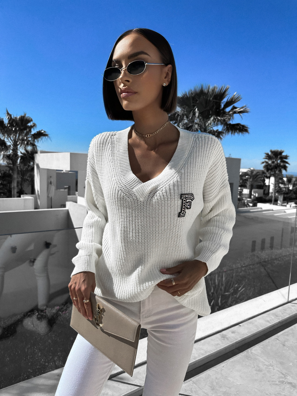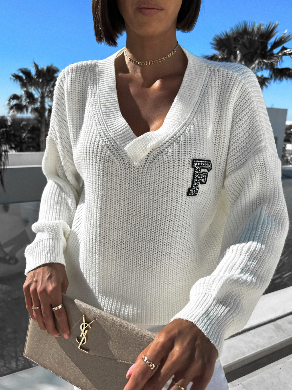 Bílý dlouhý svetr ANNIKA s výstřihem do V