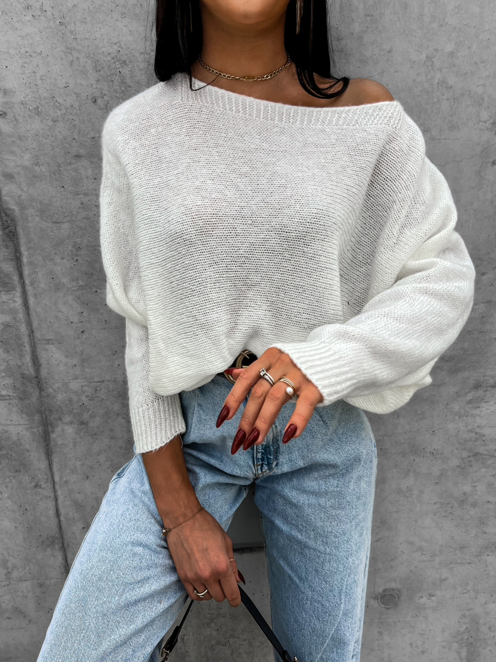 Bílý oversize svetr CLASSICE