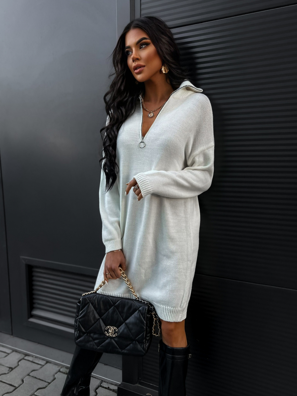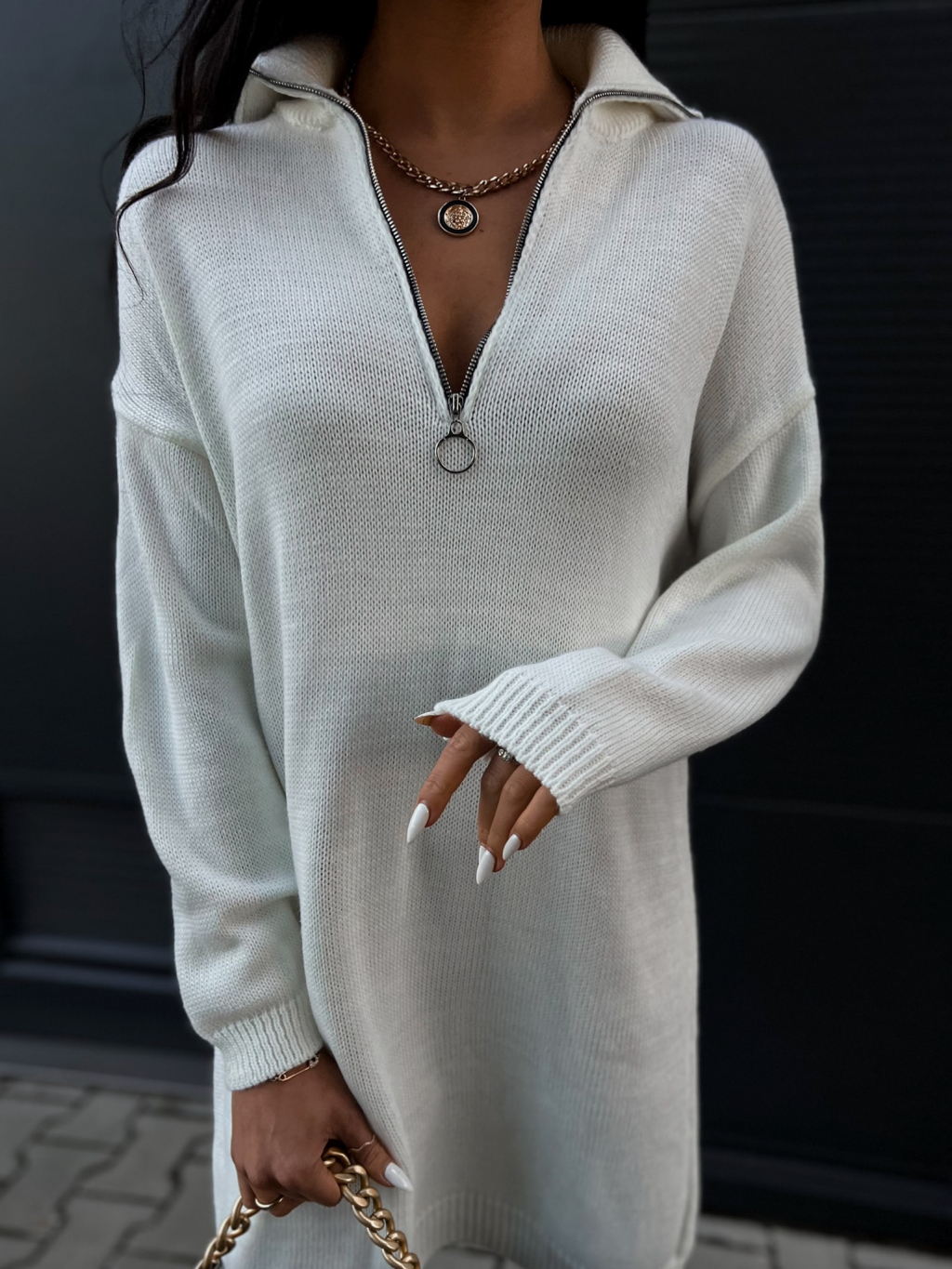 Bílý oversized svetr GALOT se zipem