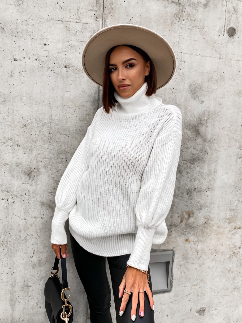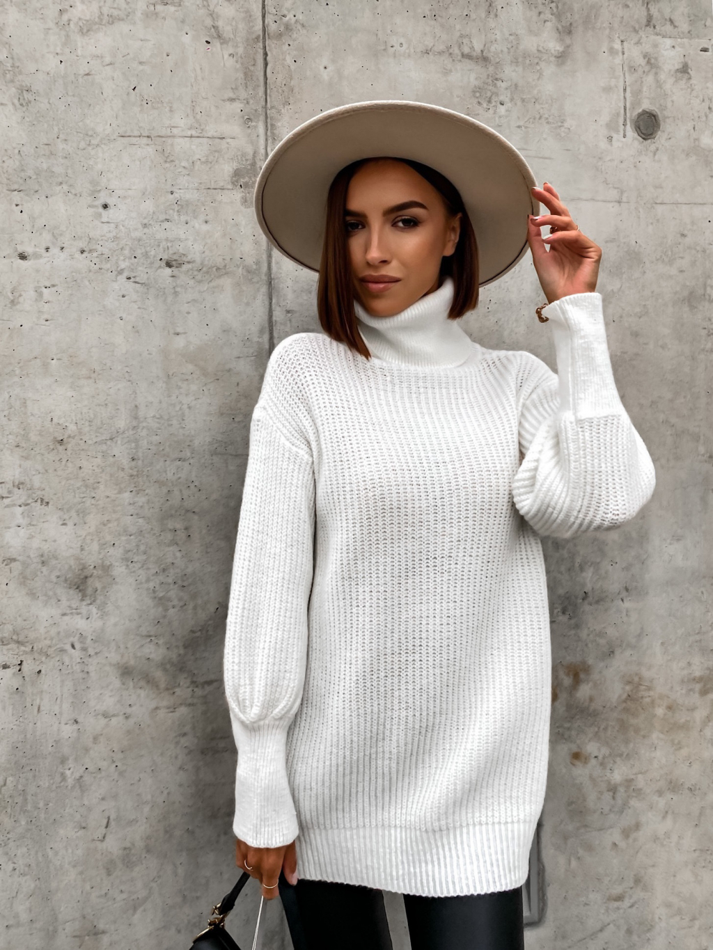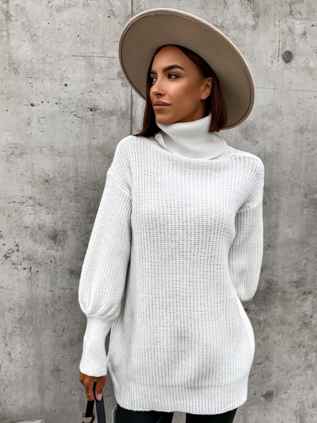 Bílý pletený svetr STAR s rolákem