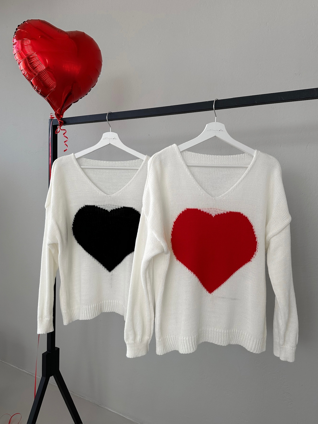 Bílý svetr LORDES s černým srdcem
