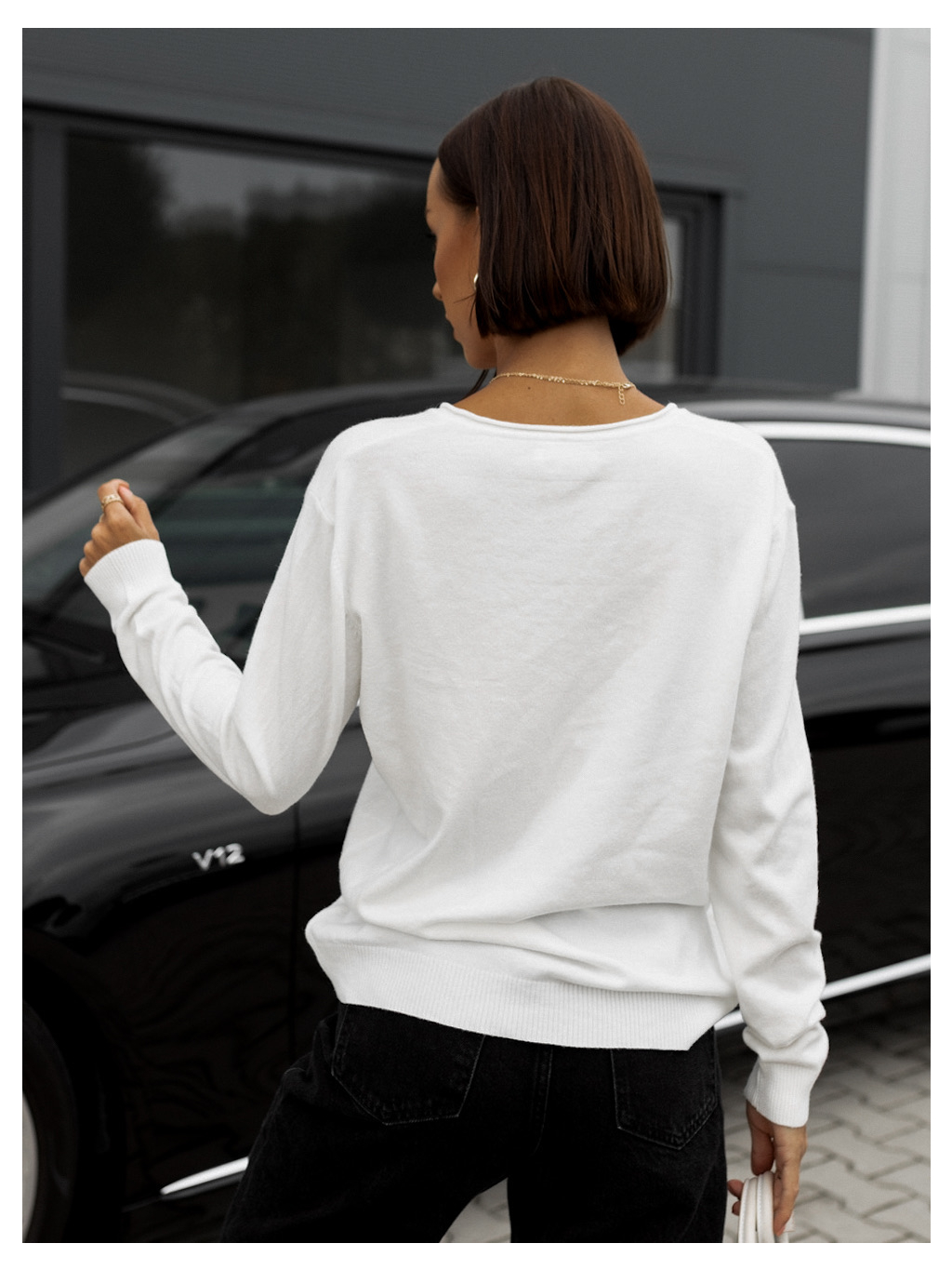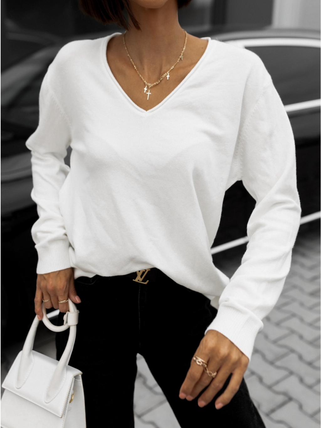 Bílý svetr MARIKA s výstřihem