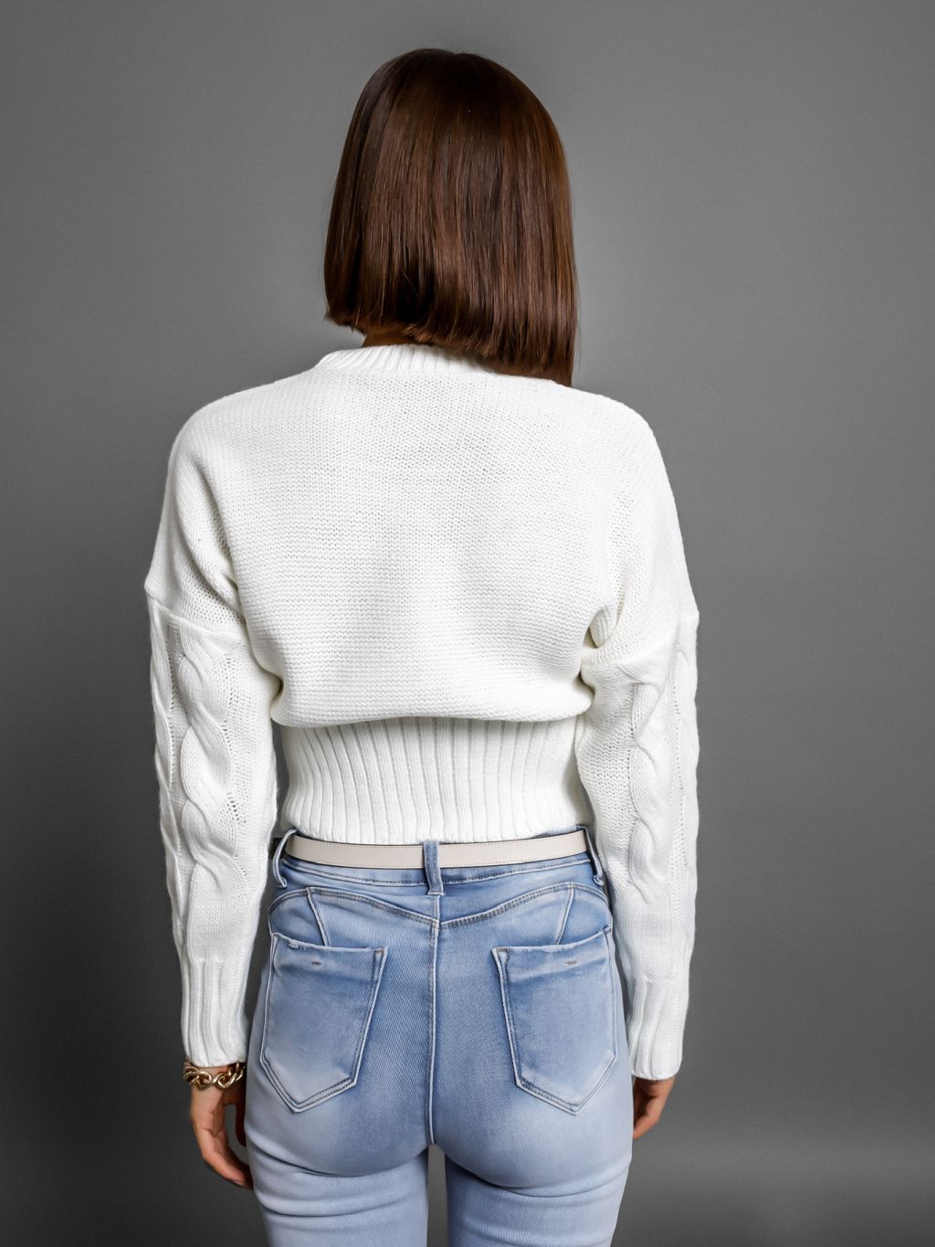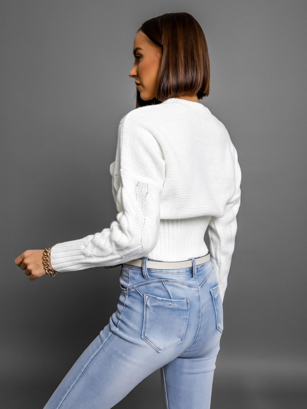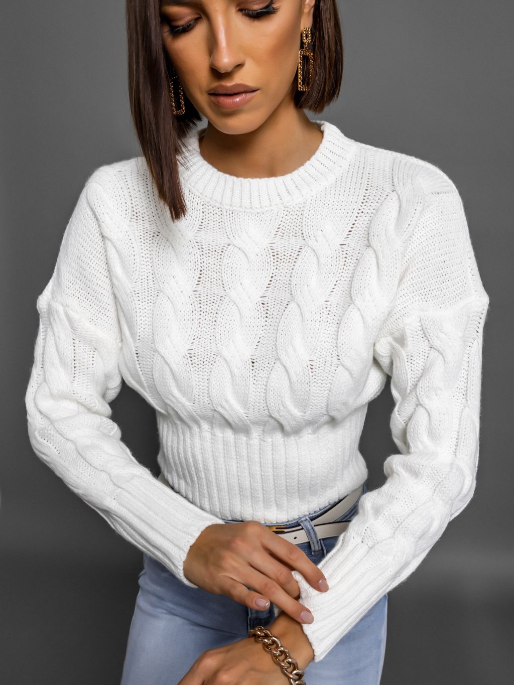 Bílý svetřík MERCADO s pleteným vzorem