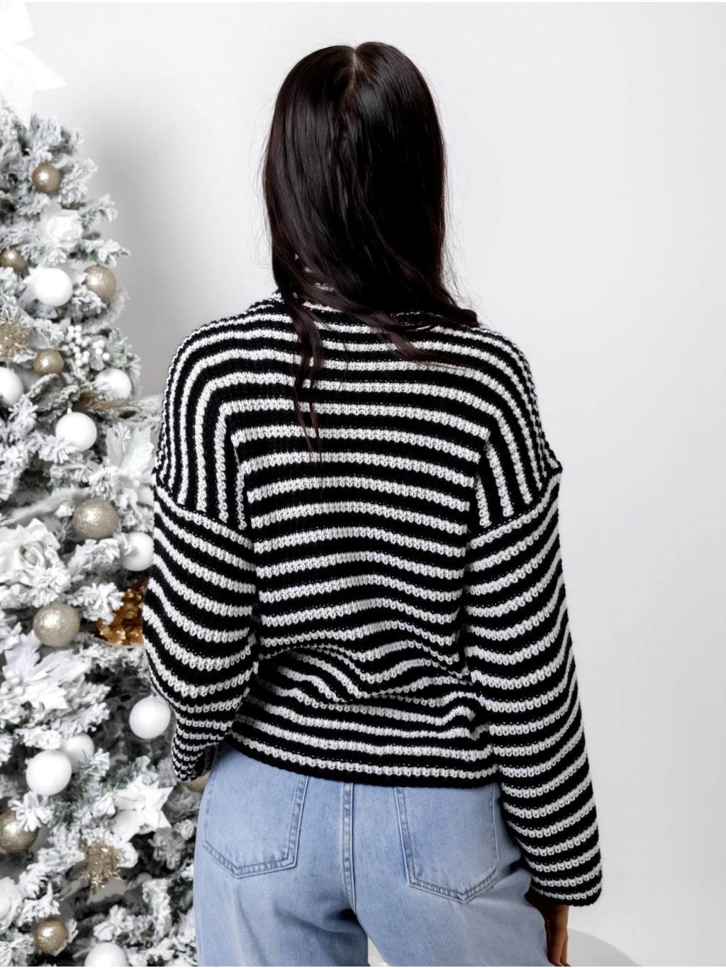 Černobílý pruhovaný svetr TINSEL s roláčkem