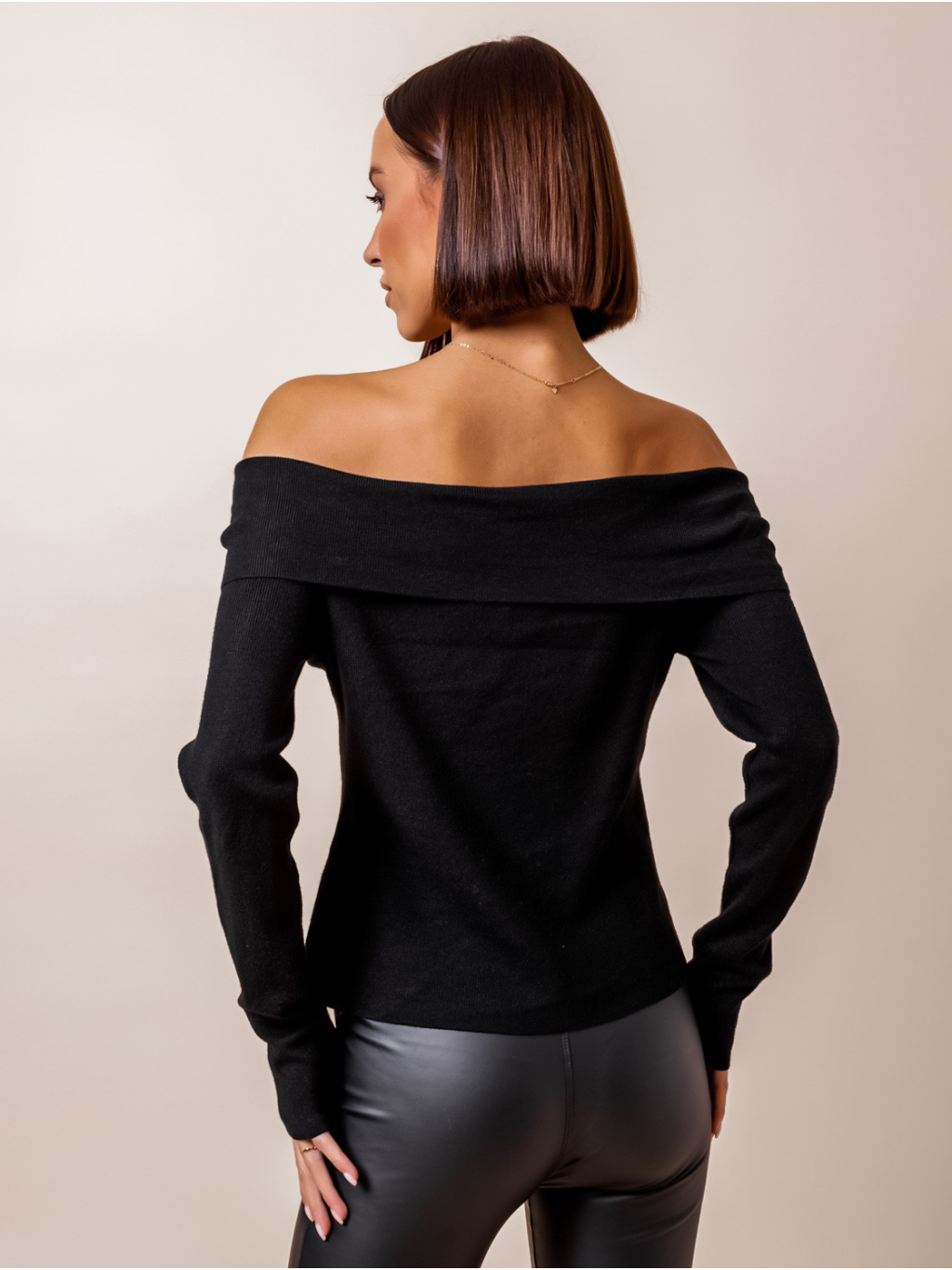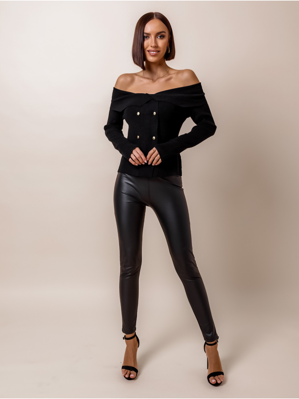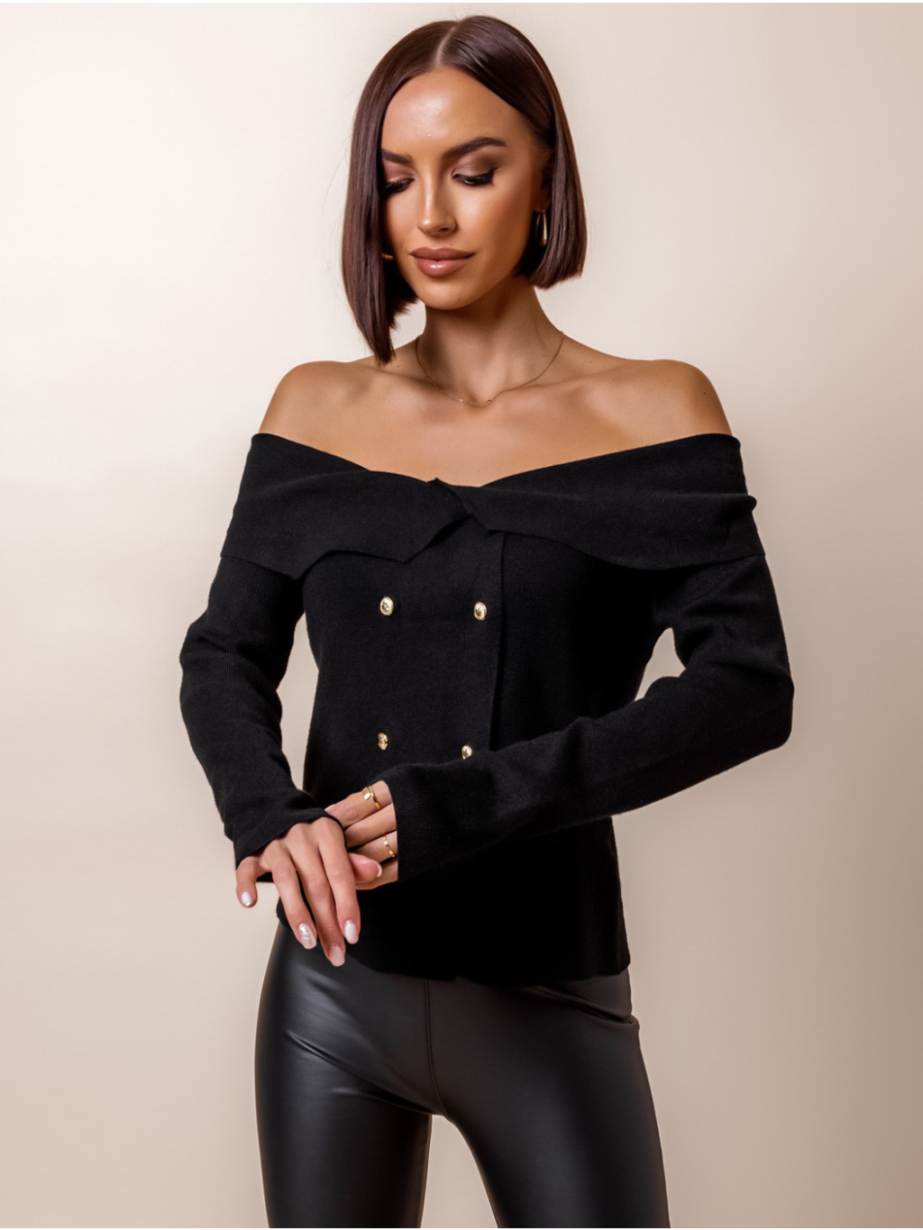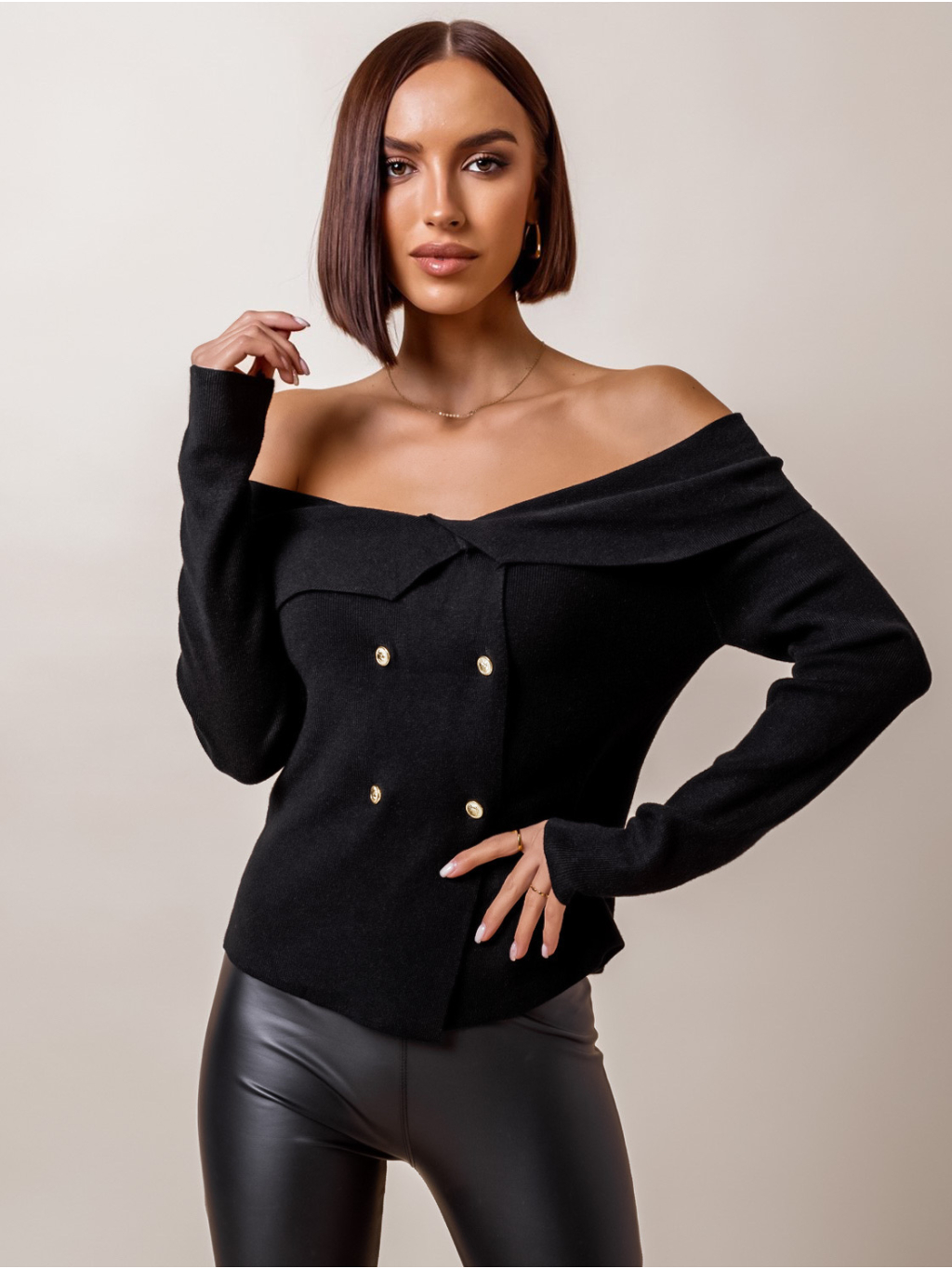 Černý elegantní svetr HUTTON se zlatými knoflíky