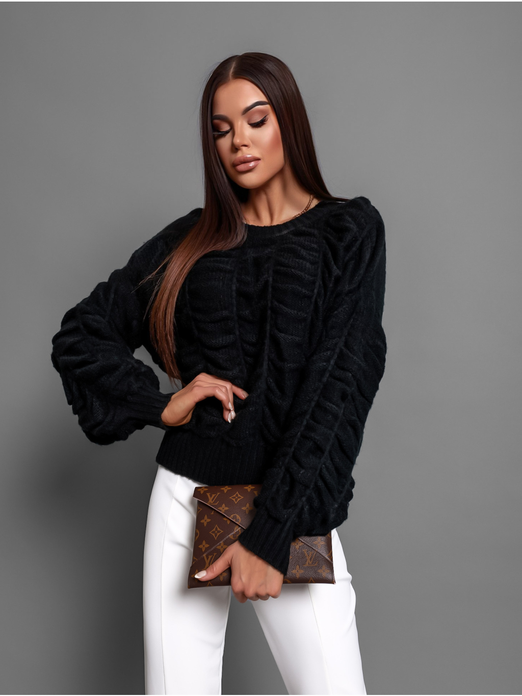 Černý nařasený svetr DROPPY s volnými rukávy