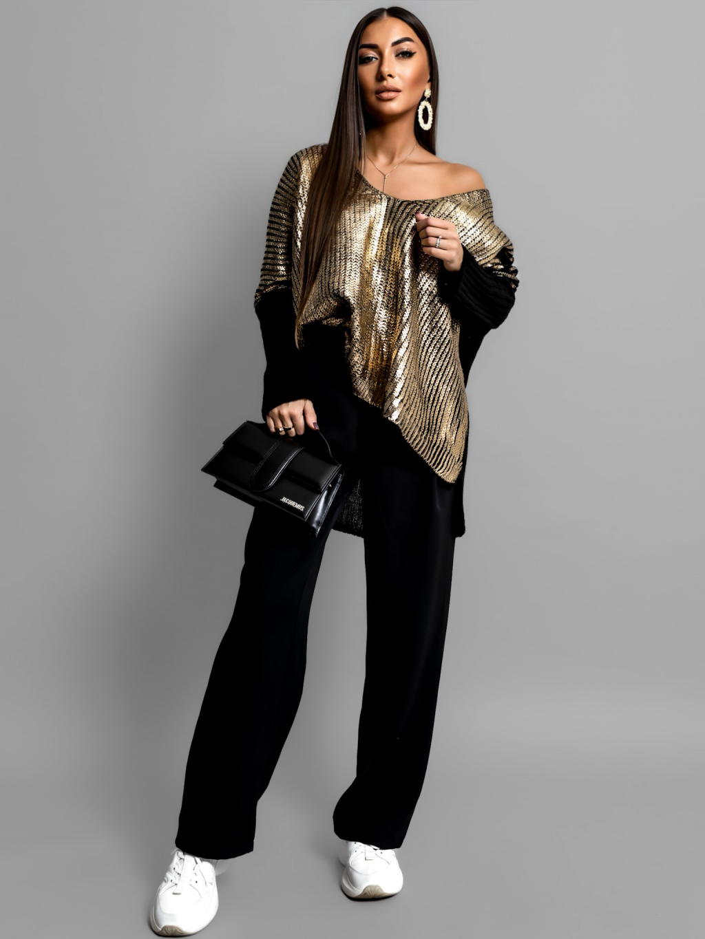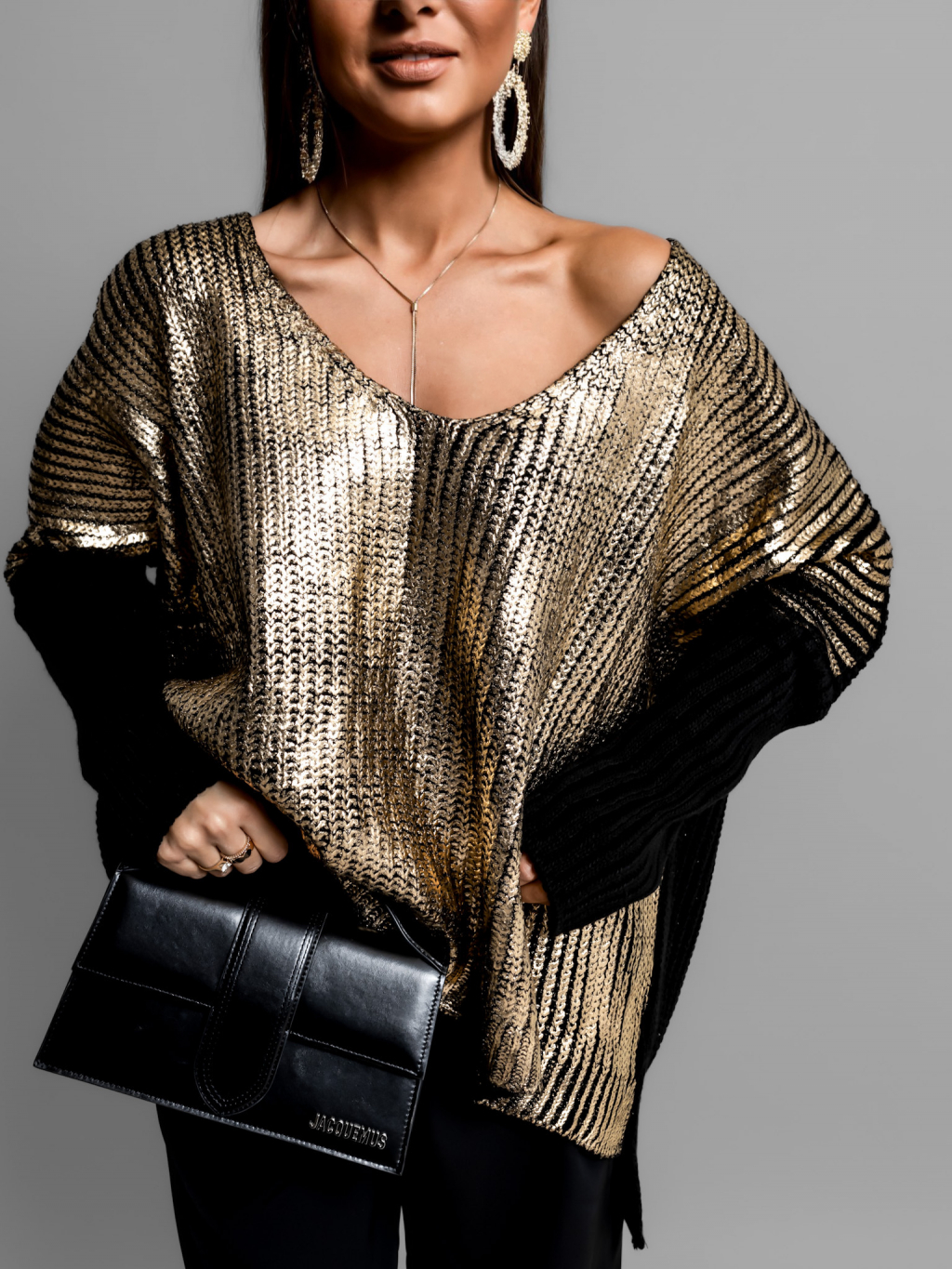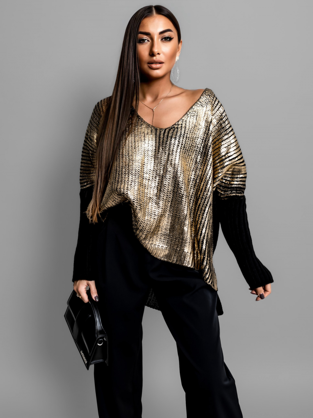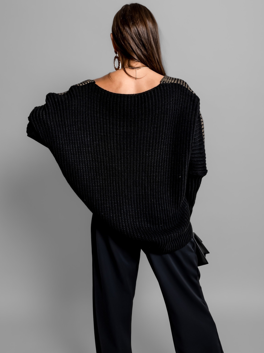 Černý oversized svetr SKYLLA s metalickým efektem