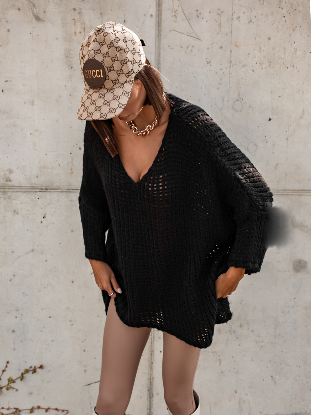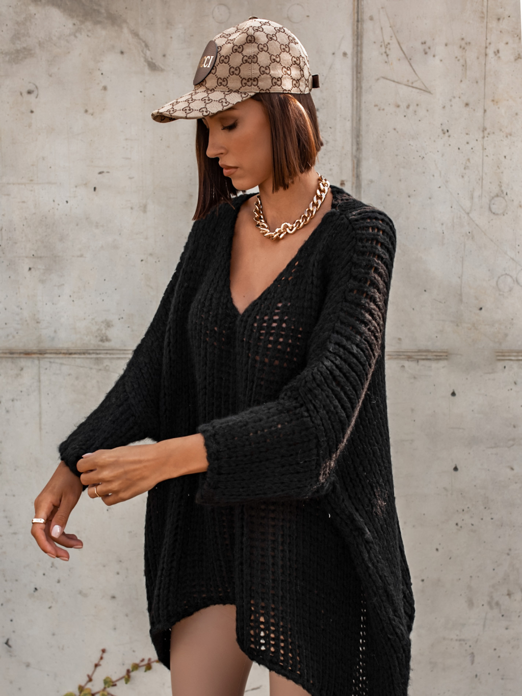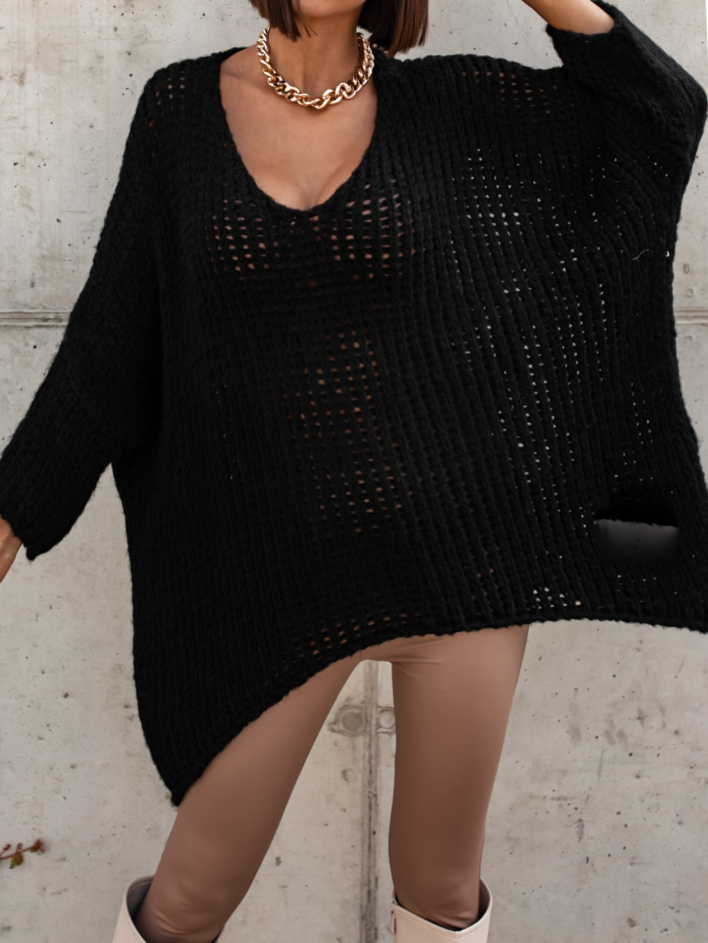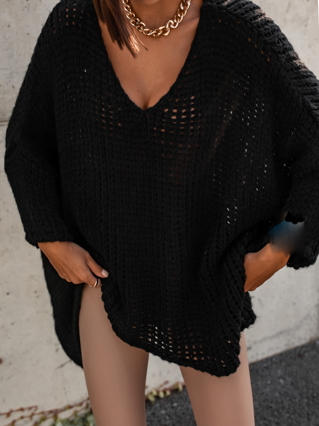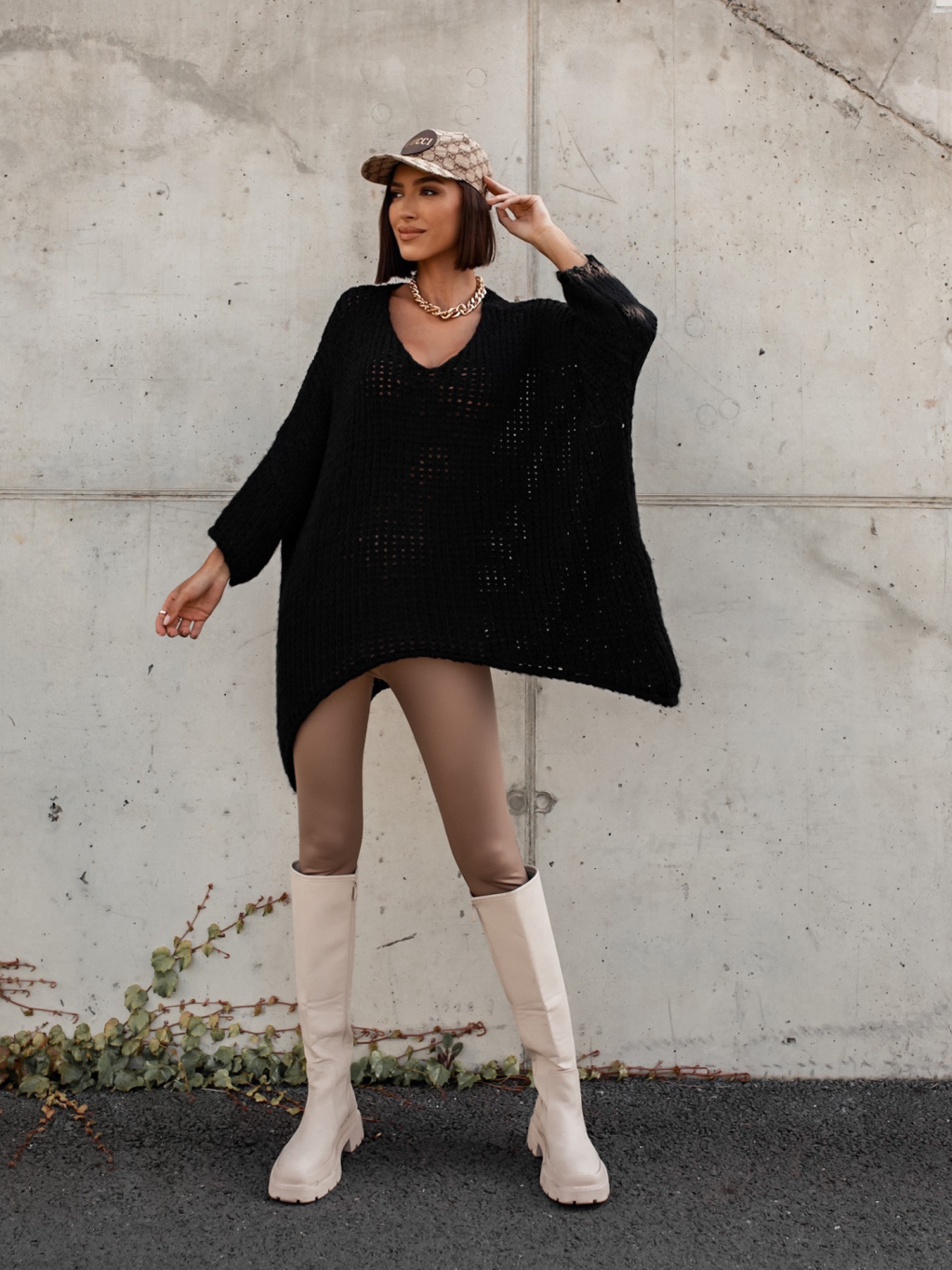 Černý pletený oversize svetr JENG