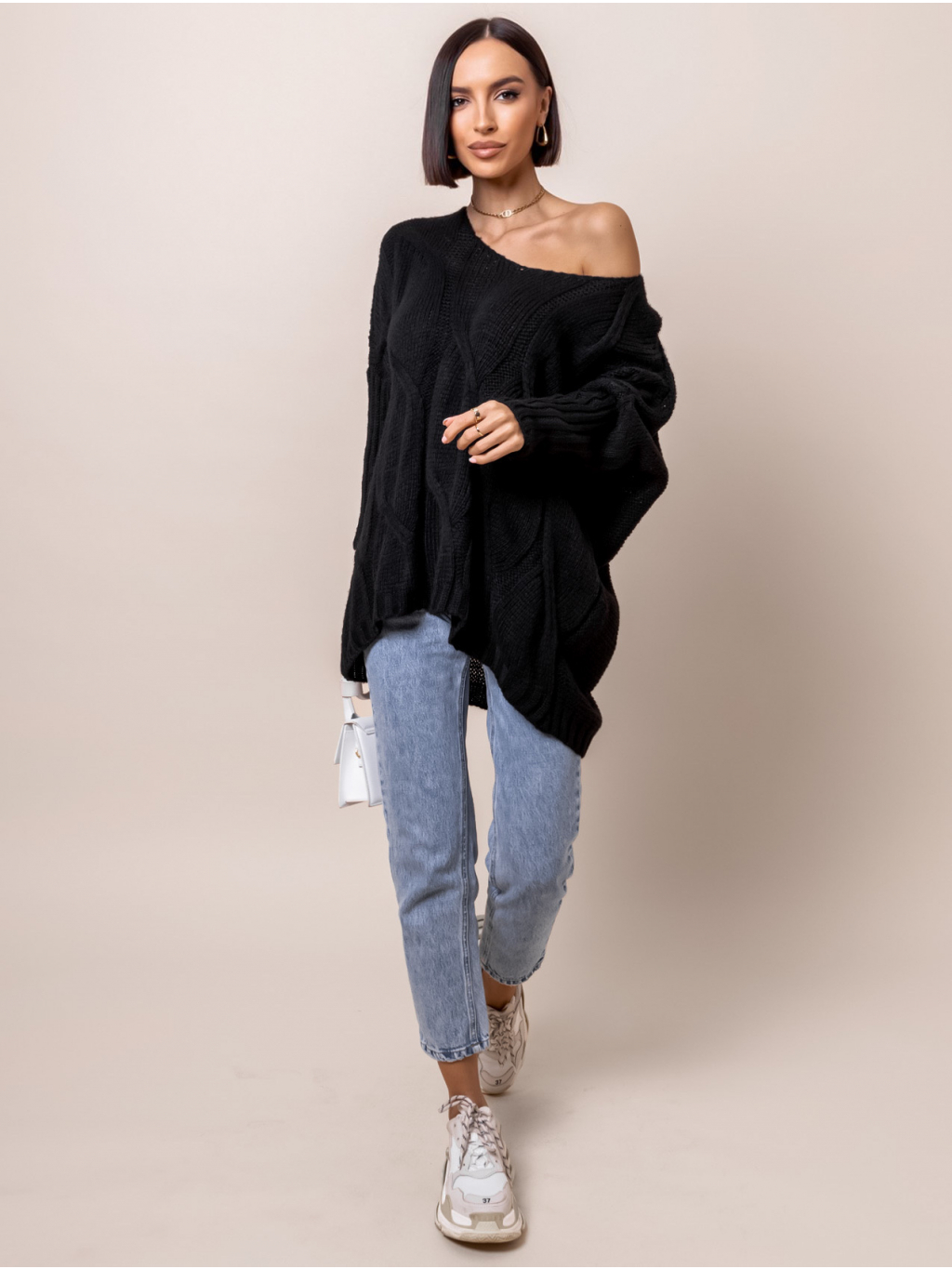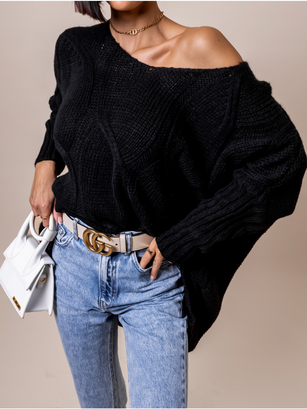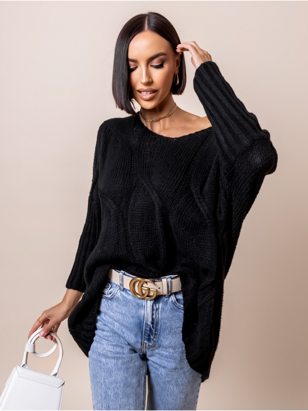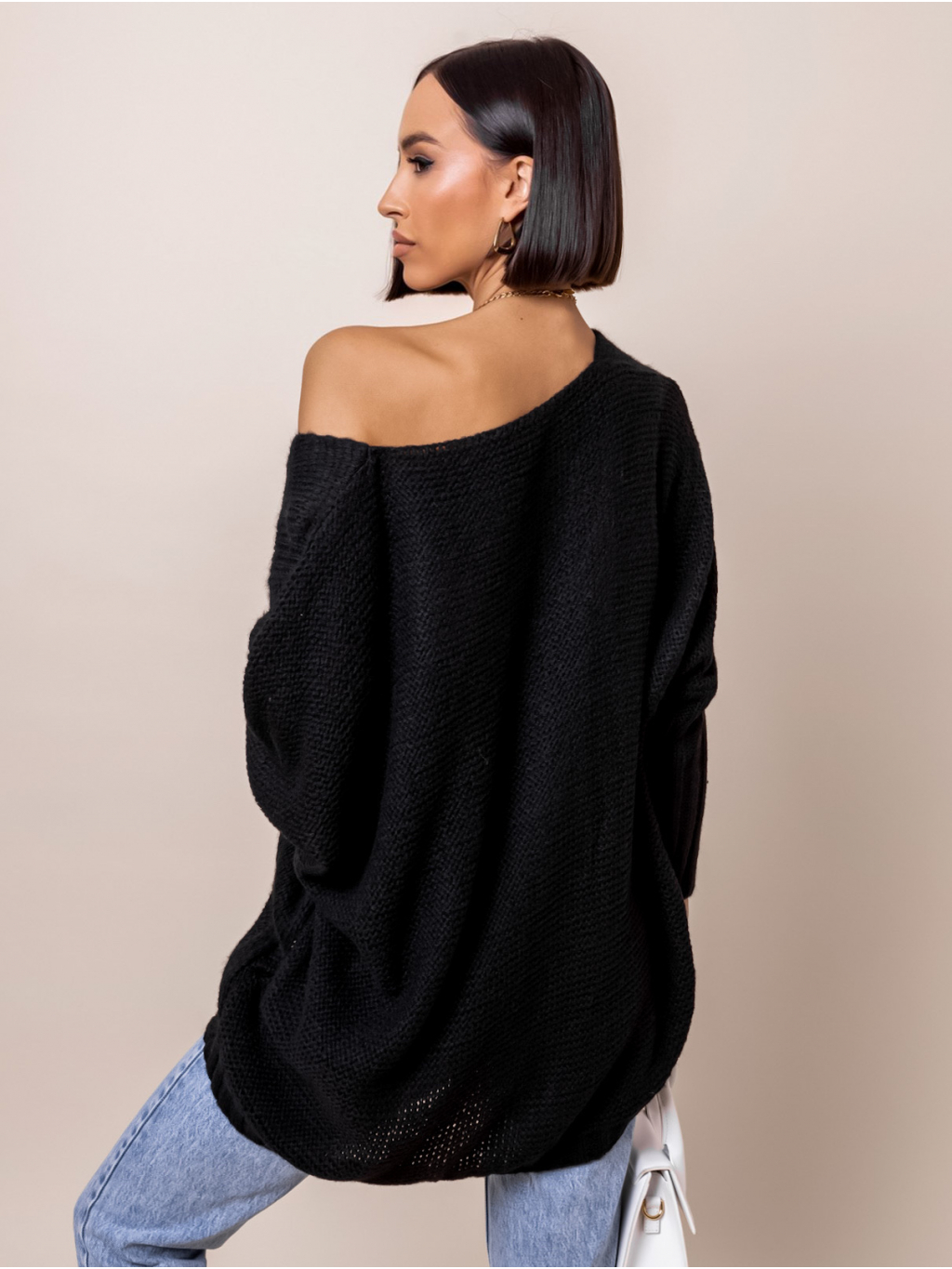 Černý pletený svetr KADIE s výstřihem do V