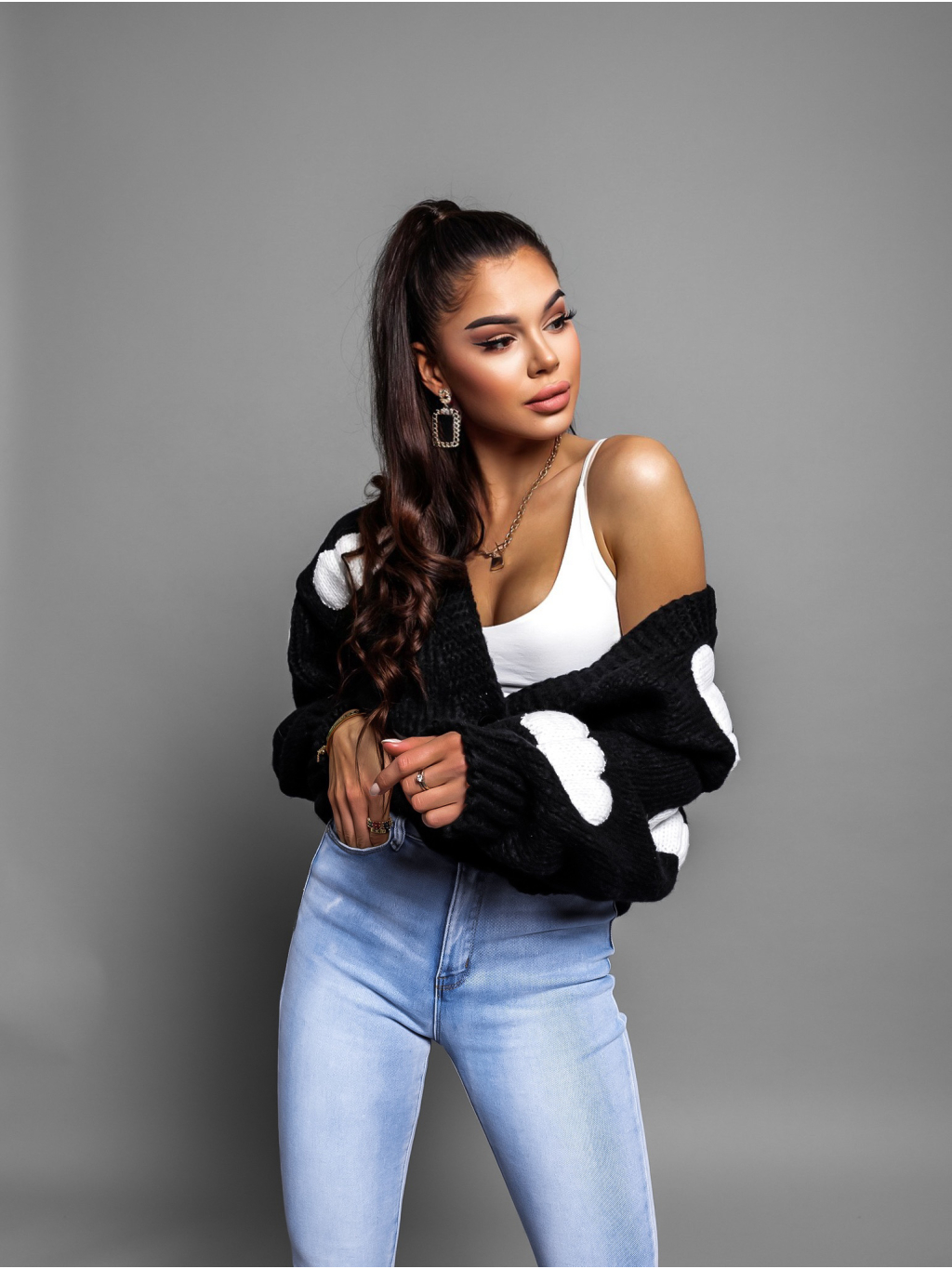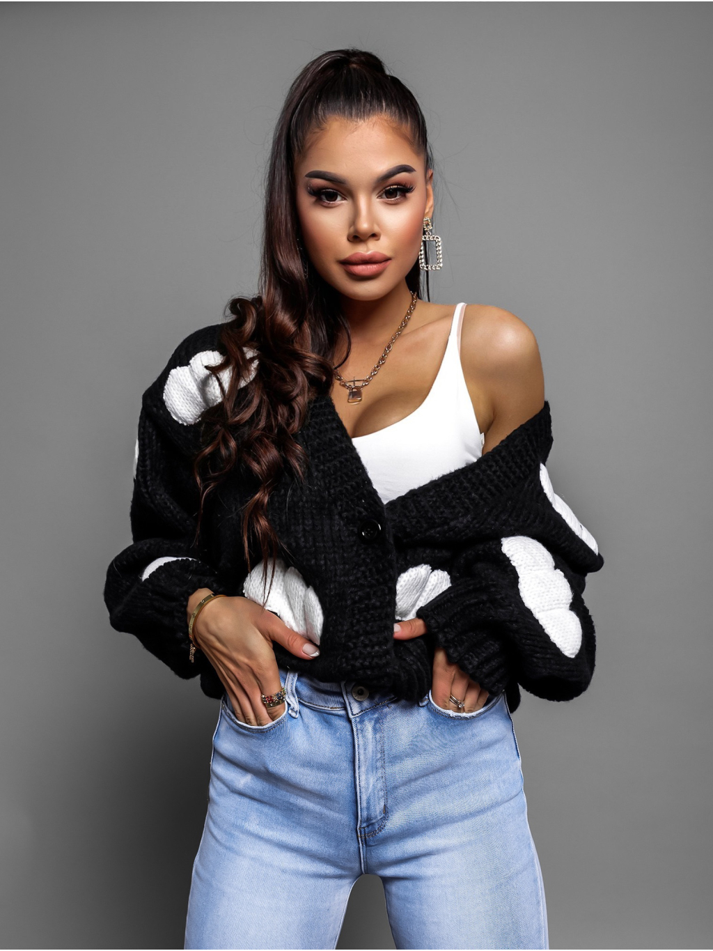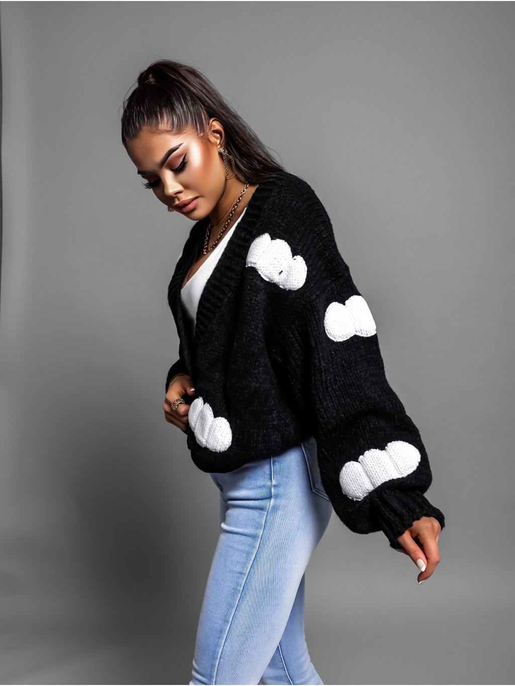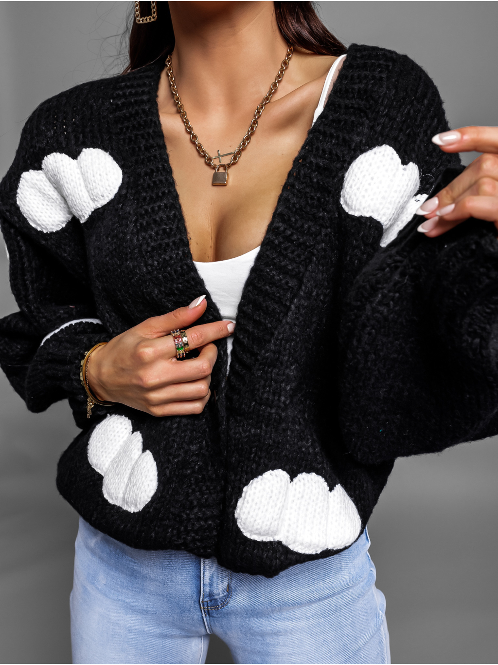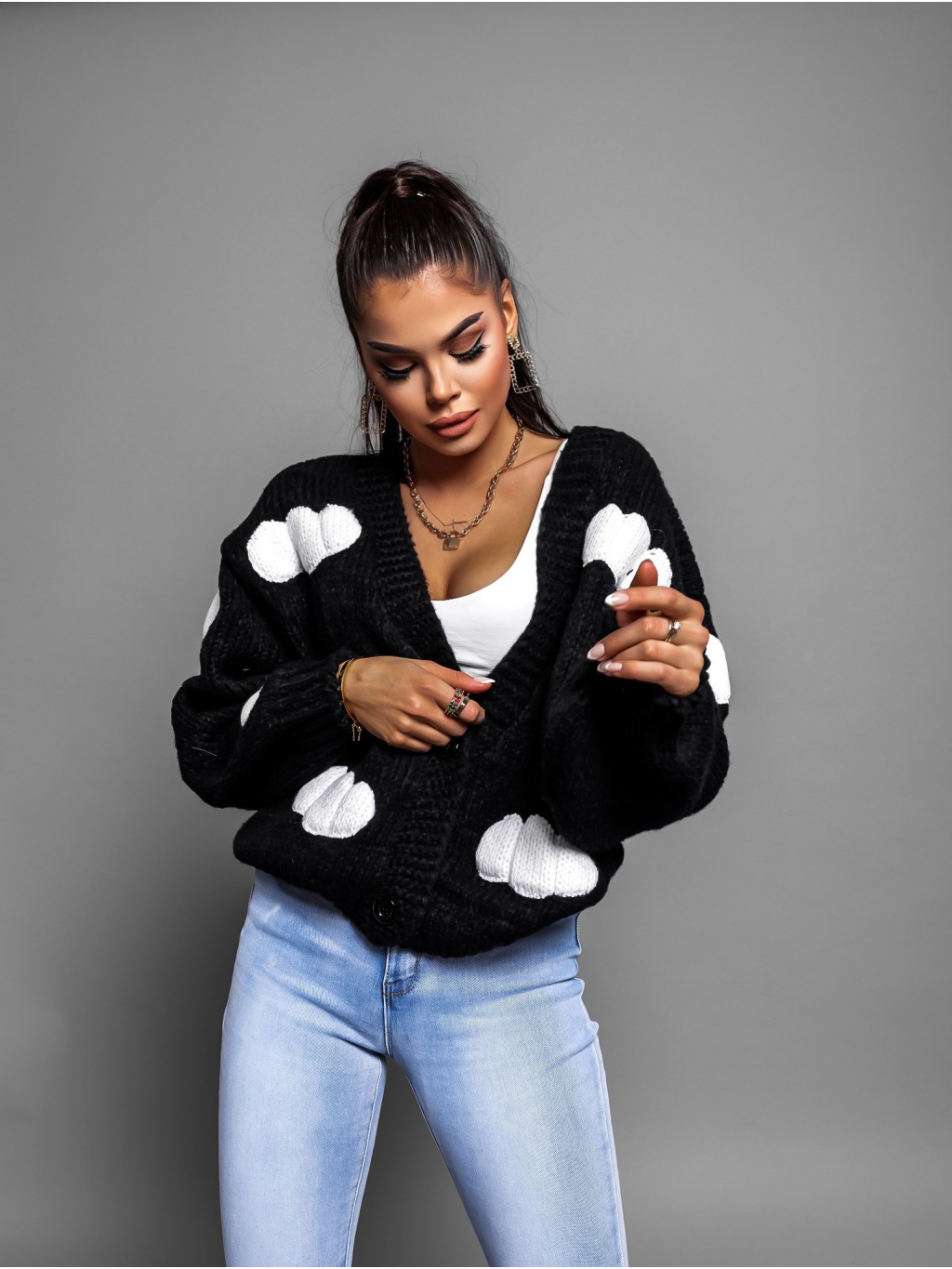 Černý svetr BANGING na knoflíky