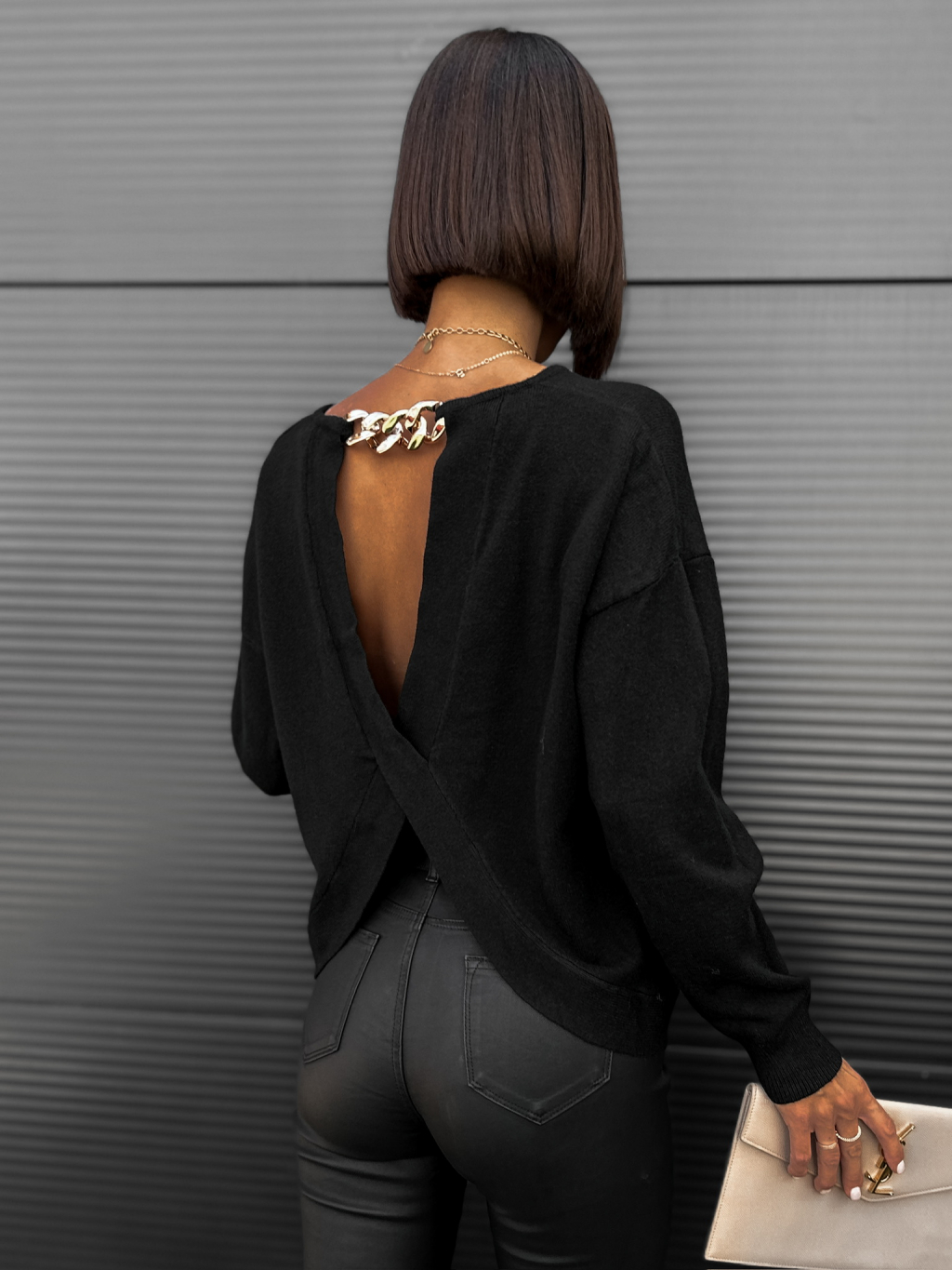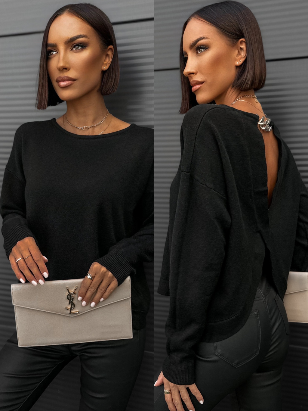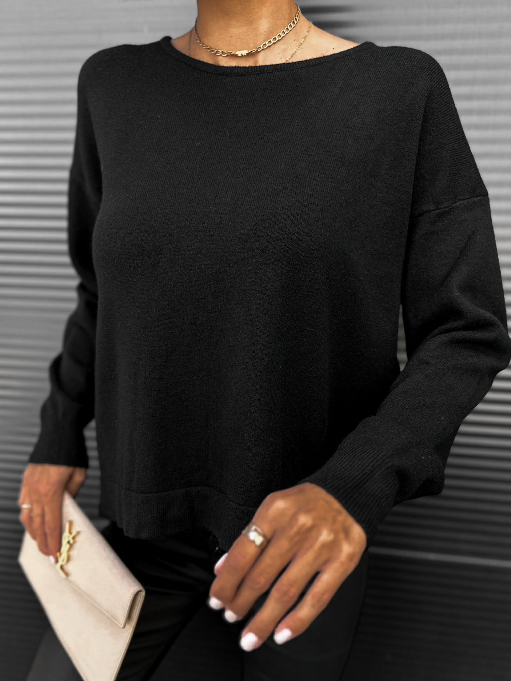 Černý svetr KONTERY s řetízkem