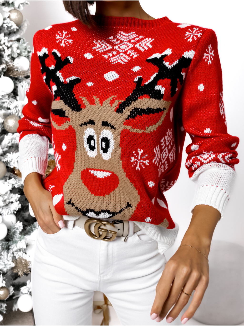Červený vánoční svetr LARRIE