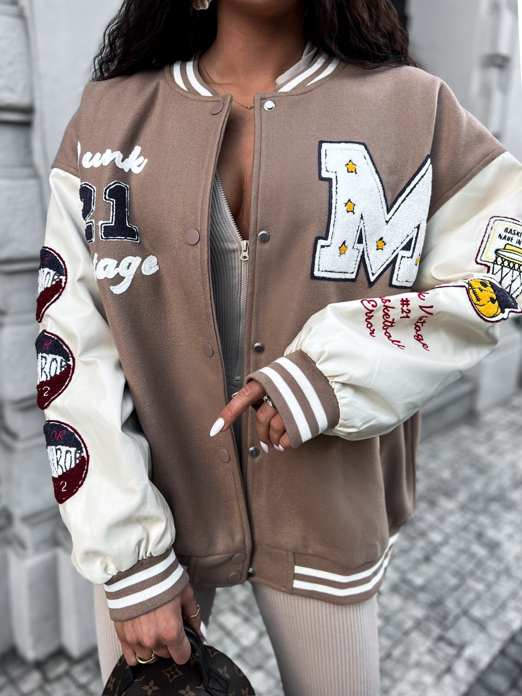Hnědá oversize mikina DANK s nášivkami
