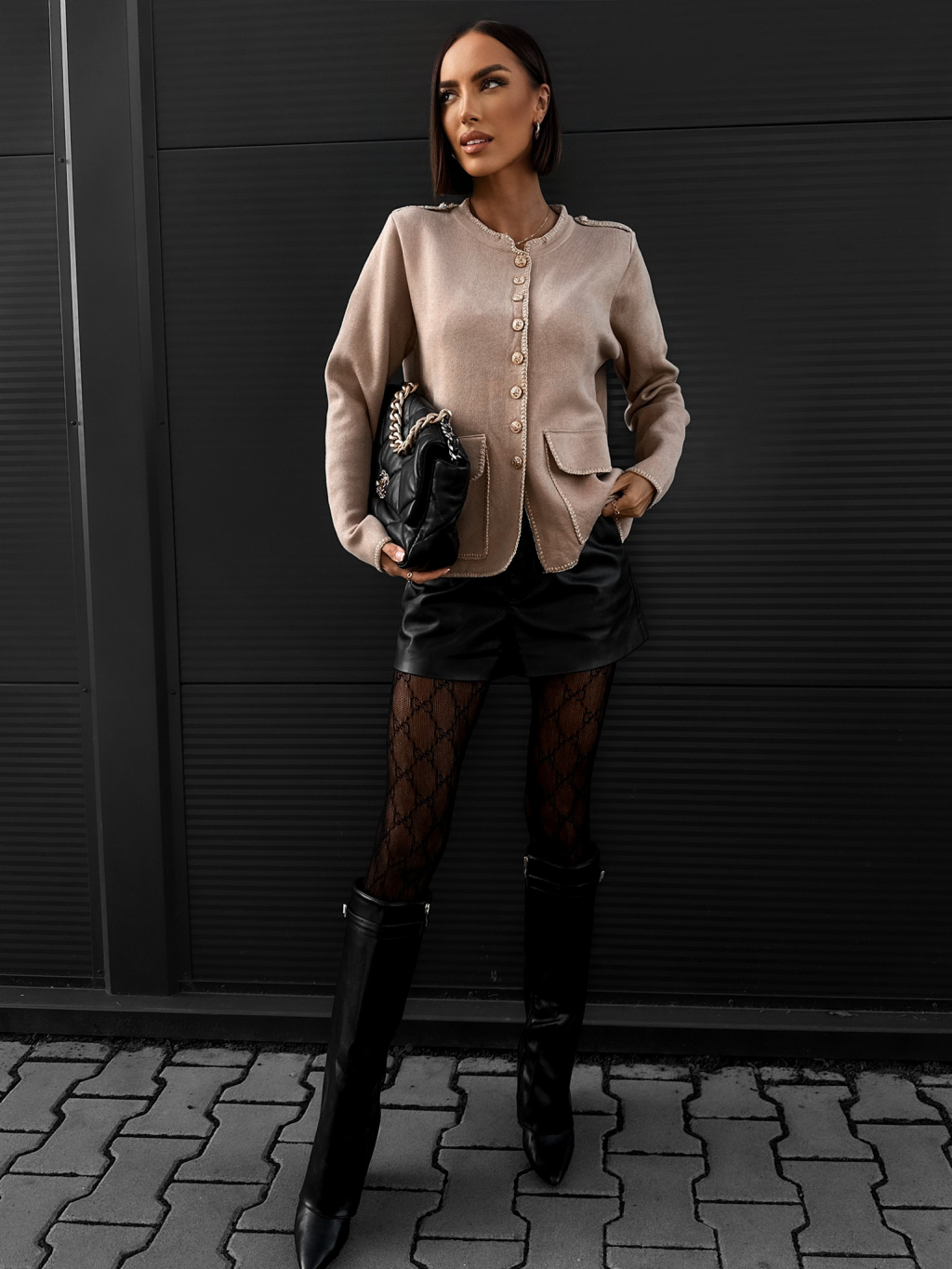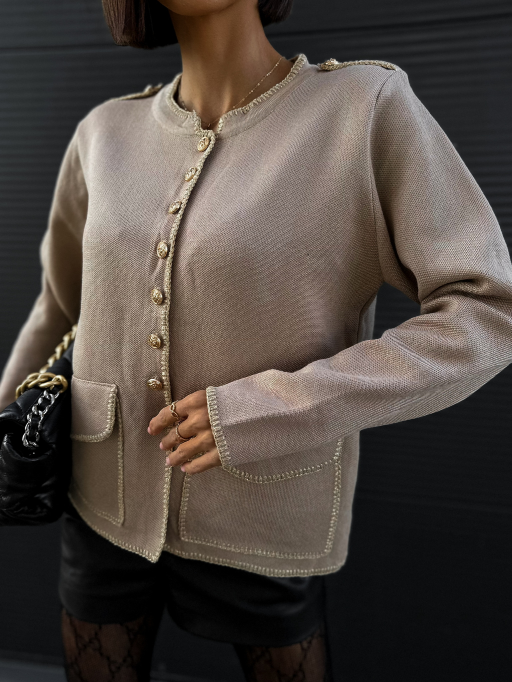 Hnědý elegantní blejzr RODOCHRO na knoflíky