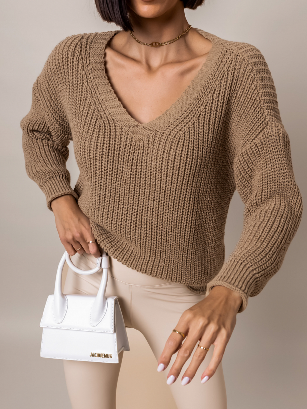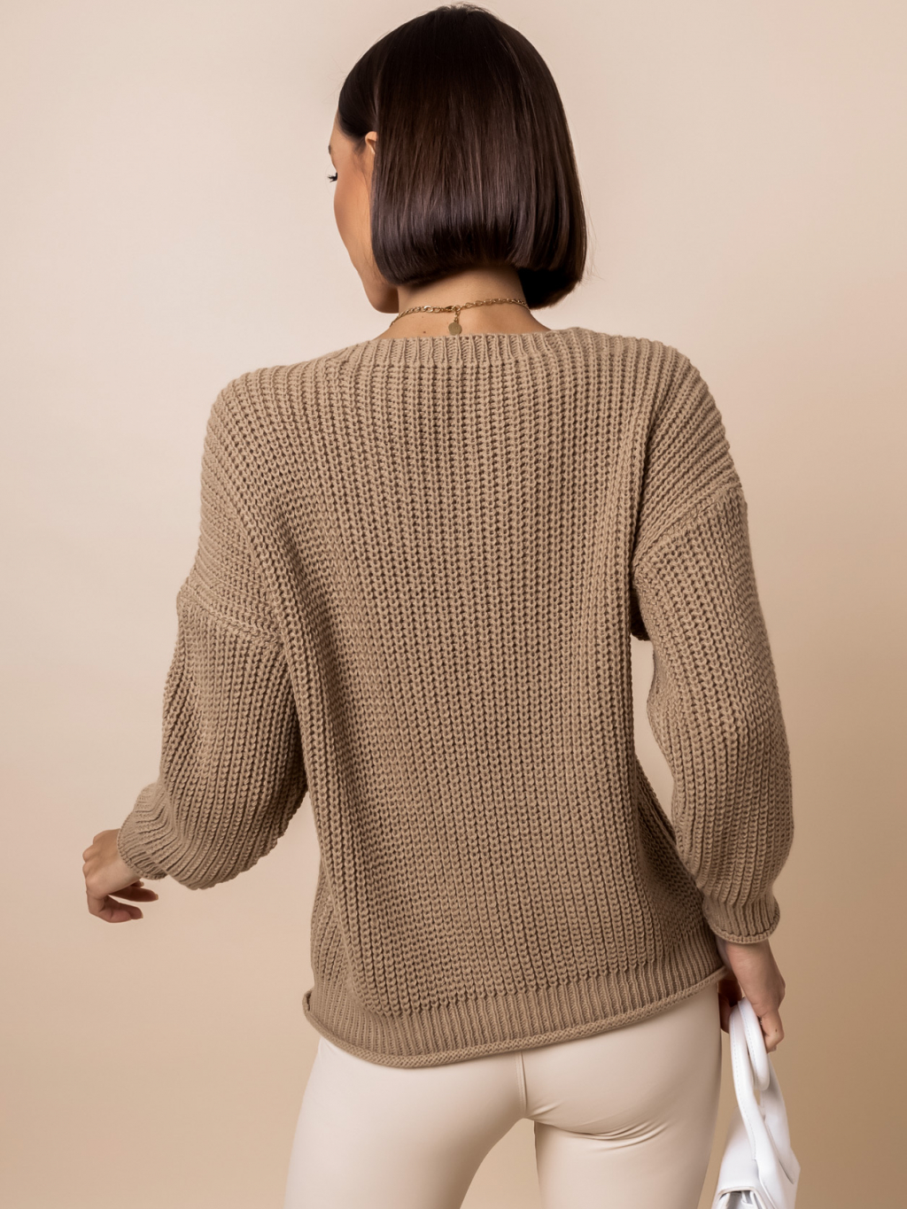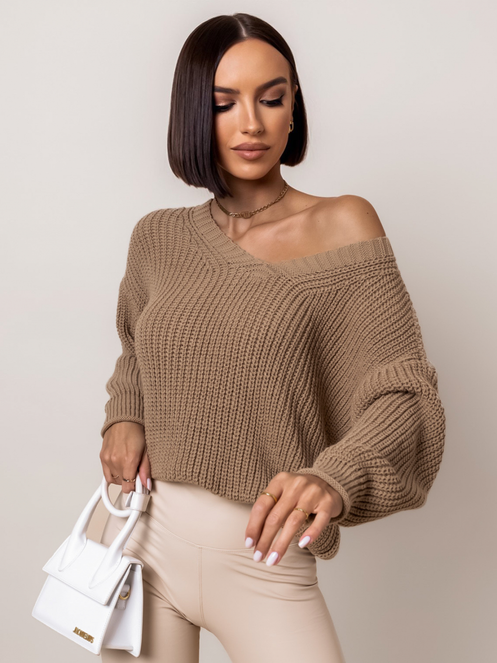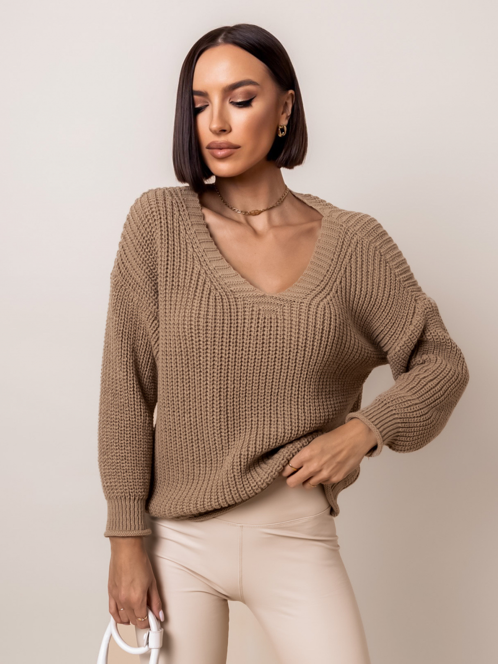 Hnědý svetr IRENE s výstřihem do V