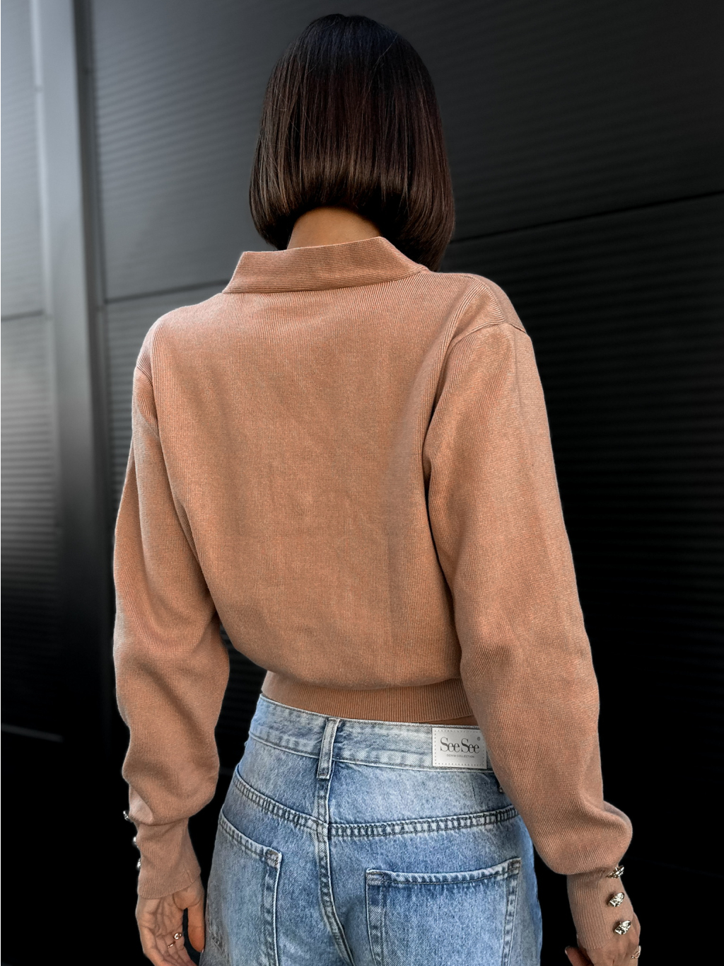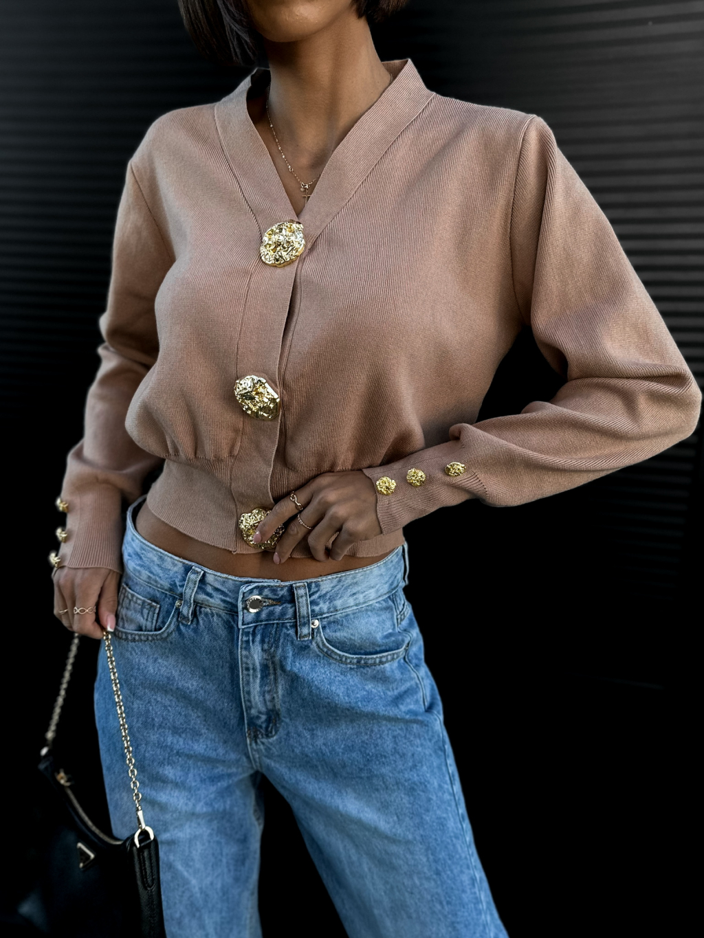 Hnědý svetřík HEMIMORF se zlatými knoflíky