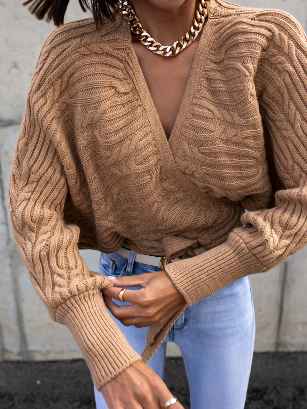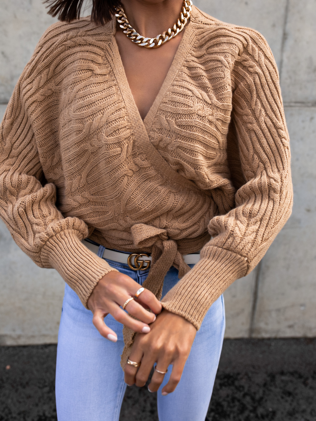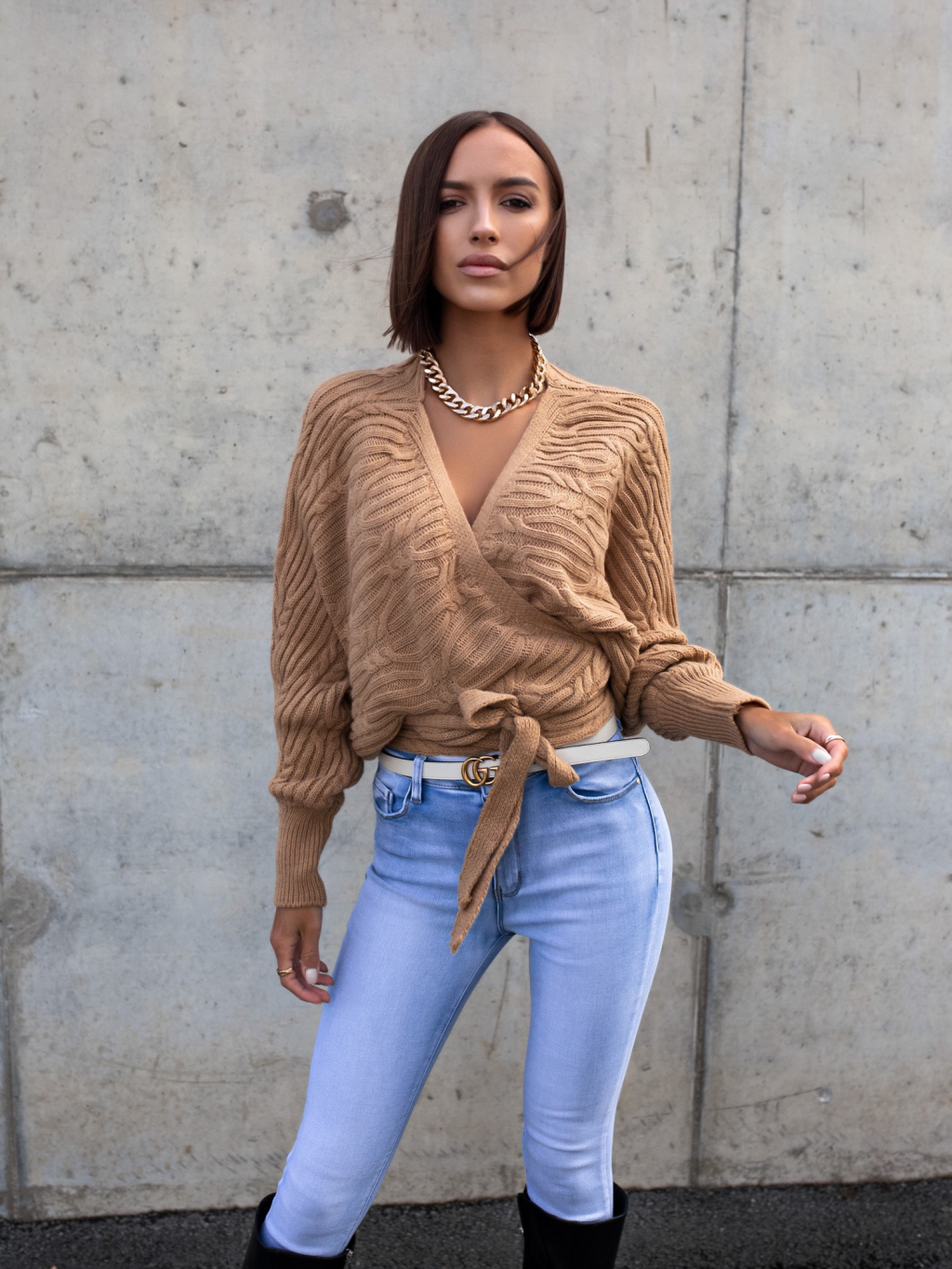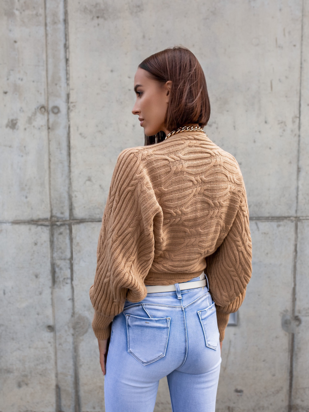 Hnědý zavinovací svetřík STRRAP s volnými rukávy