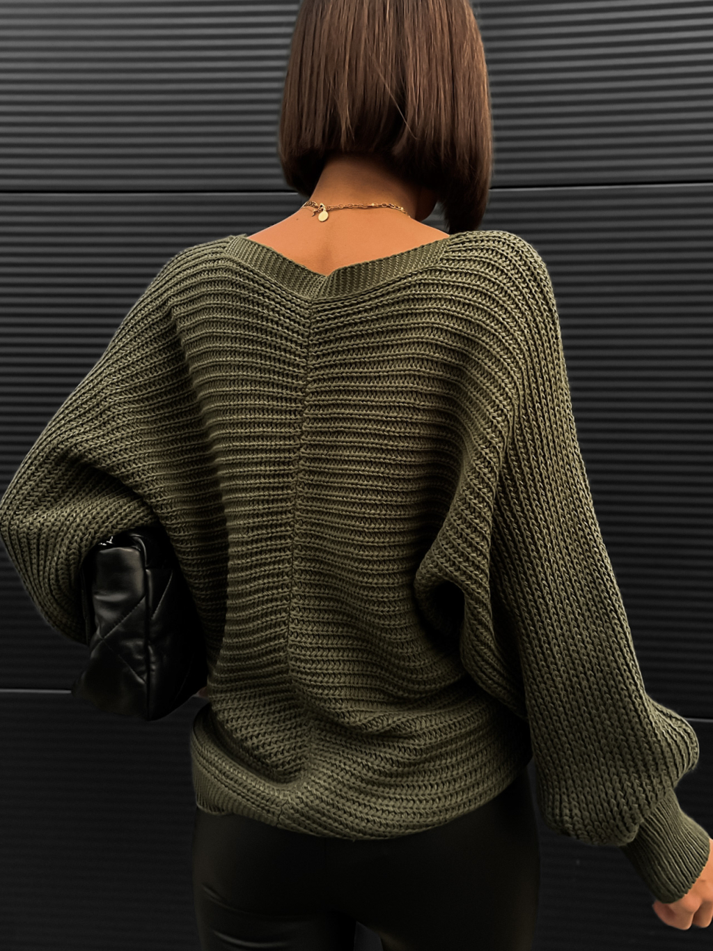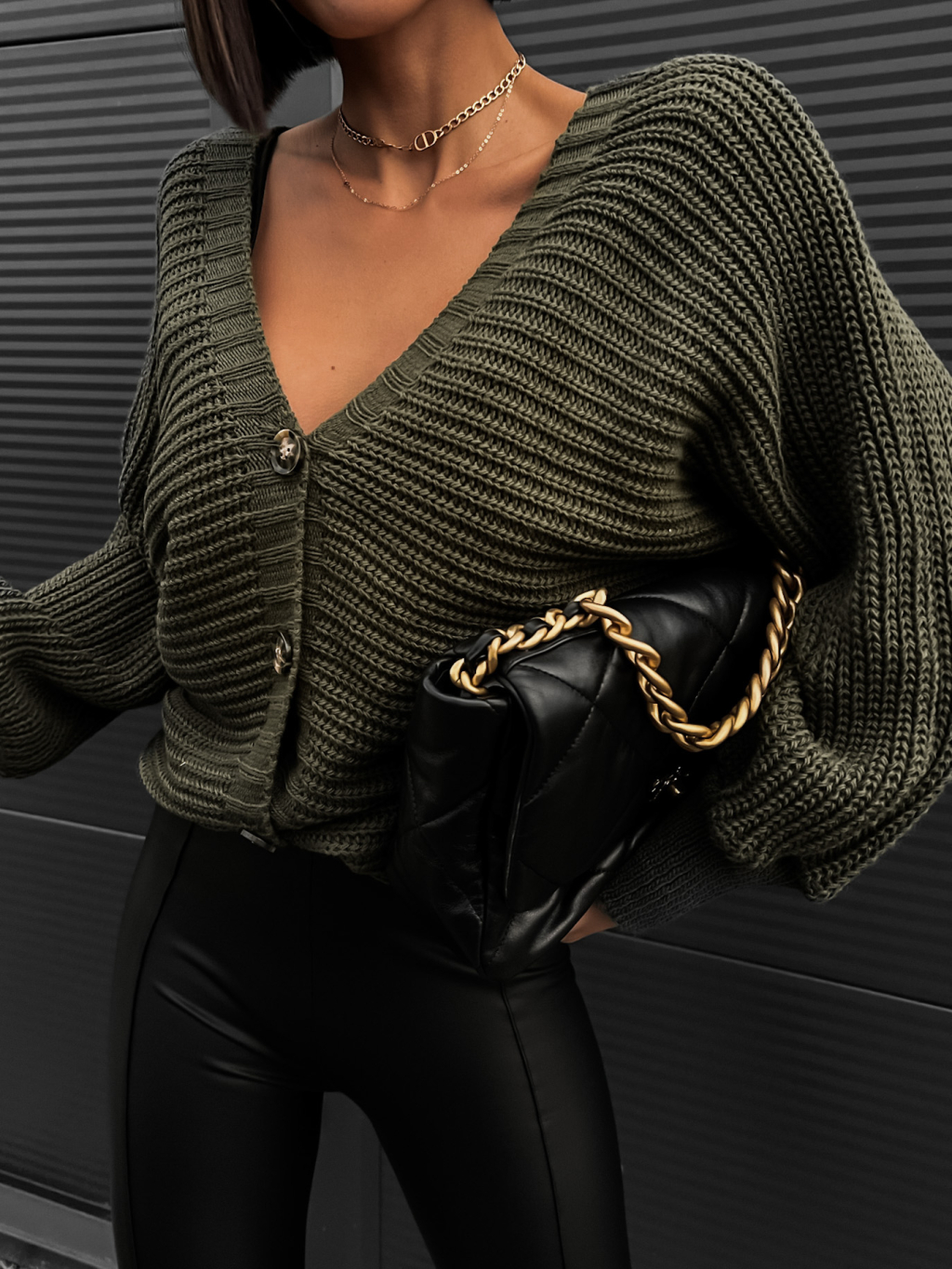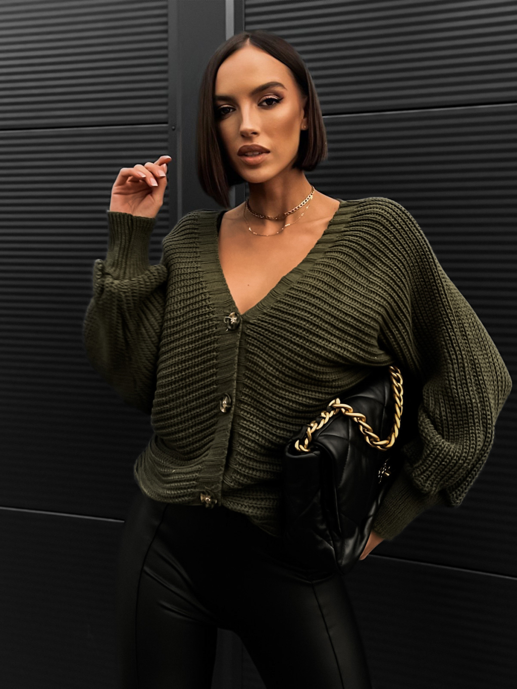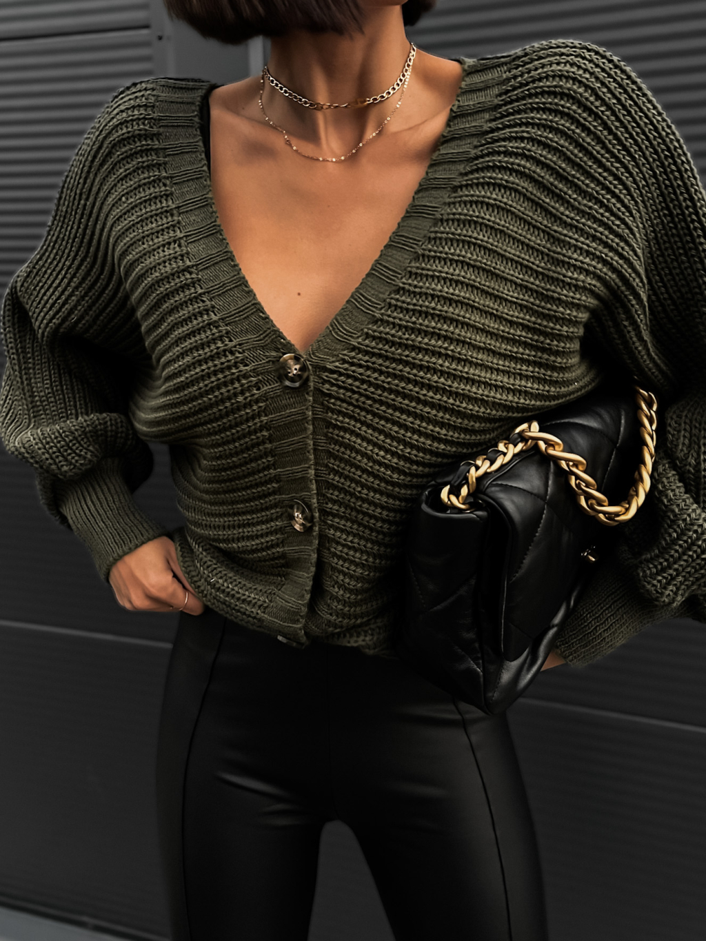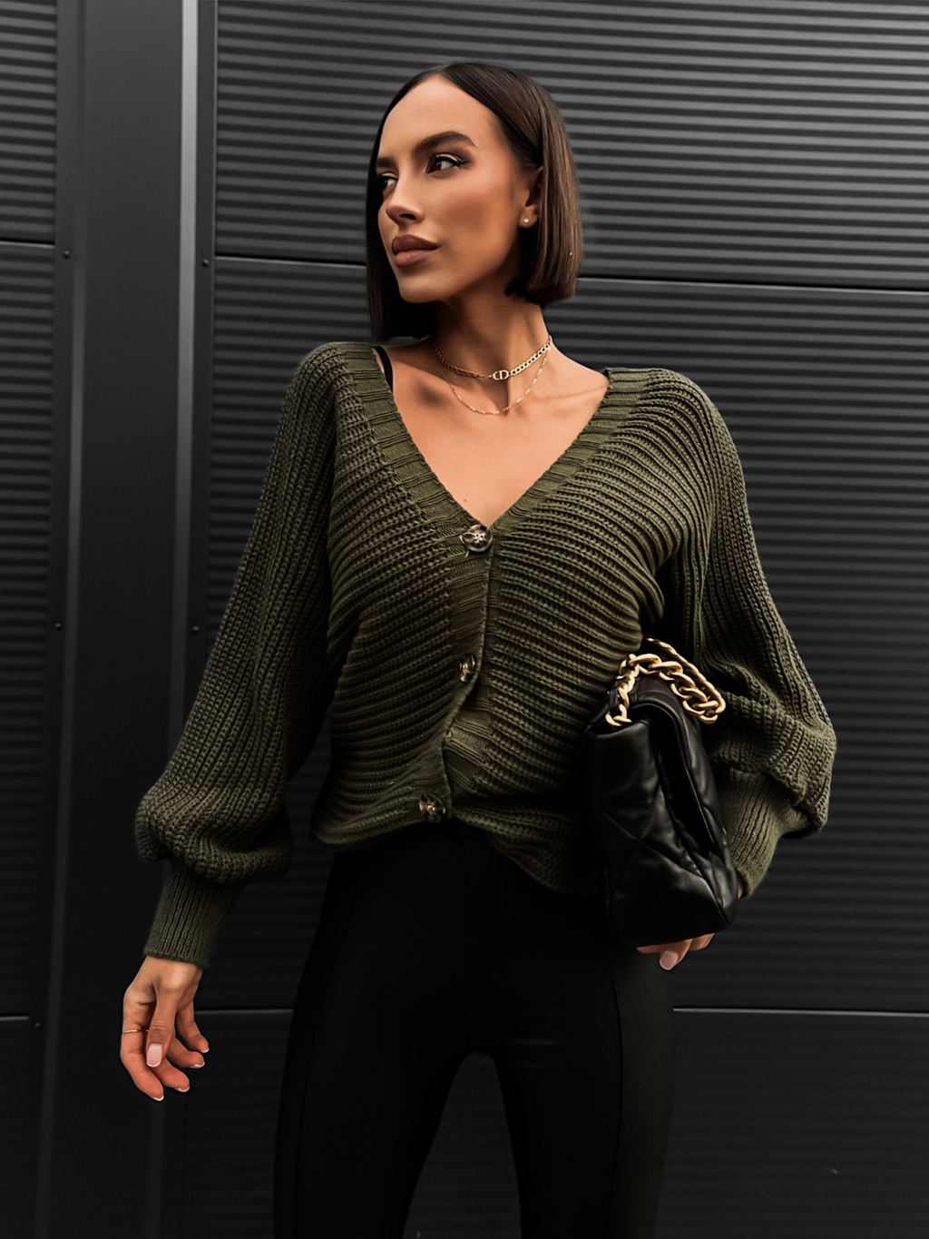 Khaki pletený svetr VEYSETS s knoflíky
