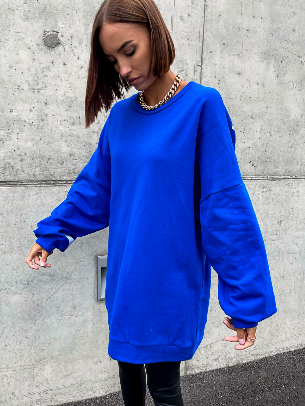 Královsky modrá oversize mikina BUFFA s nápisem