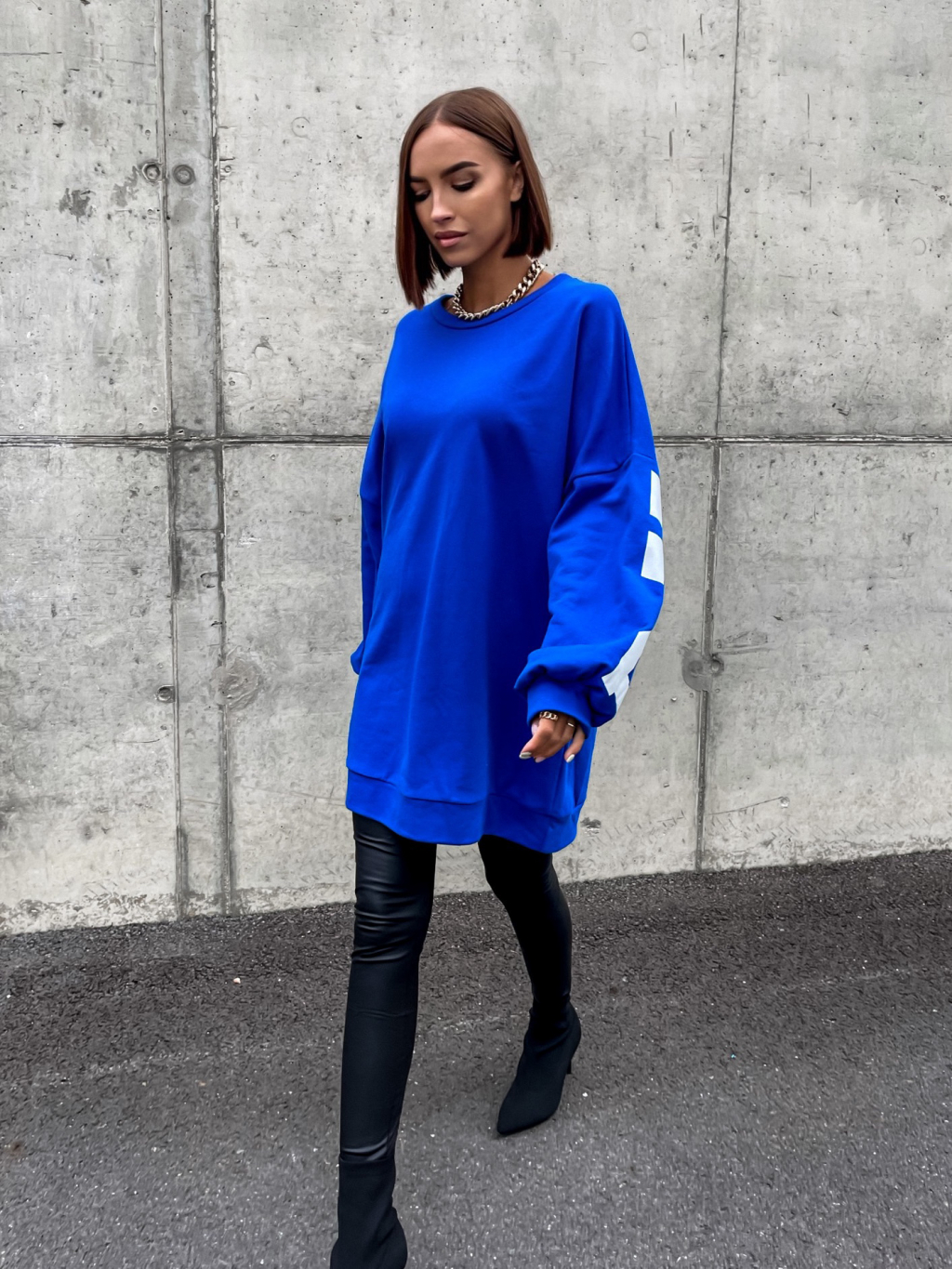 Materiál je strečový. Styl OVERSIZED.