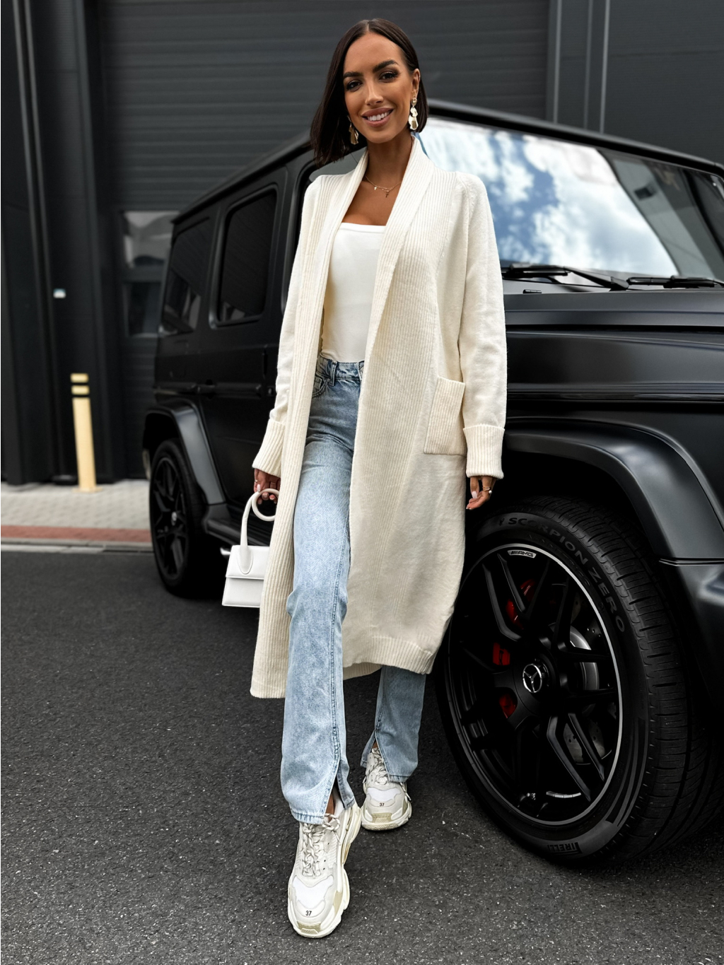 Krémový dlouhý cardigan ARLIN