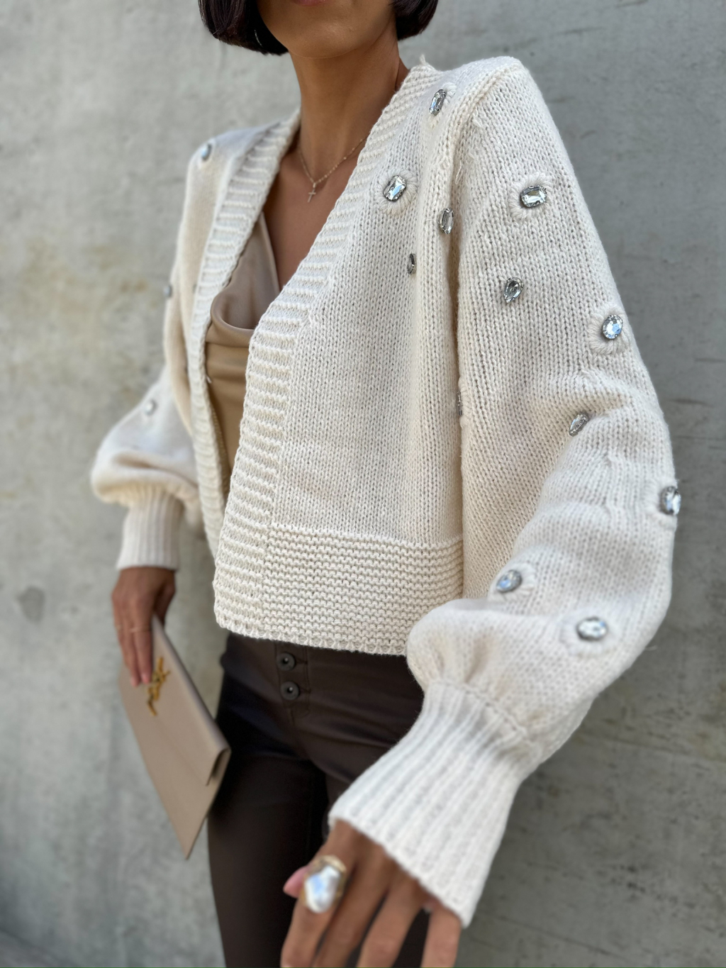 Krémový krátký cardigan TOSON se stříbrnými detaily