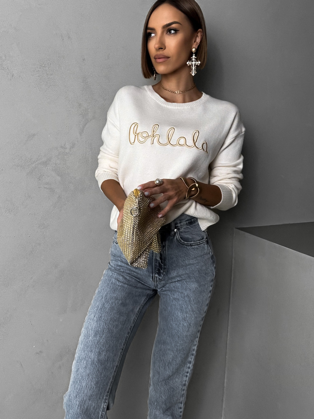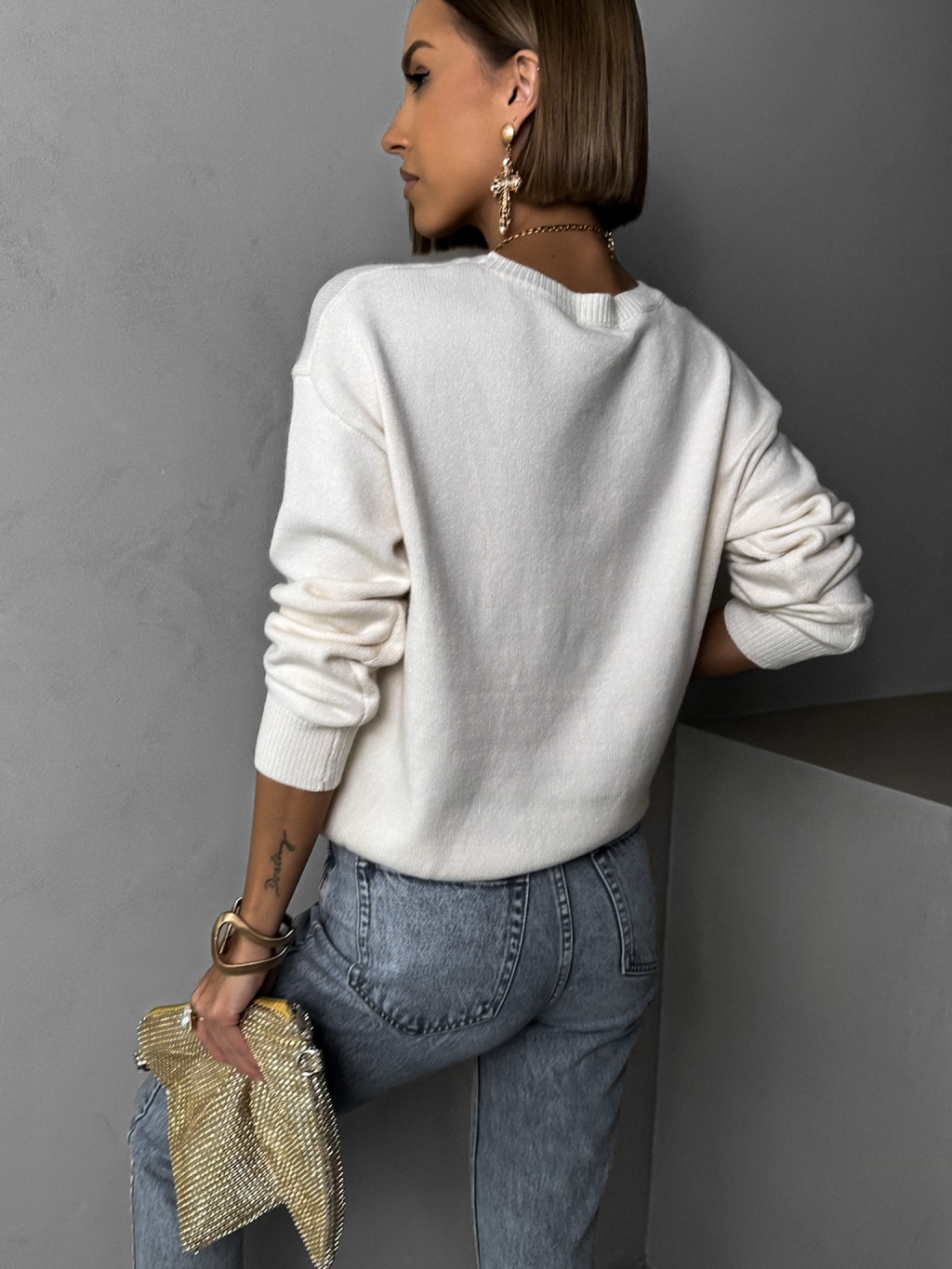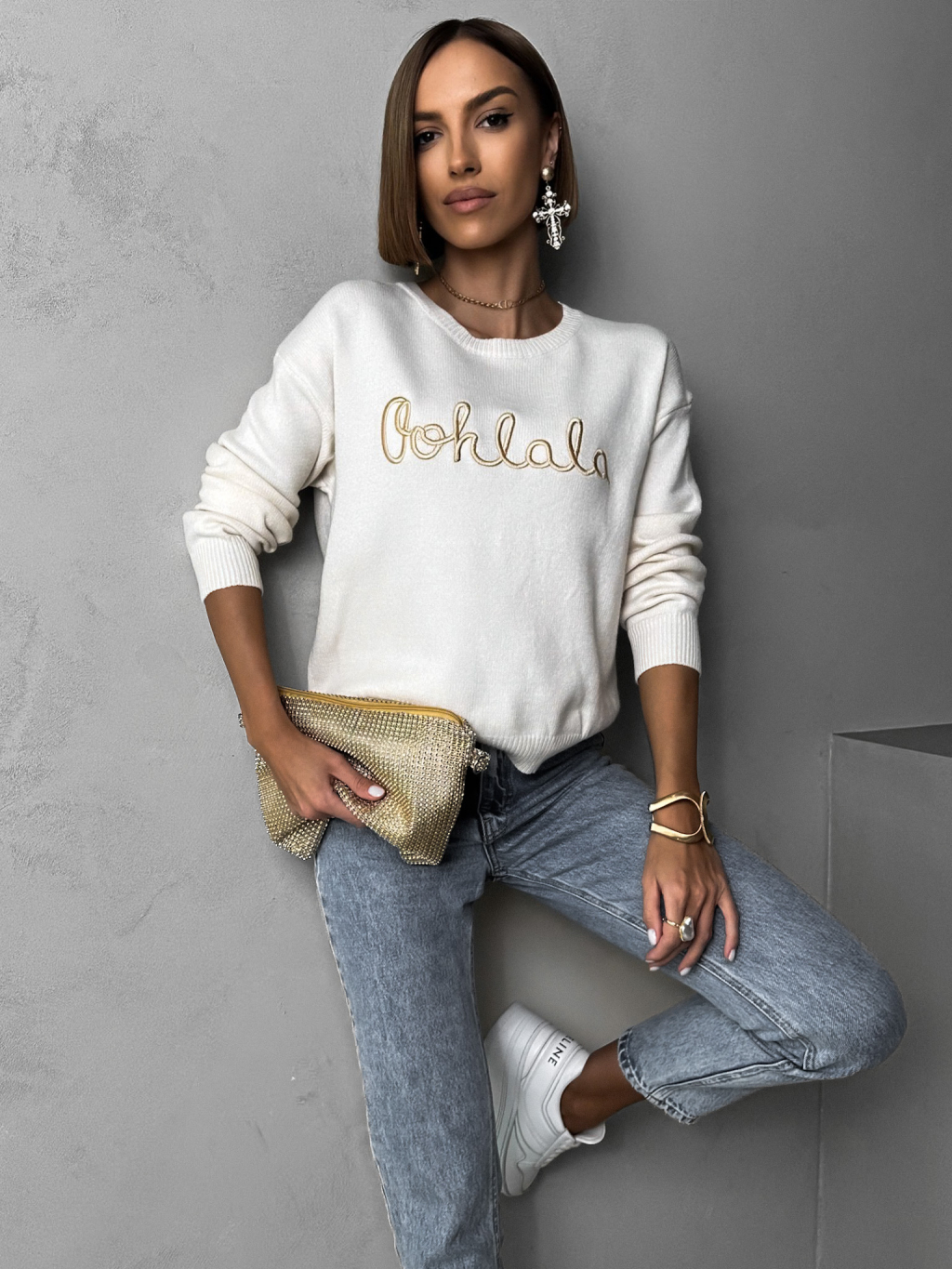 Krémový stylový svetřík JUNGKOOK s výšivkou