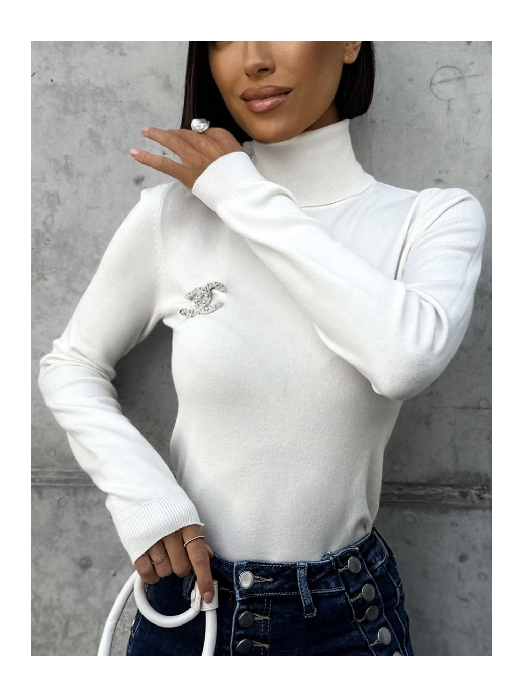Krémový svetřík CATENY s roláčkem