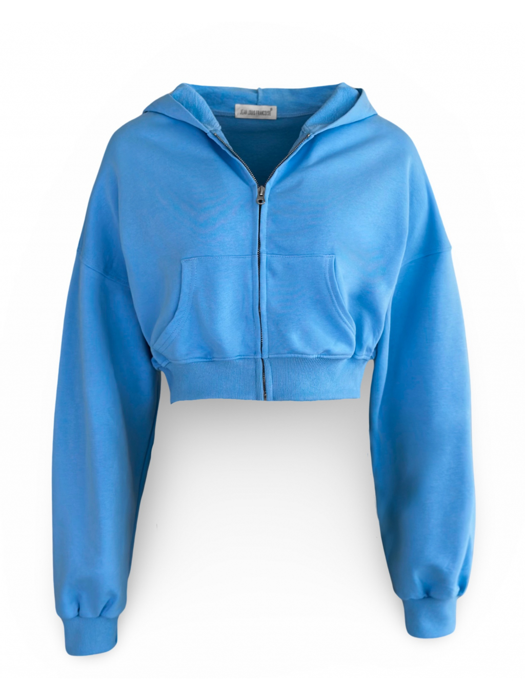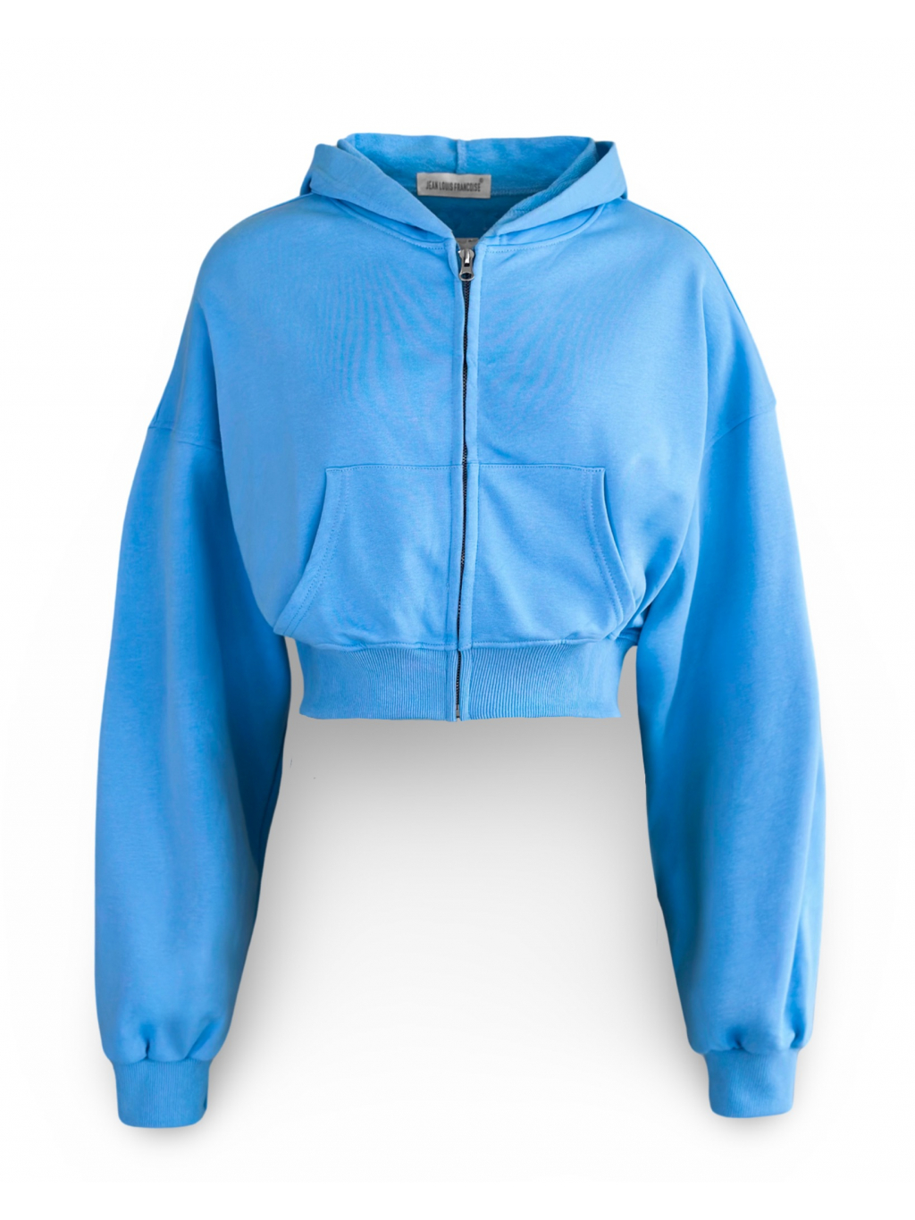 Modrá crop bavlněná krátká mikina JANEIRO na zip