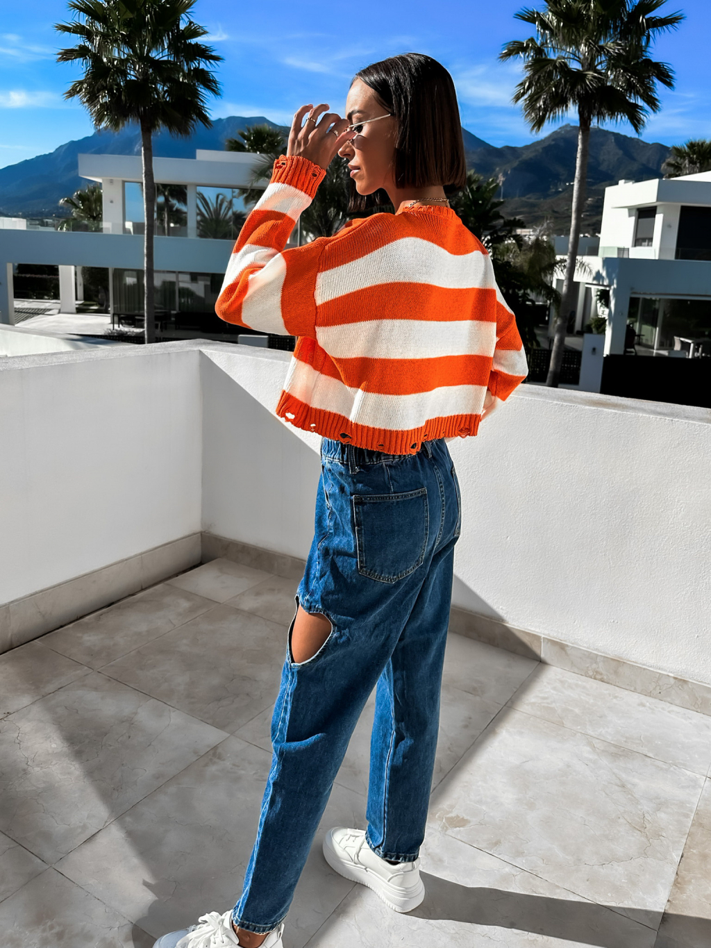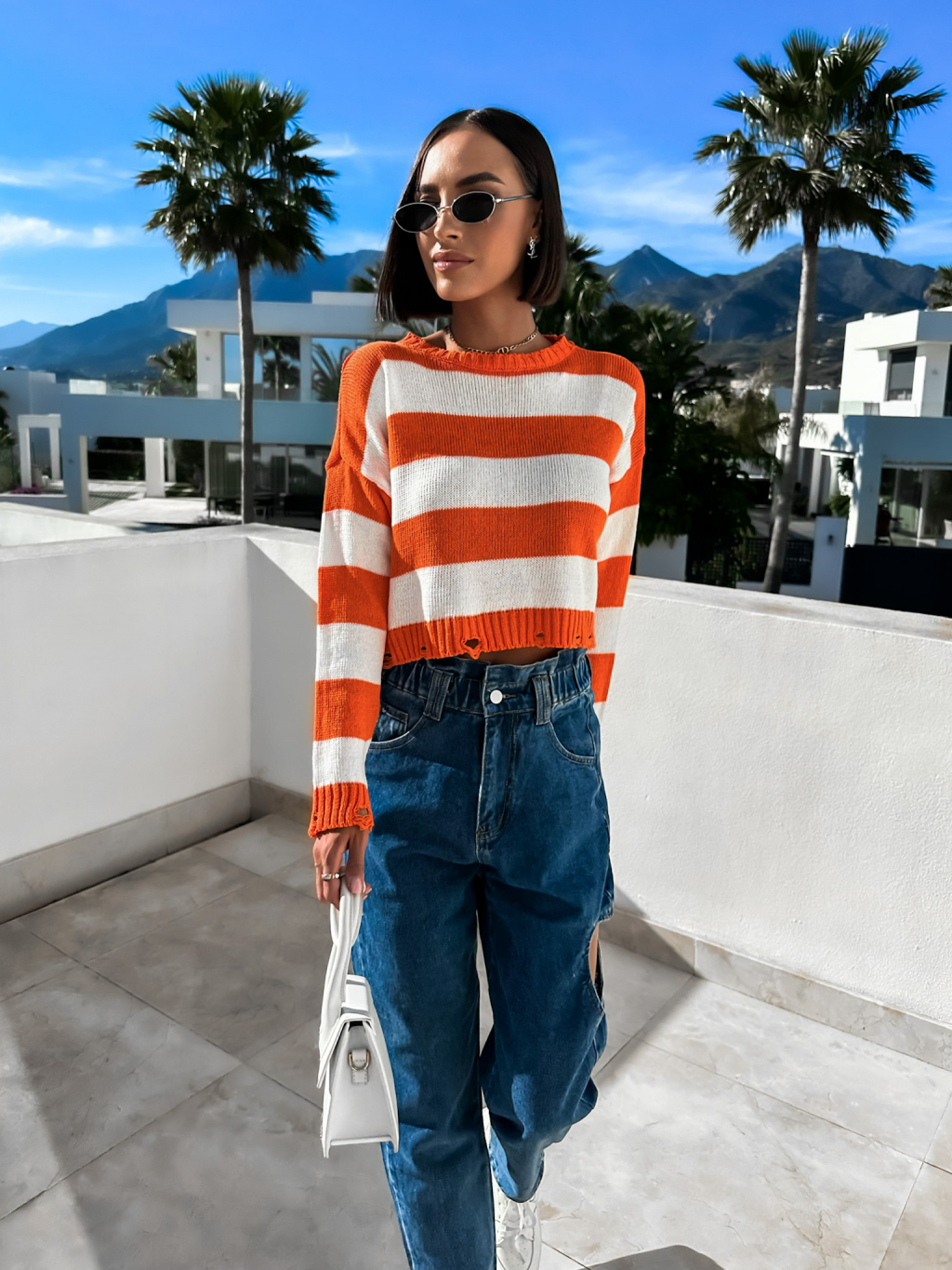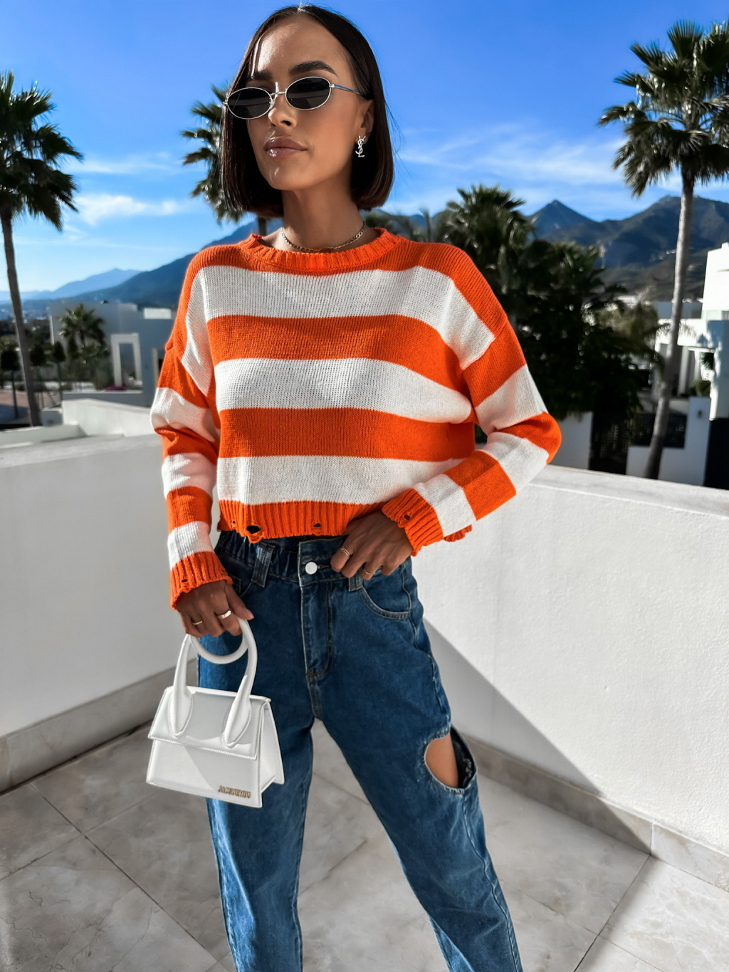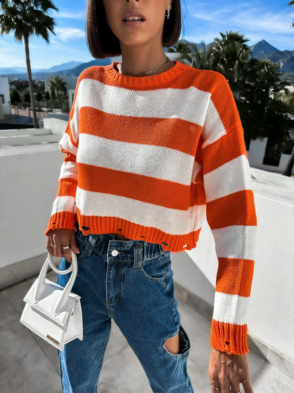 Oranžový svetřík GARIE s pruhy