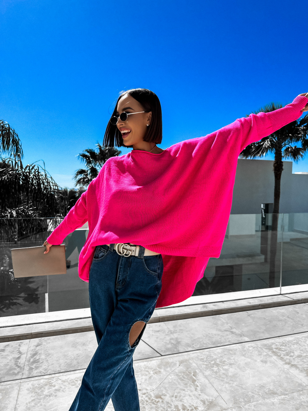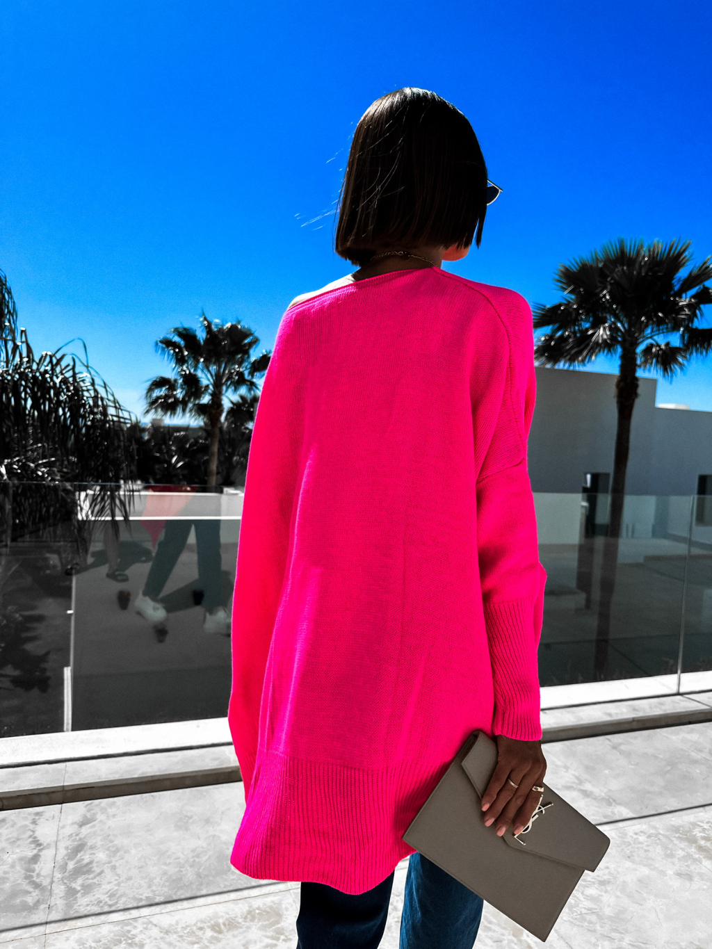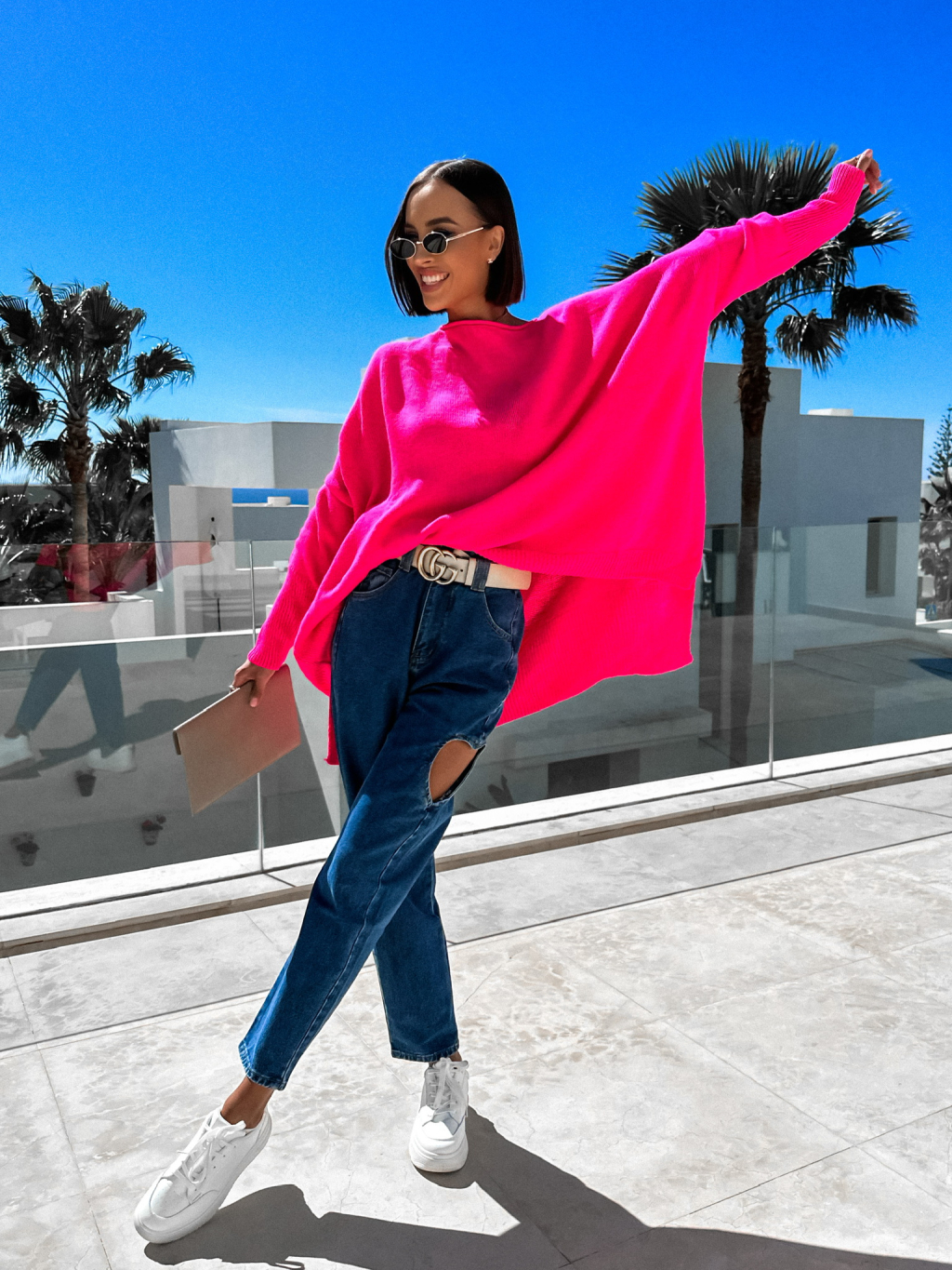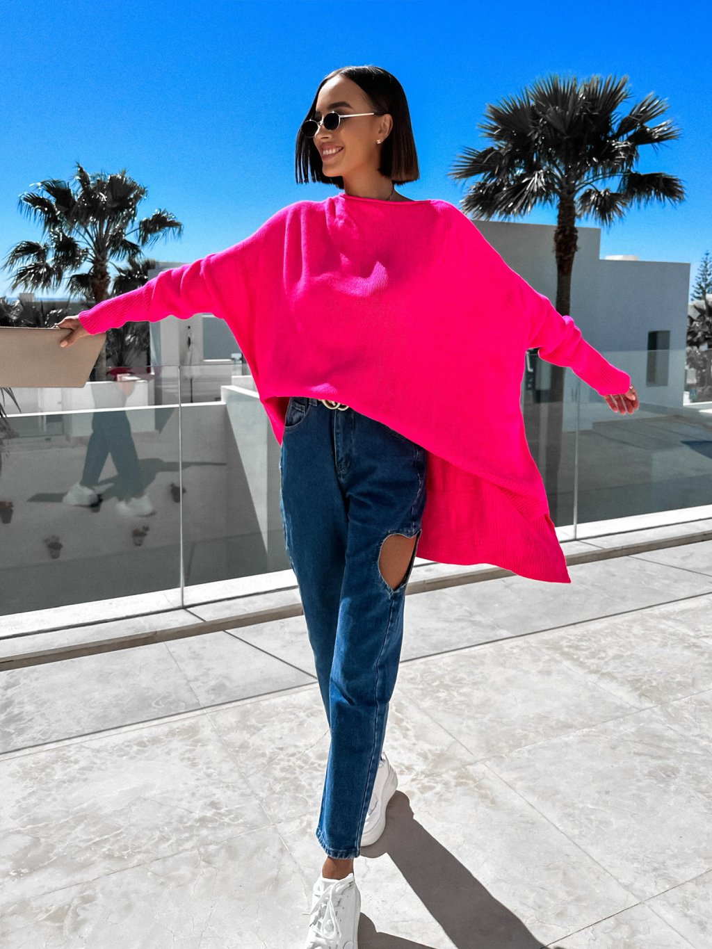 Růžový delší svetr SERENITY s dlouhým rukávem